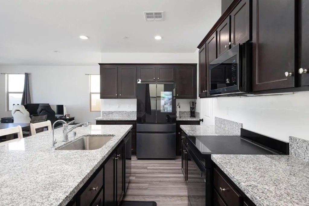 An Opal Skye Home Thats Ready to Welcome You Today! This detached condo lives like a single-family home with a spacious layout, upgraded wood-style flooring, and a loft turned home theater. Smart features include fingerprint locks, touchscreen switches, USB outlets, and a whole-house water softener. Enjoy a chef-ready kitchen with a large island, gas and 240V hookups, and a 3-stage reverse osmosis system. One of the largest backyards in the community, plus 19 owned solar panels and access to resort-style amenities including pool, spa, playground, and BBQ areas. Modern comfort and family-friendly space, ready for you today.