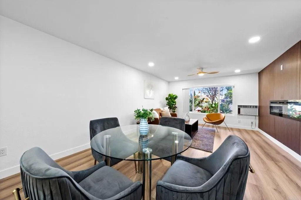 Stylishly Renovated 2-Bedroom Condo Near SDSU! Welcome to this beautifully renovated 2-bedroom, 1-bath condo in the heart of San Diego, just minutes from SDSU! This ground-floor unit has been thoughtfully updated with modern finishes throughout, including new vinyl plank flooring, fresh paint, sleek baseboards, and designer fixtures. The inviting living room features a stunning accent wall with a modern electric fireplace and new recessed lightingperfect for cozy nights in. Enjoy a fully upgraded kitchen equipped with stainless steel appliances. The unit also features a wall AC unit in the living area for year-round comfort. With two assigned parking spots, a community laundry room, and a central location close to schools, shops, dining, and public transit, this move-in-ready gem offers the perfect blend of style and convenience.