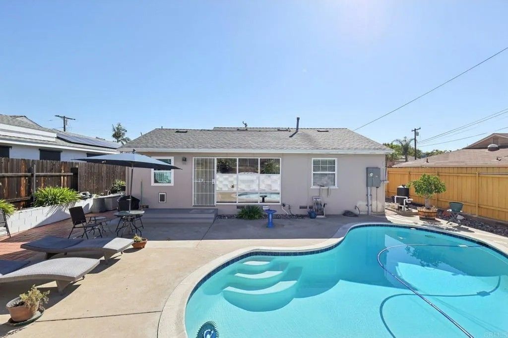 Stunning 2-Bedroom Oasis in La Mesa 6642 Eldridge St, San Diego, CA 92120 Discover your dream home in the heart of beautiful La Mesa! This meticulously upgraded 2-bedroom, 1-bathroom single-family residence offers modern comfort, energy efficiency, and resort-style living with a sparkling private pool and full professional landscaping that creates a serene, low-maintenance outdoor paradise. Key Features & Recent Upgrades: New Roof (2019) Peace of mind with a durable, high-quality installation. Paid-Off Solar System (15 Panels) Enjoy minimal electric bills and eco-friendly living; fully owned with no leases or payments. Pool Perfection: Freshly replastered with new tiles (2021), plus a brand-new filtration system installed in 2025 for crystal-clear water year-round. Fresh Exterior Paint (2023) Curb appeal that shines with a modern, updated look. Energy-Efficient Double-Pane, Fire-Resistant Windows (2024) Enhanced insulation, noise reduction, and safety. New Electrical Panel (2024) Up-to-code and ready for all your modern needs. Entire Home Replumbed (2025) Complete copper repiping for reliability and efficiency. Nestled in a quiet, desirable San Diego neighborhood (92120 ZIP), this home combines timeless charm with cutting-edge upgradesperfect for first-time buyers, downsizers, or anyone seeking turnkey luxury. The open layout flows seamlessly to the poolside patio, ideal for entertaining or relaxing in the California sun. Full landscaping includes lush greenery, automated irrigation, and easy-care design. Priced to sell and move-in readyno projects needed! Schedule your private tour today and make this La Mesa gem yours.