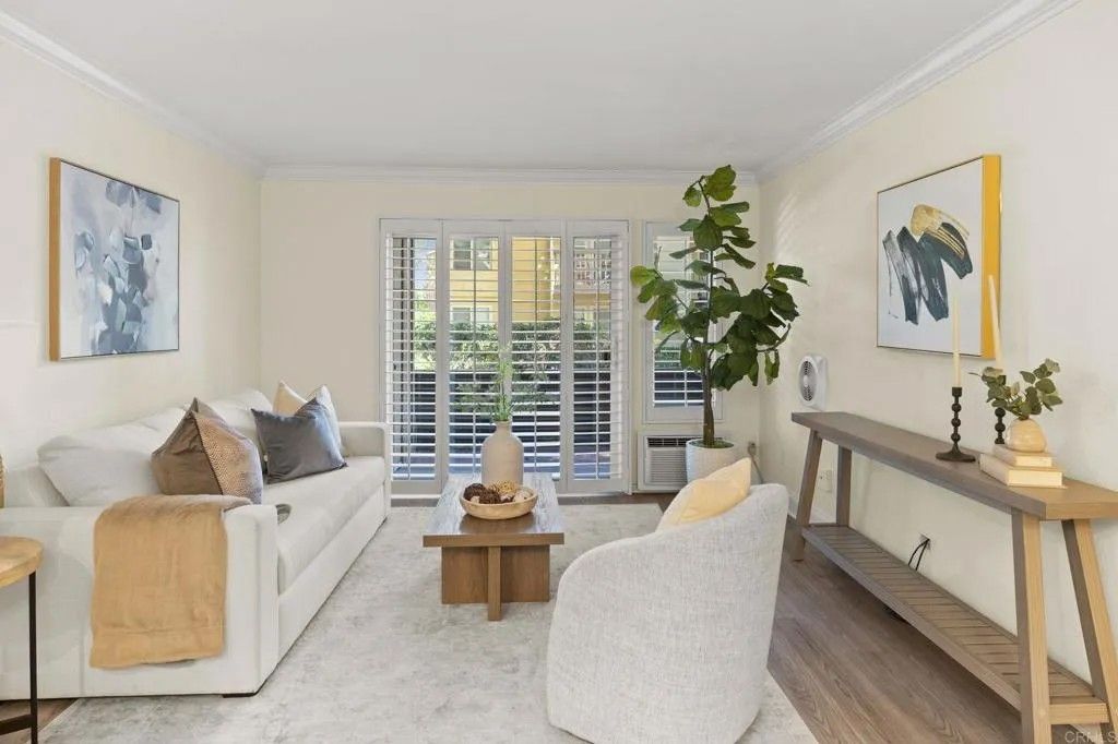 Discover the perfect home for first-time buyers or those looking to right-size at 6006 Rancho Mission Rd, San Diego, CA 92108. This charming 604-square-foot, 1-bedroom, 1-bathroom first-floor condo is nestled in the heart of Mission Valley, offering unmatched convenience and a vibrant lifestyle. Minutes from the Trolley, Snapdragon Stadium, 24-Hour Fitness, Fashion and Mission Valley malls, and the historic San Diego Mission, it's surrounded by diverse restaurants, entertainment, and shopping. Enjoy proximity to SDSU, Mission Trails hiking, Lake Murray, and beautiful beaches just 15 minutes away, with seamless freeway access. Inside, modern elegance shines with luxury wood-like flooring flowing through the living room, kitchen, and bedroom, plus sleek tile in the bathroom. Plantation-style shutters add style and insulation for year-round comfort. The updated kitchen boasts shaker cabinetry with glass accents, quartz countertops, a chic backsplash, and stainless-steel appliances including a stove, refrigerator, and dishwasher. The bright primary bedroom features a large wardrobe closet with mirrored doors, and a welcoming vibe. The hallway bathroom includes a dual vanity, large marble tile, and an oversized step-in shower with a seat, safety bars, and adjustable shower fixtures. Step out to your private covered patio with storage, ideal for morning coffee or evening nightcaps. This VA-approved complex offers resort-style perks: two pools, two spas, fitness center, tennis courts, BBQ areas, clubhouse, and laundry room. Includes one reserved parking spot and guest parking. Blending modern comforts, thoughtful upgrades, and an amenity-rich community, this condo is an exceptional opportunity in a highly sought-after San Diego location. Ideal for convenience, style, and vibrant living!