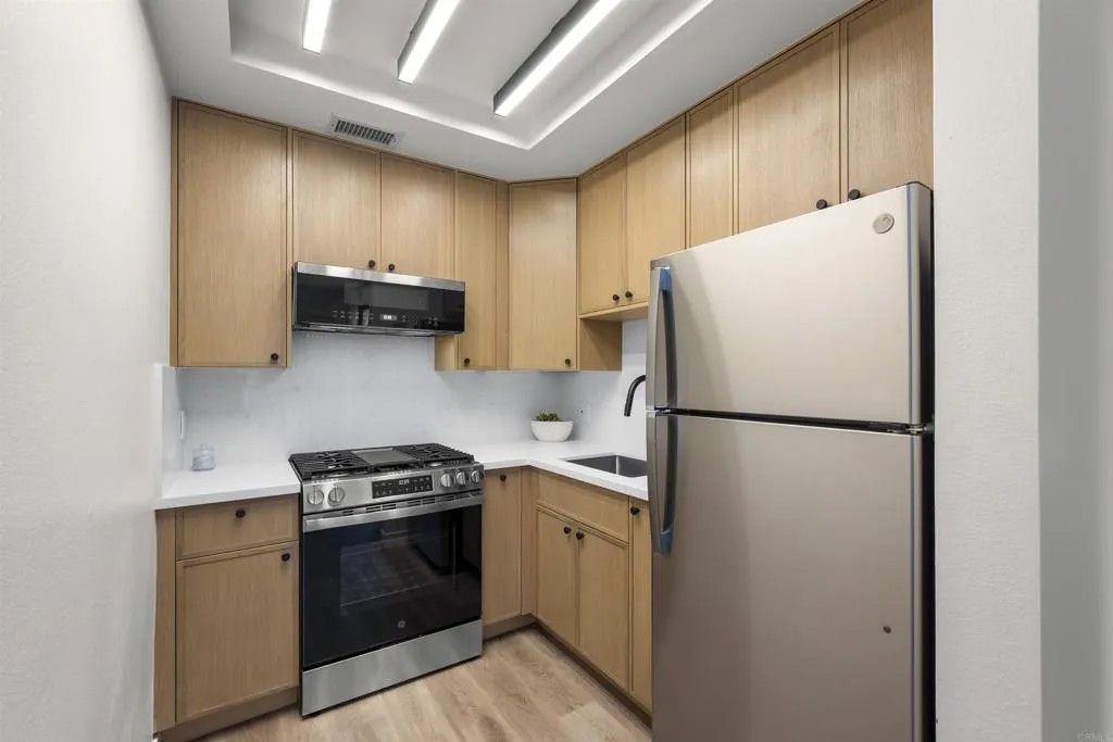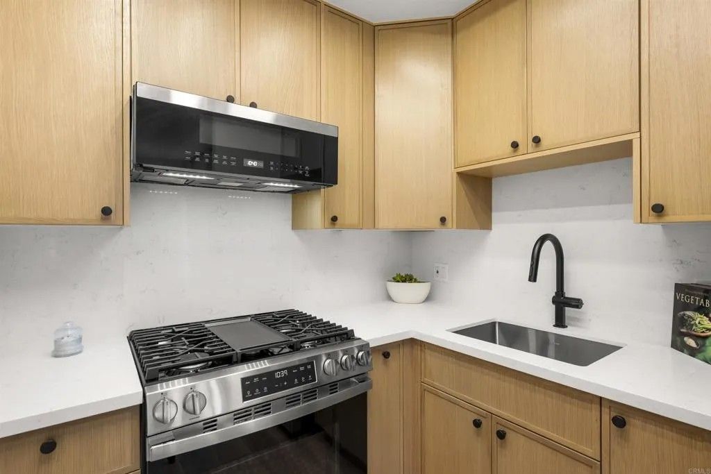 Experience the Best of City Living two blocks from the ocean in the Marina District! Welcome to this fully remodeled single story one-bedroom, one-bath residence in the heart of Downtown San Diegos vibrant Marina District. Perfectly situated along iconic Kettner Boulevard, this home captures the essence of coastal sophistication and urban convenience. Step inside to discover a modern kitchen with sleek finishes, quartz countertops, and designer cabinetry, opening to a bright living area with new contemporary flooring throughout. The modern bath showcases elegant tilework and refined details, creating a spa-like retreat. Enjoy the seamless indoor-outdoor flow through bright, large patio doors with sleek modern black trim, leading to your spacious private patioperfect for morning coffee, evening gatherings, or simply relaxing and soaking in San Diegos perfect year-round weather. Residents enjoy great community amenities, including a resort-style pool, soothing jacuzzi, clubhouse and beautifully landscaped courtyards, plus the convenience of underground assigned parking, bike storage plus closet storage. Live just steps from the Marina, Santa Fe Train Station, Seaport Village, and Little Italy, surrounded by world-class dining, boutique shopping, and endless entertainment. Experience the ultimate urban lifestyle where the city meets the sea. HOA covers water & trash. Private access to park! This wont last!