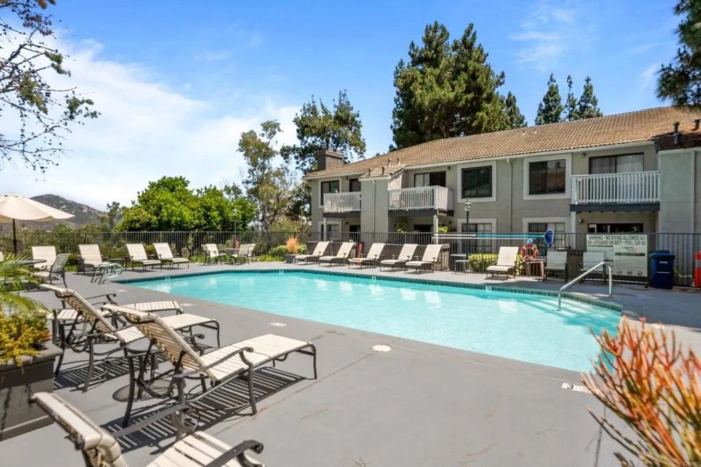 ** Move-In Ready Gem in Highly Sought-After Carmel Trails! ** 1 Bedroom 1 Bath Ground-Level Corner Unit Welcome to Carmel Trails, one of North Countys most desirable resort-style communitiesideally situated in the heart of Carmel Mountain Ranch and within the award-winning Poway Unified School District! This beautiful ground-level corner unit offers the perfect blend of comfort, convenience, and incredible value. Interior Highlights: Freshly painted throughout Granite countertops in both kitchen and bath All appliances included Bright, airy interiors with custom window treatments Living room features a granite-faced fireplace, neutral carpet, and ceiling fan in dining area Spacious bedroom with dual mirrored closets Full-size laundry closet with shelving 1 assigned carport parking space in front of unit Private patio overlooking a serene greenbelt you'll love the peace and greenery. Resort-Style Community Amenities: 2 gated pools & spa (unit in close to pool) Clubhouse with fitness center & sauna Tennis & basketball courts BBQ area Ample guest parking Prime Location: Just minutes to I-15, top shopping centers, Costco, Home Depot, restaurants, movie theater, and everyday conveniences. Perfect for commuters, first-time buyers, downsizers, or savvy investors. All nestled within a quiet, park-like setting surrounded by mature pines and lush landscaping. Dont miss this opportunity! Highly rated schools, Rancho Bernardo High School and Bernardo Heights Middle Schools, are very close by schedule your tour today and make this exceptional condo yours!