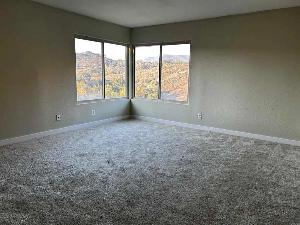 This unique and spacious home is situated on the top part of this large 4.45 acre parcel, with a view down the gentle slope and across to the surrounding mountains on a private road. This is a multi-level home, allowing for lots of privacy, with a beautiful, spacous, eat-in kitchen, plus separate dining room. Room to play downstairs in a separate family room or use as an office. Solar power is leased. Easy access to the 3 car garage from the first floor. Very close to shopping in Rancho San Diego, and the schools. Looking for privacy, yet close to town?? Must see!!!