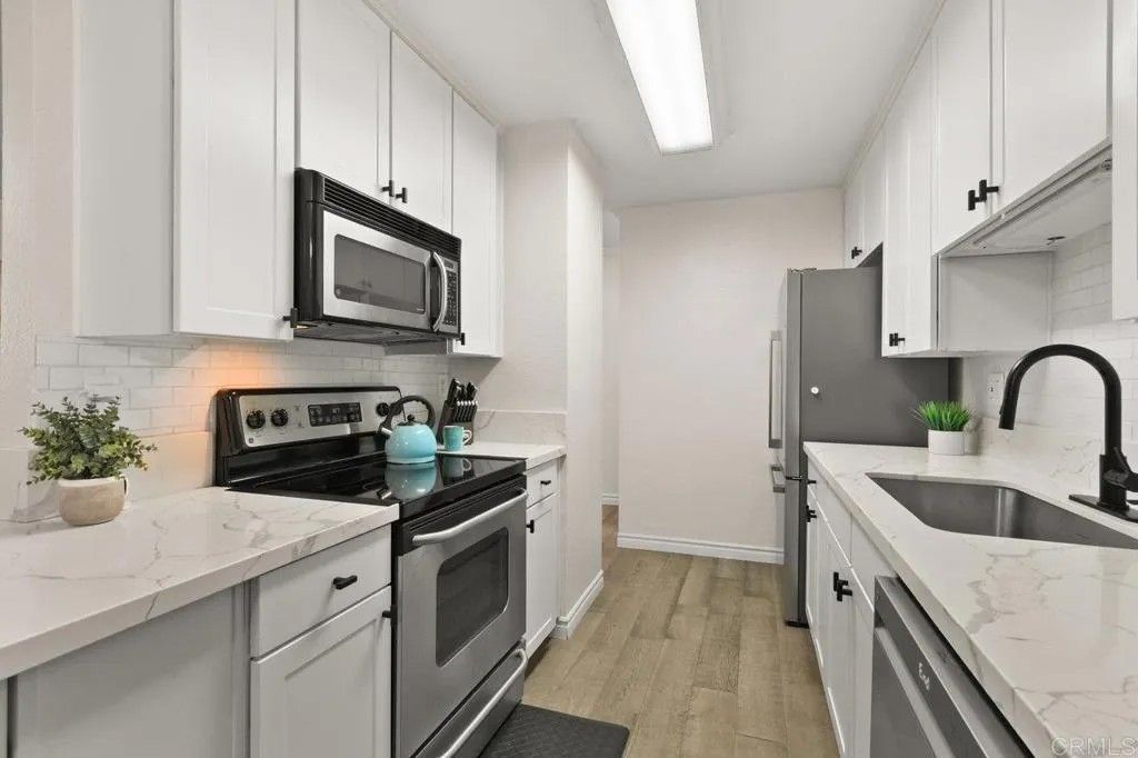 Stylishly Remodeled Condo in Prime Rancho Peasquitos Beautifully updated and move-in ready, this 2-bedroom, 2-bath condo offers modern comfort in one of San Diegos most sought-after communities. The remodeled kitchen features sleek cabinetry, quartz countertops, a custom tile backsplash, and newer stainless-steel appliances. Both bathrooms have been thoughtfully renovated with contemporary fixtures, designer tile, and upgraded vanities. Additional highlights include engineered hardwood flooring, modern lighting throughout, and a cozy fireplace anchoring the open-concept living space, which opens to a private patioperfect for indoor-outdoor living. Quietly situated within the community, the home is just steps from an impressive array of resort-style amenities including a pool, spa, clubhouse, gym, racquetball court, playground, BBQ areas, volleyball court, dog park, and ample guest parking. Low HOA fees include water, trash, and common area maintenance. Located in the award-winning Poway Unified School District, with convenient access to shopping, dining, I-15 and SR-56, and just 15 minutes from Torrey Pines and Del Mar beaches. Enjoy nearby hiking and outdoor recreation at Black Mountain. This is North County San Diego living at its finest.