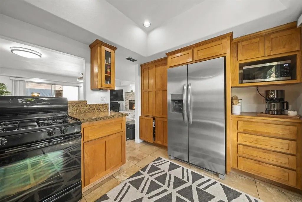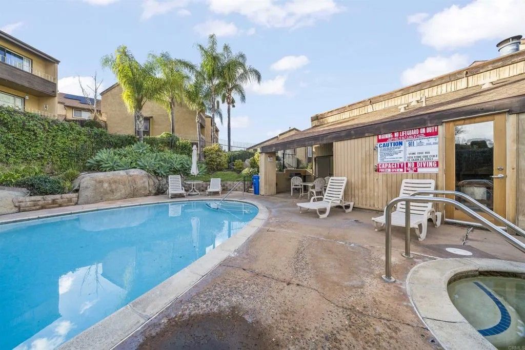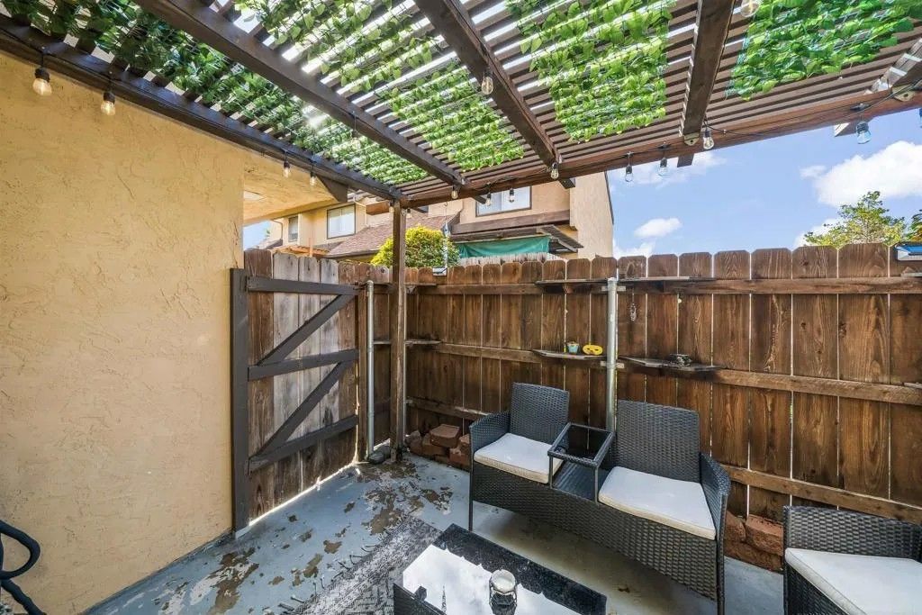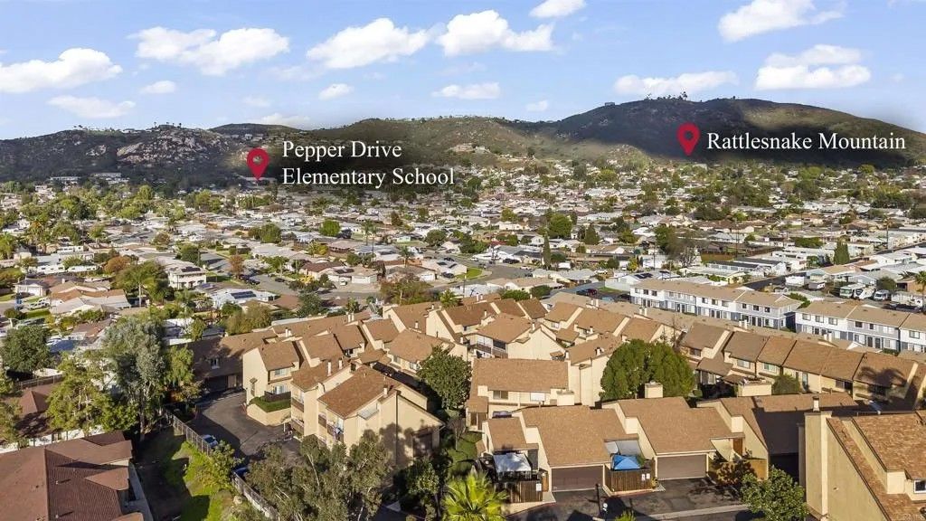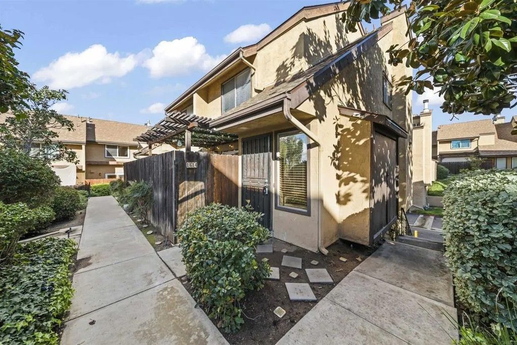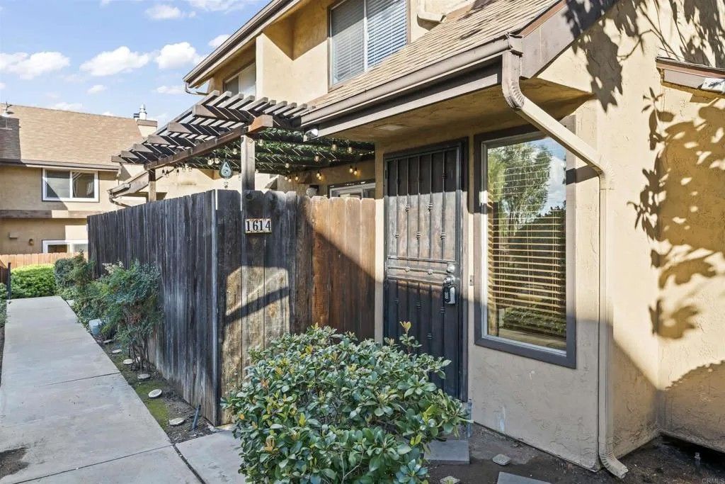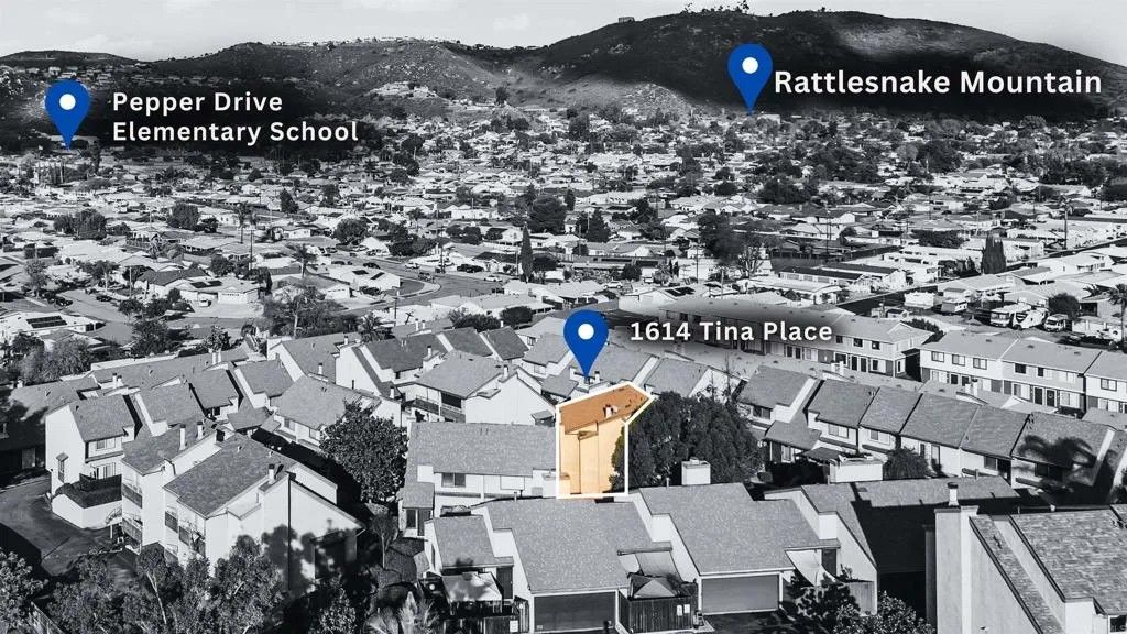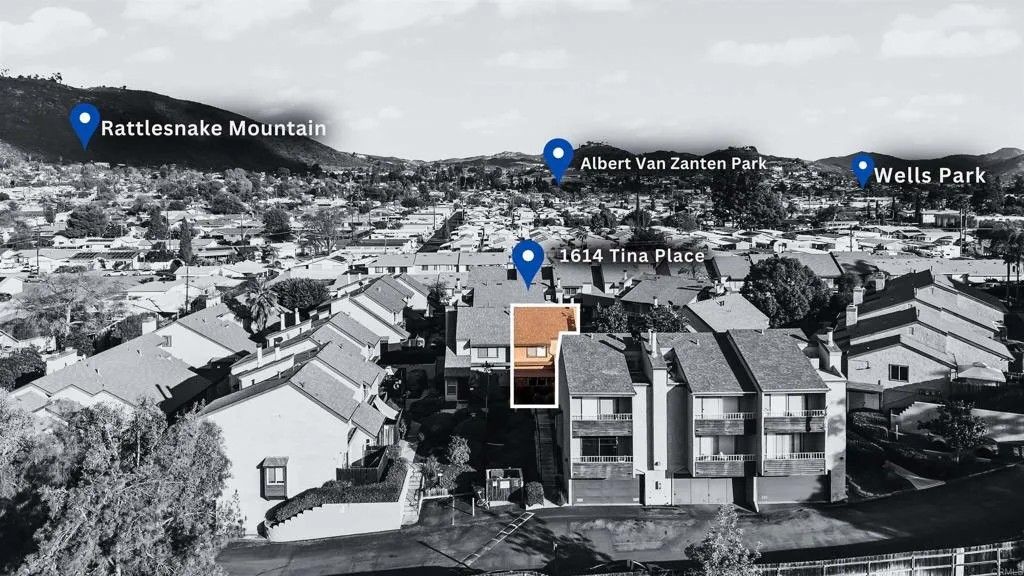 Welcome to 1614 Tina Pl, El Cajon, CA 92021, a beautifully updated end-unit townhome located in the gated Stone Edge Condominiums community. This 2-bedroom, 1.5-bath residence offers 1,063 sq ft of light-filled living space featuring an open layout, gas fireplace, and a wall of sliding glass doors that open to a private balconyperfect for relaxing or entertaining. The updated kitchen features solid wood cabinetry, granite countertops, and under-cabinet lighting, complemented by travertine flooring on the main level and plush carpet upstairs. Additional highlights include a stylish upgraded main-level half bath, a convenient laundry chute from the primary closet, and a spacious 2-car attached garage. Community amenities include a pool, spa, BBQ area, and security services. Conveniently located near shopping, dining, freeway access, Santana High School, and East County amenities. Conventional, and Cash buyers are welcome.