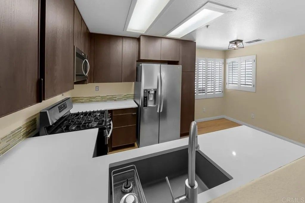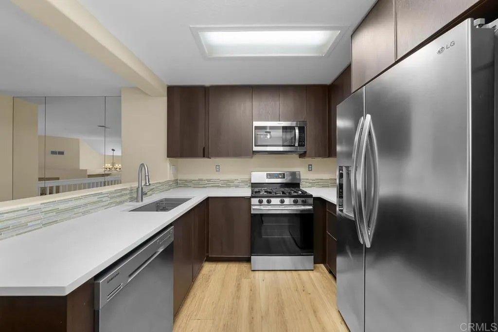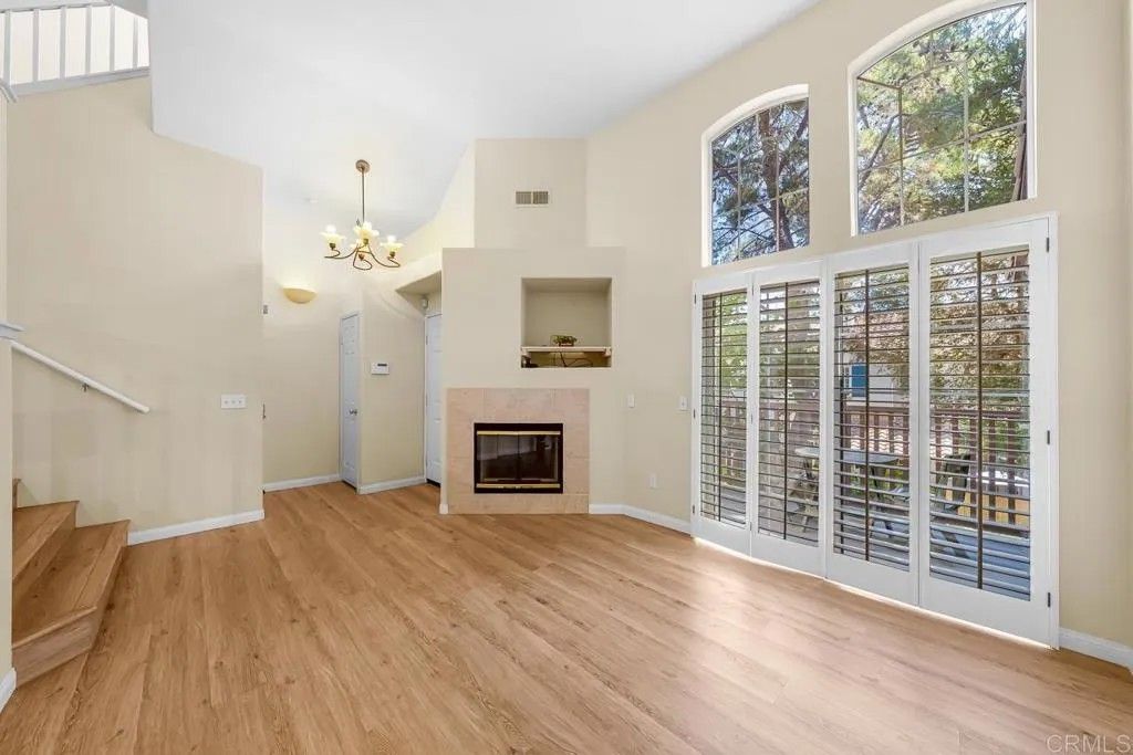 JUST REDUCED! Beautiful townhouse located in the heart of Sorrento Valley in a VA-approved complex! This 2-bedroom, 2.5-bath townhouse features an open floor plan with vaulted ceilings in both the living room and bedrooms. It has fresh new paint, a new A/C unit for the hot summers, laminate flooring throughout, and a cozy fireplace in the living room. The washer and dryer, along with the laundry room, are conveniently located upstairs. Prime location unit is situated next to an 85,000 sq. ft. open-space park with four sand volleyball courts, two tennis courts, and BBQ areas. The complex also features a pool, three spas, and a playground. A 1/4-mile walking path surrounds the park with several exercise stations. A must-see to truly appreciate!
