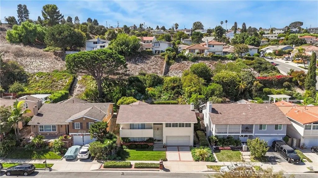 Nestled among mature trees and beautiful landscape sits this charming 5 bedroom, 3 bath home in one of the most desirable family neighborhoods in Palos Verdes. Walking distance from Soleado Elementary school, this impeccably maintained original home includes a 2 story entry, 2 downstairs ground floor bedrooms, laundry and direct access to the oversized 2 car garage. Upstairs is the large open living room, dining, kitchen, primary bedroom and 2 additional bedrooms. The primary and guest bedroom upstairs open up to an upgraded light and bright tile balcony and some city lights views. The expansive grassy backyard and patio are perfect for playing catch, basketball and summer BBQ cookouts. Other great features are an extra storage garage area, new roof and irrigation. Take in the great weather and all the Peninsula has to offer. Walk to restaurants, shopping, award winning schools, Dr.'s offices, the movie theaters and amazing trails. Dont miss out on this rare opportunity.
