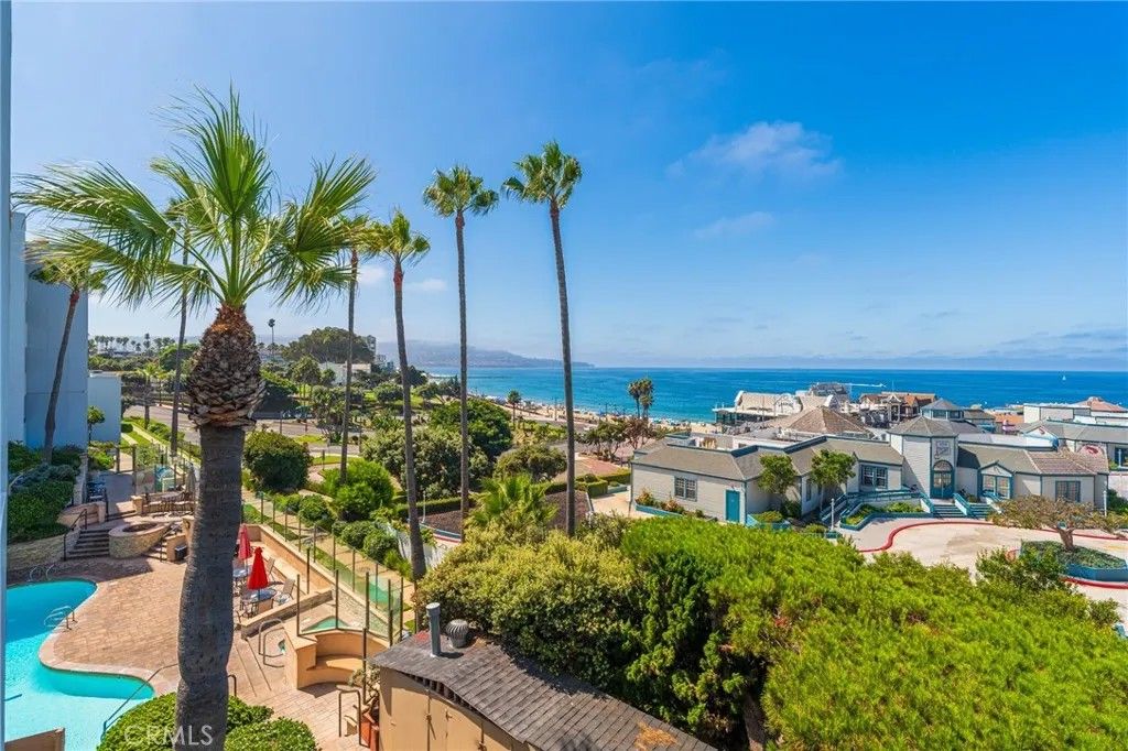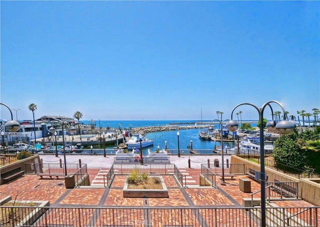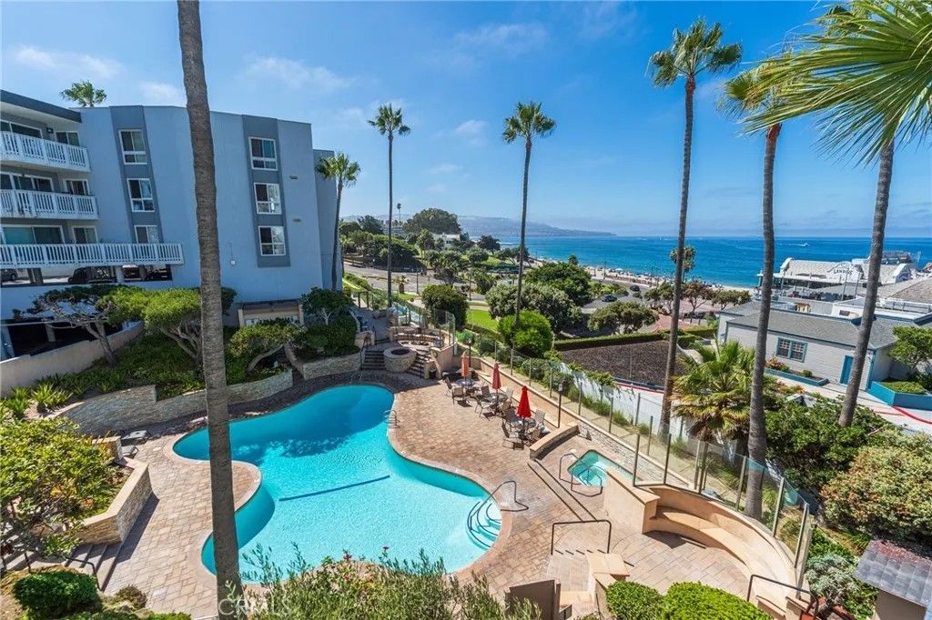 Oceanfront living and ocean views are highlighted in this Redondo Beach condo. The living/dining area and the bedroom have access through large sliding glass doors to a balcony overlooking a the ocean and Redondo Beach Pier. Floor-to-ceiling mirrors opposite the sliding glass doors reflect ocean views throughout the living space. The remodeled kitchen has quartz countertops, and upgraded stainless steel appliances. Two assigned parking places. Multiple EV charging stations are available in the gated visitor parking area. This condo has great views of sunsets, and in summer the colorful sails of sailboats returning to the harbor is a special treat. This complex is unique in that residents have access to two beautiful pools surrounded by beautiful landscaping and palm trees. The smaller ocean-view pools turquoise water has a stone deck along with stacked stone retaining walls. This pool area also includes a hot tub, pool furniture, stainless steel barbecues, and a fire pit. The large pools stunning landscaping and amenities provide a vacation-like feel. Upgraded furniture, cabanas, a large hot tub, barbecues, and fire pits overlook the pool, the ocean, harbor, and the bike path. There is a gym near the pool with views of the pool, palm trees, harbor and ocean. Nearby: Direct access to the Pier is also available from the condo complex and adjacent to the Santa Monica bike path. Other attractions just outside the gated complex include a weekly Farmers Market, waterfront restaurants, paddle boat, kayak, whale watching tours and bike rentals and of course, the beach! Nearby are the Hollywood Riviera Village, Hermosa Beach, and Manhattan Beach. LAX is seven miles away and Downtown LA is 20 miles away. Complex approved for VA and FHA financing.