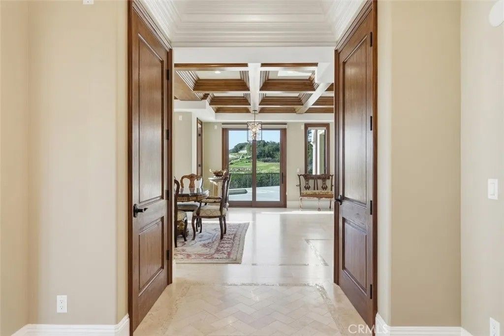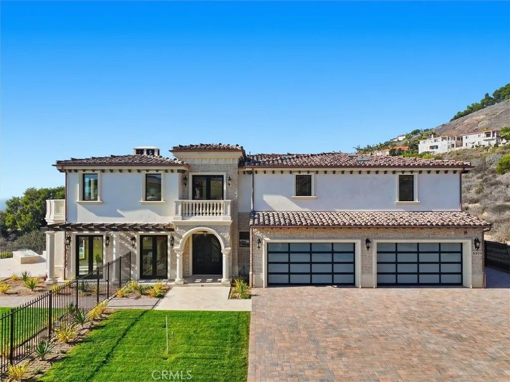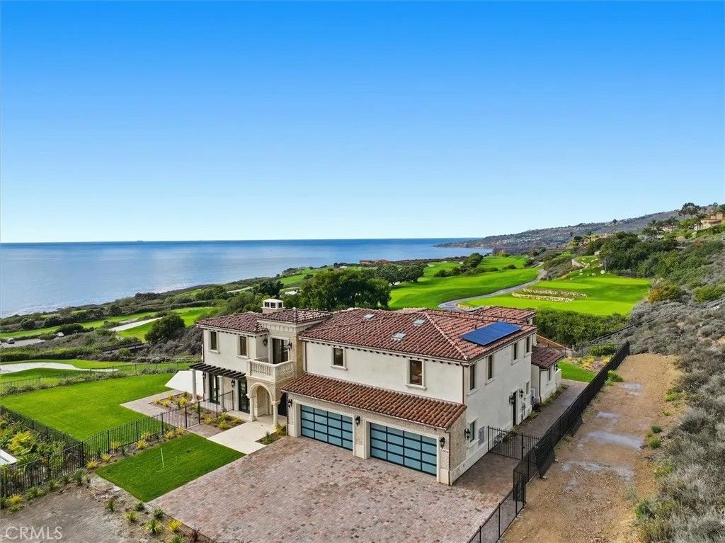 This special brand-new golf estate is a true gem with unobstructed Pacific Ocean and Golf Course Views within a private guard secure community. Introducing a new era of coastal sophistication in this new 5 bedroom with 5 ensuite bathroom estate, perfectly positioned within the prestigious Estates at Trump National Golf Course in Rancho Palos Verdes. Spanning nearly 5,000 sq. ft. of meticulously curated living space, this architectural masterpiece situated on a dream lot captures sweeping panoramic views of Trump Golf Course, the Pacific Ocean and beautiful Catalina Island from nearly every vantage point. Step through grand mahogany doors into a world defined by craftsmanship and comfort. Crema Marfil stone floors, alder cabinetry, and oak wood accents complement three elegant gas fireplaces in the living room, den, and primary suite which leads to a large primary bath with jacuzzi tub and walk in steam shower. The designer kitchen is a chefs dream, featuring granite slab countertops, a Wolf 6-burner range with griddle, Sub-Zero refrigerator, large wine fridge, dual sinks, two dishwashers, and a custom walk-in pantry with pull-out drawers. Designed for seamless indoor-outdoor living, the residence transforms to an entertainers paradise, complete with a lap pool, jacuzzi, outdoor fireplace, and fire pit set against the backdrop of glowing Pacific sunsets and 6+ Trump Golf Course tees enjoyed from the yard and multiple balconies. Every modern amenity is at your fingertips, including a main floor guest half bathroom for convenience, a private elevator ensuring effortless access between the two levels, built-in speakers and lighting control, solar energy, dual-zone AC, and an expansive 1,006 sq. ft. 4-car garage. Located in a 24-hour guard-patrolled community, this new construction residence offers the ultimate blend of privacy, security, and timeless elegance. There is luxury and then there is beyond luxury. Schedule your private tour today and experience the unparalleled luxury of life at Trump Estates.