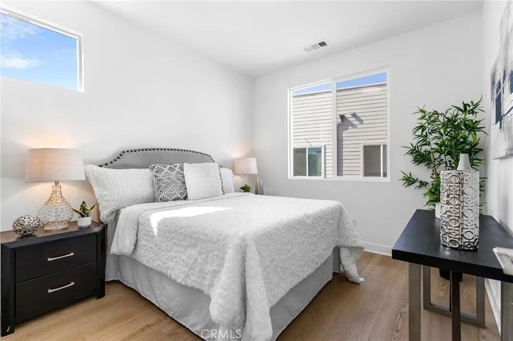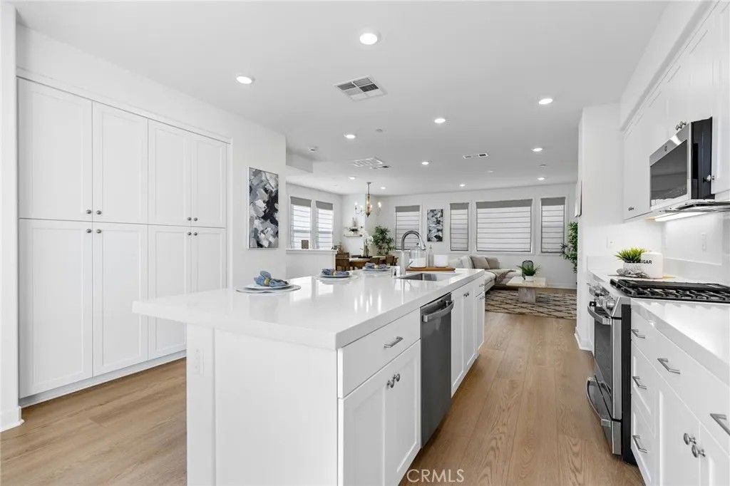 Rarely does a home of this caliber become available - especially at this price point. Perfectly positioned on a coveted corner lot just steps from the community pool within the gated community of Emerald Point by Lennar Homes, this sophisticated tri-level residence offers an unrivaled blend of luxury, functionality, and convenience. With three bedrooms, four bathrooms, and 2K sq.ft. of impeccably designed living space, every detail has been thoughtfully curated for modern living. The first-floor flex space offers endless possibilities, currently designed as a childrens play area with a custom built-in library and loft, yet easily adaptable to suit your needs. As you make your way up to the second floor, youll be captivated by the sun-drenched great room, highlighting the seamless open floor plan. The expansive layout flows effortlessly into a spacious kitchen complete with premium cabinetry hardware, luxury vinyl plank flooring, and an adjacent balcony - the perfect setting for sunset dinners or weekend entertaining. The primary suite is a sanctuary unto itself, featuring a spa-inspired ensuite with dual vanities and a capacious shower enclosure, all complemented by a generous walk-in closet. Every inch of this home reflects elevated design, from marble-tiled bathrooms to wireless Roman shades that can be effortlessly removed for cleaning. And for those who crave outdoor living, this home offers not just one, but two private outdoor spaces - a balcony overlooking the pool and a serene first-floor patio retreat. It also comes equipped with solar panels so you can feel good about renewing energy and save some money while youre at it. Adding to its appeal, this home is still covered under the builders full warranty for eight more years, ensuring exceptional peace of mind. Its prime location offers unparalleled accessibility to major freeways, retail destinations, top dining, and some of Anaheims most iconic attractions. Homes like this - in a setting like this, at a price like this - simply dont exist. If you thought Orange County homeownership was out of reach, think again. This could be your moment - or someone elses - so connect with us today and schedule your private showing.