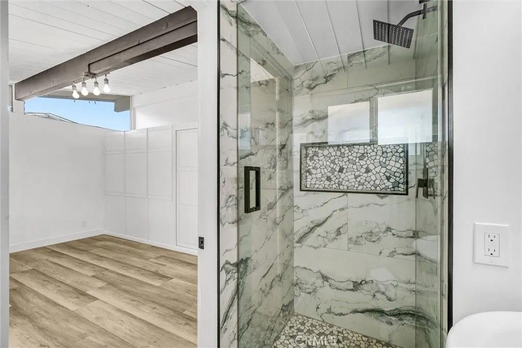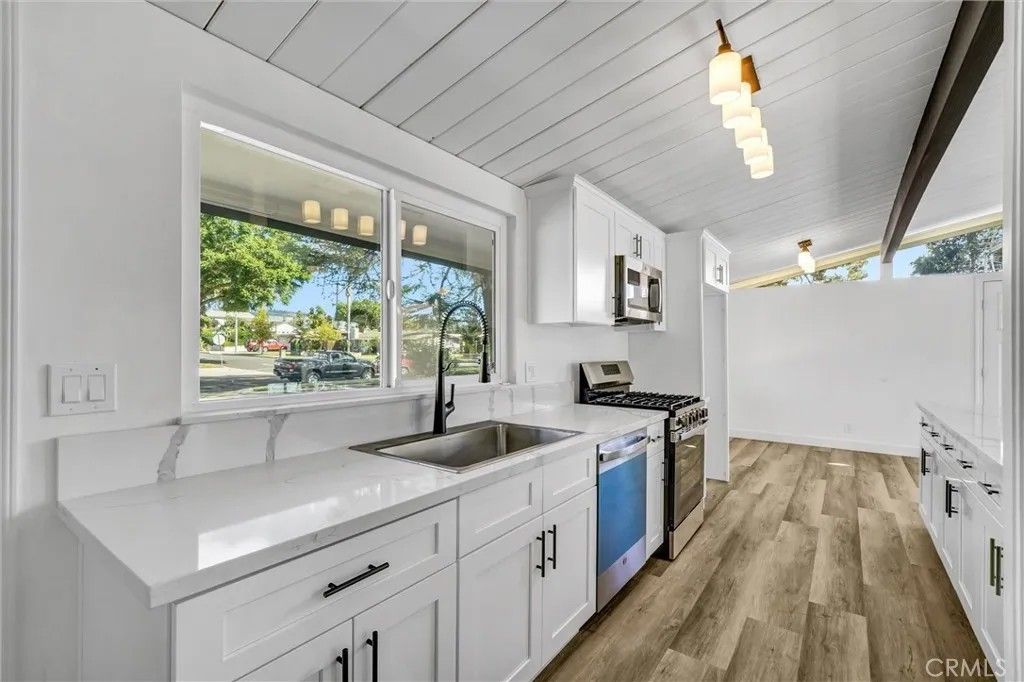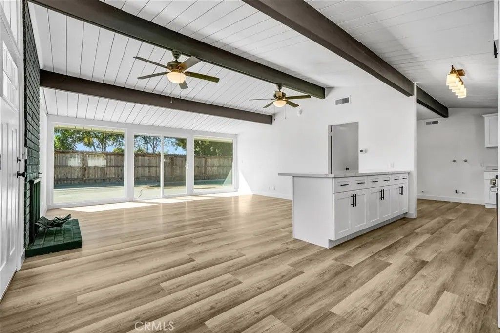 Beautifully Remodeled Mid-Century Modern Home in La Habra! This stunning 3-bedroom, 2-bath home has been completely remodeled inside and out. Enjoy a brand-new driveway with generous parking space for multiple vehicles, plus a spacious backyard with fresh concrete and a sparkling in-ground poola perfect setting for barbecues, celebrations, or quiet evenings by the pool. The pool was recently replastered with pebble finish and new filter, new pump, and new lights were installed. The bright, open kitchen features elegant quartz countertops, a new island overlooking the family room, all-new stainless steel appliances including gas stove, microwave, and dishwasher, plus a new sink and fixtures. Throughout the home, youll find new flooring, fresh interior and exterior paint, recessed lighting, and double-pane windows for energy efficiency and comfort. Both bathrooms have been beautifully upgraded with new vanities, quartz countertops, new toilets, shower doors, mirrors, and modern lighting. The detached two-car garage includes a new motor and door. Potential RV parking at side of home. Located on a quiet street in the City of La Habra, close to restaurants, shopping, banks, and schools. This move-in-ready Mid-Century Modern home blends timeless style with todays upgradesan ideal home for both relaxing and entertaining!