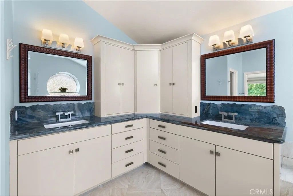This exquisitely reimagined Estate II District residence, masterfully crafted by S&S Homes, graces the prestigious East Lake Village enclave in Yorba Linda. Encompassing 4 bedrooms, 3 bathrooms, and a grand bonus room (configurable as a 5th bedroom), this 3,850 sq ft sanctuary seamlessly marries opulent luxury with timeless sophistication. Enter to discover soaring cathedral ceilings, gleaming travertine floors, and a formal living room adorned with a bespoke fireplace and expansive windows that bathe the space in natural light. The adjacent dining salon, accented by intricate crown molding and a climate-controlled wine cellar, sets an unrivaled stage for lavish gatherings. The epicurean kitchen, a culinary masterpiece, boasts lustrous granite countertops, custom artisan cabinetry, a generous center island, and a professional-grade WOLF 6-burner range with a dedicated pot filler. This culinary haven flows effortlessly into a refined family room, featuring a stately fireplace and panoramic sliding glass doors that open to a serene backyard retreat. A luxurious downstairs bedroom, appointed with polished marble floors and direct outdoor access, serves as an ideal guest suite or private office, complemented by a full bathroom and an elegant laundry suite. Ascend to the palatial primary suite, a haven of tranquility with its own fireplace, expansive walk-in closet, new floor-to-ceiling windows, and private balcony overlooking verdant vistas. The spa-inspired ensuite bath offers dual vanities, a frameless glass shower, & abundant custom storage. Two additional upstairs bedrooms, one with dramatic vaulted ceilings, share a meticulously designed full bathroom with granite finishes and travertine accents. The expansive bonus room, crowned with vaulted ceilings, a sophisticated wet bar, and the homes fourth fireplace, offers endless possibilities for entertaining. The secluded backyard oasis beckons with a bespoke Alumawood pergola equipped with a ceiling fan, a shimmering pool and spa, meticulously curated landscaping, a flourishing lemon tree, and ample space for alfresco entertaining. Elevated by recent enhancements, including a new roof and state-of-the-art electrical panel, this residence epitomizes modern luxury. Nestled within East Lake Village, residents enjoy exclusive access to resort-caliber amenities, including sparkling pools, a grand clubhouse, tennis courts, state-of-the-art fitness center, serene lake trails, & moreall within the acclaimed PYLUSD.