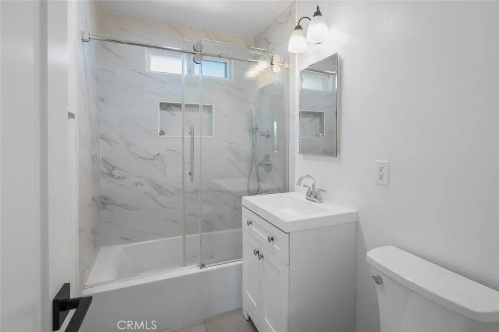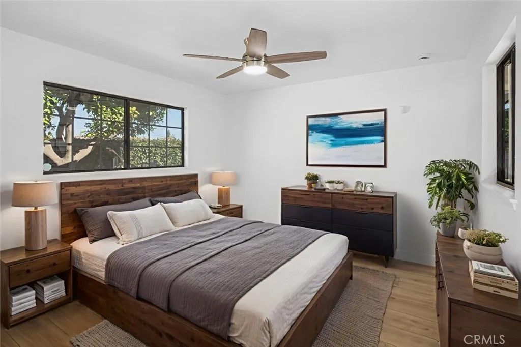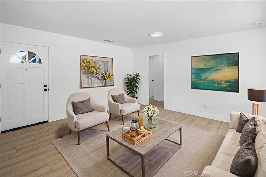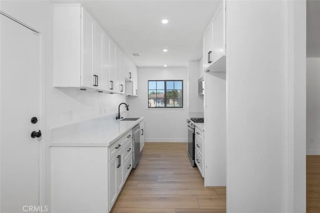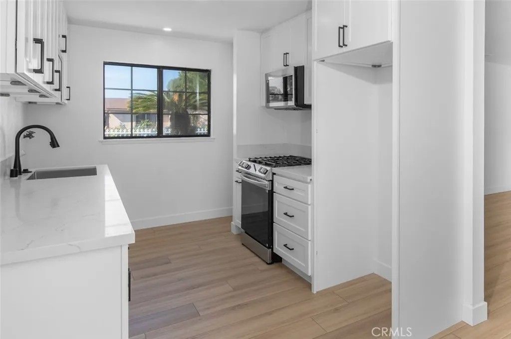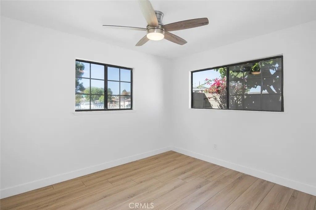 Completely remodeled single story 3 bedroom, 2 bath corner lot home with ADU potential. Located in a highly desirable Santa Ana neighborhood just minutes away from Mile Square Park. Inside features all new wood grain luxury vinyl flooring, recessed lighting and a freshly painted interior. Kitchen is all brand new with Quartz countertops, stainless steel appliances and new white shaker cabinetry. Spacious primary bedroom with private upgraded bathroom. Two additional guest bedrooms share a secondary newly remodeled full bathroom. Lot features an over-sized backyard with large covered patio, ample driveway space including RV/Boat parking, 1 car garage & private front security gate. This home is truly turnkey.