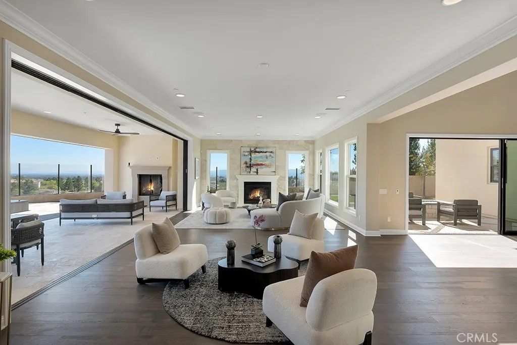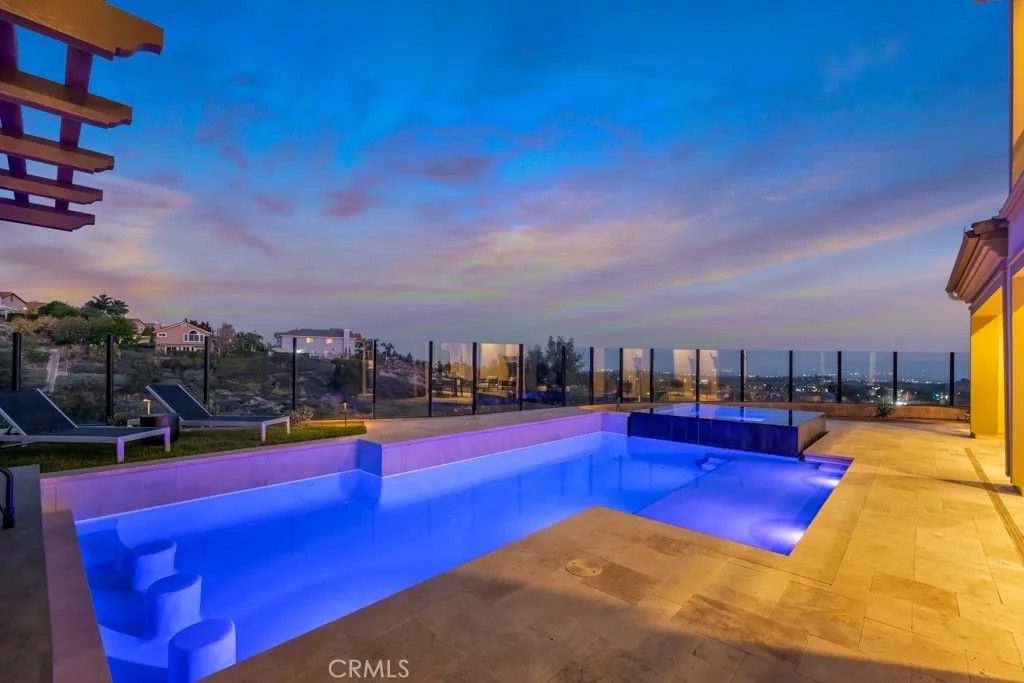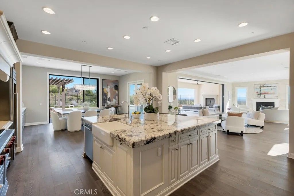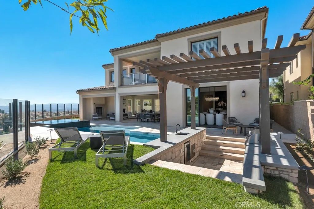 Stunning luxury estate with panoramic views, ideally positioned at the end of a peaceful cul-de-sac in the exclusive, 24-hour guard-gated Westcliffe at Porter Ranch community. One of the larger properties in the neighborhood, this impressive Spanish Colonial Palisades model by Toll Brothers offers 5,710 square feet of refined living space, featuring 5 bedrooms, 5.5 baths, and an additional flexible room located just behind the kitchen. Fully reimagined in 2025 with a complete interior renovation and landscape redesign, the home showcases dark-stained white oak hardwood floors throughout, natural stone countertops, and luxury appliances from Sub-Zero and Wolf. Expansive multi-panel glass doors open to the patio and courtyard, creating a seamless indoor/outdoor flow ideal for entertaining. The newly completed pool, spa, and outdoor kitchen (finished September 2025) are surrounded by travertine pavers, lush softscaping, and wireless automated pool equipment, delivering a true resort-style experience in a private, tranquil setting. Option to purchase subject to the existing 30 year conventional loan with a 4.375% rate.