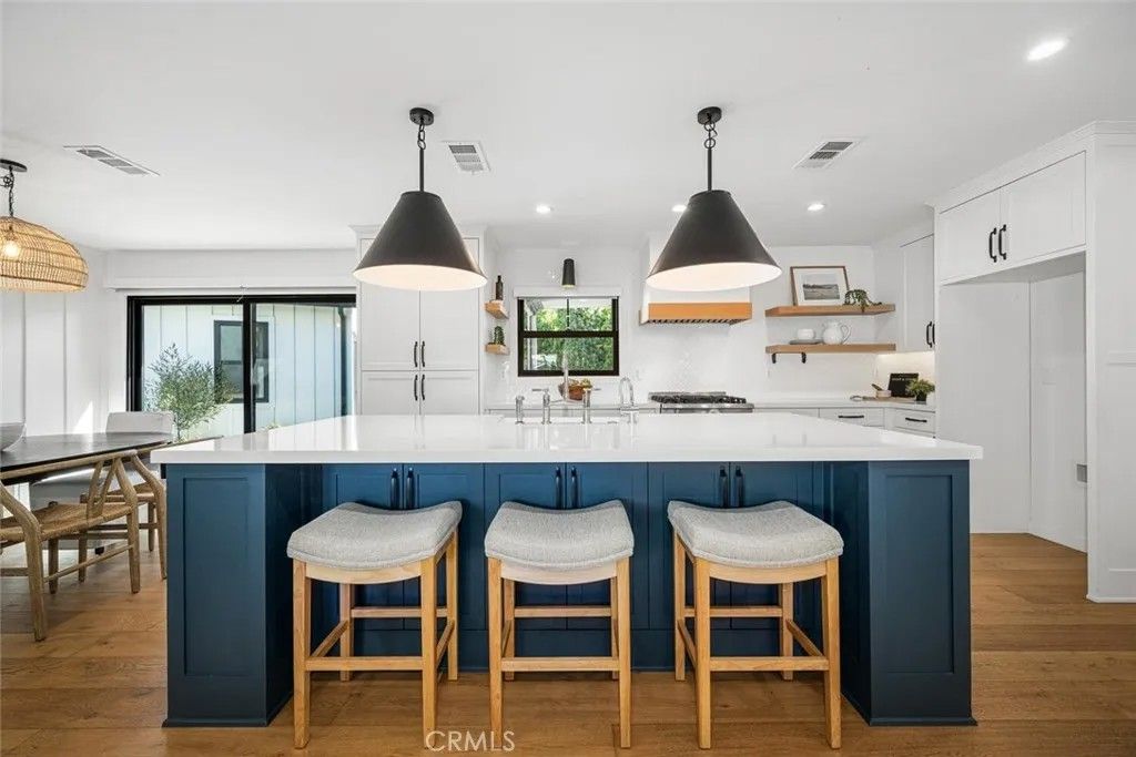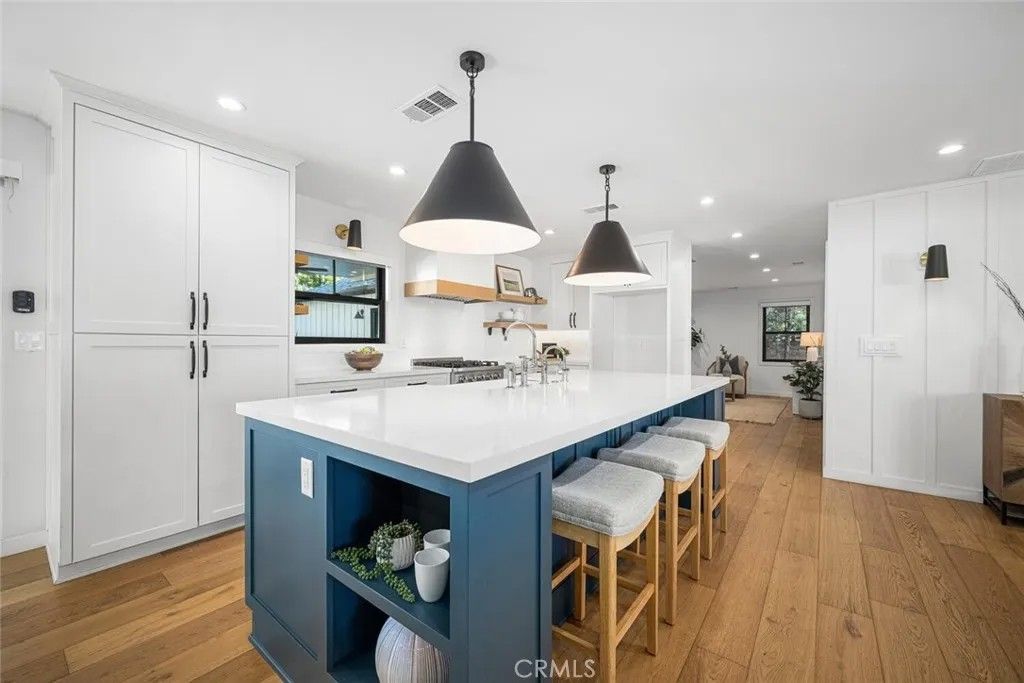 WELCOME TO YOUR DREAM HOME! 11822 Harrisburg Road offers the perfect blend of fine craftsmanship and modern convenience. Situated on an oversized 8,162 sq. ft. lot in one of Rossmoors most desirable interior tract locations, this stunning home features 3 bedrooms, 3 bathrooms, and 2,151 sq. ft. of living space. Fully remodeled and expanded down to the studs, the home embraces true open-concept living. The chefs kitchen boasts custom-built cabinetry, quartz countertops, tile backsplash, white oak floating shelves, and a custom hood vent. A large island with a farmhouse sink anchors the kitchen, living, and dining areasideal for entertaining family and friends. The homes three bedrooms include dual primary suites, each with a custom walk-in closet, plus an additional guest bedroom. A cozy family room with beautiful built-in cabinetry sits at the heart of the home, while the stylishly updated laundry room features Tiffany blue shaker cabinets, a laundry sink, and ample storage.The detached bonus room, equipped with a mini-split system for heating and air, offers endless flexibilityperfect as a home office, playroom, or guest suite. Smart home features include a Brilliant Smart Home Control system, Sonos built-in sound, and high-definition security cameras. Additional upgrades include board and batten wall paneling, European oak engineered hardwood flooring, Andersen dual-pane windows, tankless water heater, and recessed lighting throughout. The backyard is beautifully designed for outdoor living, with a large Alumawood patio cover featuring recessed lighting, ceiling fans, and patio heaters. Gorgeous paver stone walkways are surrounded by fruit trees and lush privacy landscaping. Located within walking distance of Rossmoor Elementary and the award-winning Los Alamitos School Districtdont miss your chance to make this house your NEW HOME!