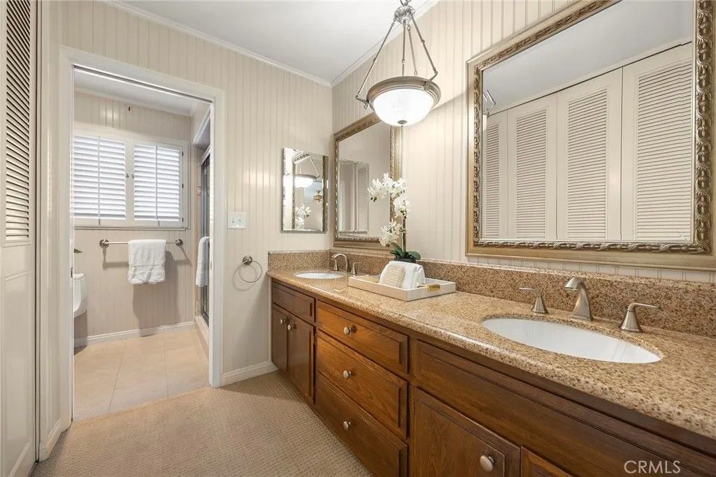 Welcome to 767 El Mirador Dr, a 4-bedroom, 3-bathroom home with over 3,100 sq. ft. of living space on a sprawling 14,042 sq. ft. corner lot in one of Fullertons most sought-after neighborhoods. Just steps from Fullerton Golf Course and award-winning Hermosa Elementary, this residence blends timeless Spanish-style architecture with modern comfort. From the moment you arrive, the property impresses with its finely manicured landscaping, highlighted by a stunning mature coral tree, thoughtfully positioned Ficus trees for privacy, multiple fruit trees, and a dedicated gardening area. The rear yard is a true sanctuary featuring a high-quality fountain cascading into a large pond, a versatile outbuilding perfect for a garden house or playroom, and a spacious storage shed. A grand walkway leads to a warm, private entertainers patio surrounded by lush greenery. Inside, natural light fills the formal living room with wall-to-wall windows and custom shutters, flowing seamlessly into a formal dining room with paneled walls and serene rear yard views. The chefs kitchen offers custom cabinetry, a breakfast bar, and a charming dining nook. A step-down family room with beamed ceilings, fireplace, and access to the enclosed patio sets the stage for gatherings. This level also includes a full guest bath, laundry room with a laundry chute to the upstairs, and access to the oversized 3-car garage. Upstairs, the primary suite impresses with abundant natural light, multiple closets, an en-suite bath, and a spacious balcony overlooking the private backyard. Three additional oversized bedrooms share a large full bath, each with generous closet space. This property is truly one-of-a-kind, offering an unbeatable combination of character, privacy, and location.