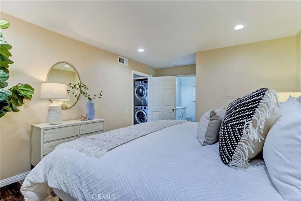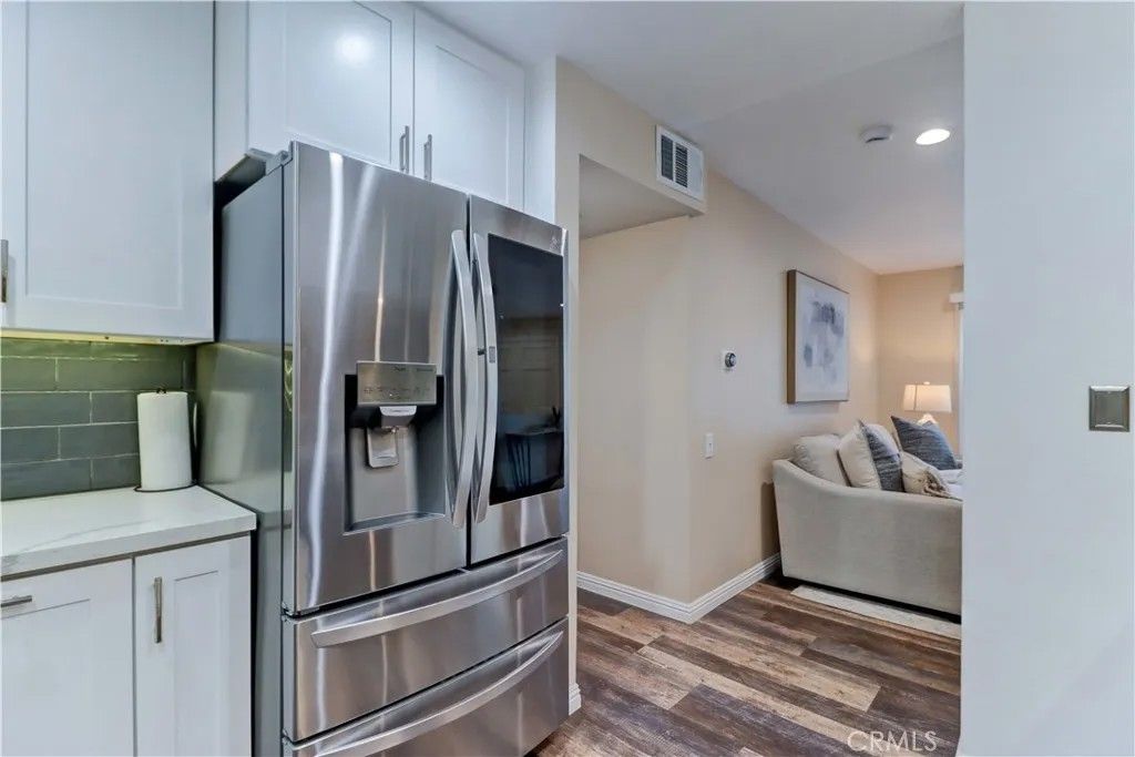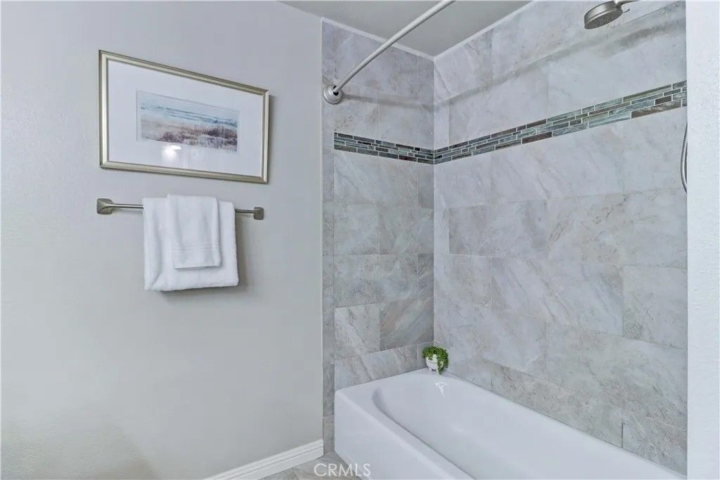 Experience elevated living in this beautifully reimagined ground-floor residence, thoughtfully upgraded to feel more like a sophisticated townhouse with its rare and convenient direct street access. The open-concept layout is designed to impress, featuring a striking stacked-stone fireplace with shelf, mounted flat-screen television, custom built-ins, recessed lighting, smooth ceilings, and luxury vinyl plank flooring that flows seamlessly throughout the home. The dining room showcases a stunning board-and-batten feature wall complemented by a sleek, modern invisible ceiling fan. The chef-inspired kitchen has been meticulously updated with soft-close shaker cabinetry, elegant quartz countertops, subway tile backsplash, under-cabinet task lighting, recessed lighting, a stainless farmhouse sink, and LG stainless-steel appliances. A generous patio offers an ideal setting for outdoor dining or afternoon relaxation and includes a spacious storage shed for added convenience. The serene primary suite features a large walk-in closet and a spa-caliber ensuite bath complete with a double quartz vanity, refined hardware, LED mirrors, and sophisticated designer lighting. The second bedroom includes a mirrored wardrobe, recessed lighting, and direct access to the balcony. The beautifully updated guest bathroom impresses with its quartz-topped vanity, LED mirror, modern lighting, and custom-tiled tub surround. Additional highlights include newer dual-pane windows and sliders, central air and heat, an LG washer and dryer, NEST thermostat, linen storage, and a secure covered parking space. East Park Villas provides an array of amenities including a pool, clubhouse, outdoor showers, elevators, and HOA dues that cover hot and cold water, trash, and sewer. The community welcomes two pets under 40 pounds. Centrally located near freeways, dining, shopping, beaches, and fitness options, this exceptional residence blends elegance, comfort, and convenienceall just moments from the vibrant Long Beach Traffic Circle. Best of all, enjoy effortless parking right outside your front door and skip the hassle of stairs and elevators, especially when unloading groceries. A home of this caliber, with such thoughtful and recent upgrades, is a rare opportunity. Dont miss it. VA approved community!