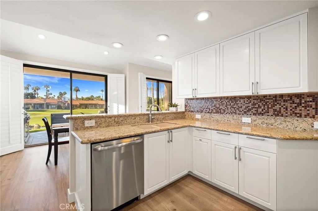 Step into a sun-drenched desert retreat where elegance meets leisure. This desirable Cottonwood model 3-bedroom, 2-bathroom condominium is more than a residence its a gateway to the Palm Valley Country Club lifestyle, a place where mornings begin with golden light spilling across the fairways and evenings end with breathtaking mountain silhouettes. Vaulted ceilings and expansive windows invite natural light, creating a seamless flow between living, dining, and kitchen areas. Outfitted with granite countertops, stainless steel appliances, and custom cabinetry, its designed for both casual breakfasts and gourmet entertaining. Master suite sanctuary is a spacious retreat with direct patio access and a spa-inspired bathroom. Guest bedrooms are thoughtfully placed for privacy, perfect for hosting family or friends. With Designer touches, Plantation shutters, warm flooring, and a cozy fireplace add charm and sophistication. Private patio oasis complete with a built-in BBQ, ideal for sunset dinners overlooking a shimmering pond and manicured greens. All in a Gated community with 2 Ted Robinson 18-hole golf courses, Tennis and pickleball courts, a beautiful clubhouse, 46 swimming pools, trash, cable tv, internet included. With first-class amenities, this fully furnished, turn-key property is one you cannot pass up!