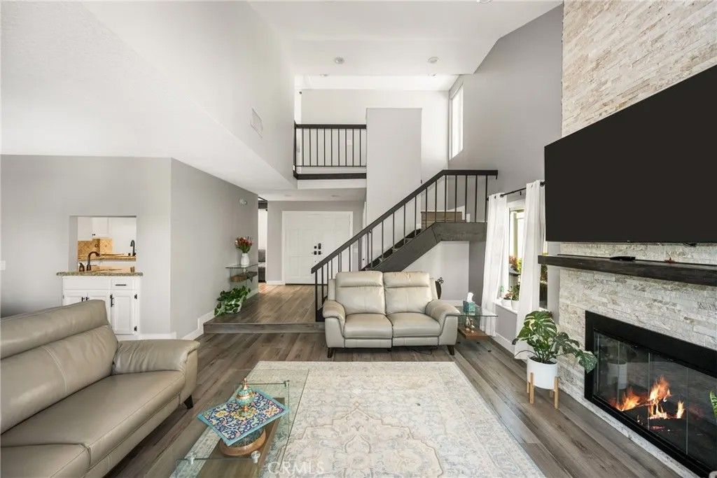 Welcome to 5889 E Mountain Loop Trail, a truly remarkable townhome nestled in the heart of Anaheim Hills. This stunning residence offers a perfect blend of comfort, style, and breathtaking views. With 3 bedrooms, 2.5 bathrooms, and 1,831 square feet of beautifully designed living space, this home provides an abundance of room for both relaxation and entertaining. Upon entering, you'll be immediately enchanted by the sweeping vistas that surround the home, creating a peaceful, serene atmosphere. The lower level features a chic remodeled half bath, complete with modern fixtures and elegant finishes. The kitchen is a chefs dream, equipped with high-end Bosch appliances and gorgeous granite countertops. It opens effortlessly to the spacious family room, where soaring ceilings enhance the sense of openness and light. Whether you're cooking or hosting, this space is perfect for creating memorable moments. The inviting living room, with its sliding doors that lead to the backyard, offers an ideal spot to enjoy the stunning views. A formal dining room provides an elegant space for dinner parties or special celebrations, making entertaining a breeze. Upstairs, youll find two generously sized bedrooms that offer both comfort and privacy, sharing a sleek, well-appointed bathroom. The master suite is truly a retreat, featuring vaulted ceilings that elevate the room's airy feel, a relaxing soaking tub for unwinding, and dual sinks for added convenience. Its the perfect sanctuary to escape and recharge after a busy day. Additional features of this exceptional home include a two-car garage for secure parking and extra storage, upgraded flooring throughout, and a newly installed HVAC system to keep you comfortable year-round. Located in the desirable Anaheim Hills, this townhome offers easy access to shopping, dining, parks, and recreational amenities, ensuring that everything you need is right at your doorstep. Dont miss out on the opportunity to make 5889 E Mountain Loop Trail your new home a place where comfort meets style in a tranquil, picturesque setting.