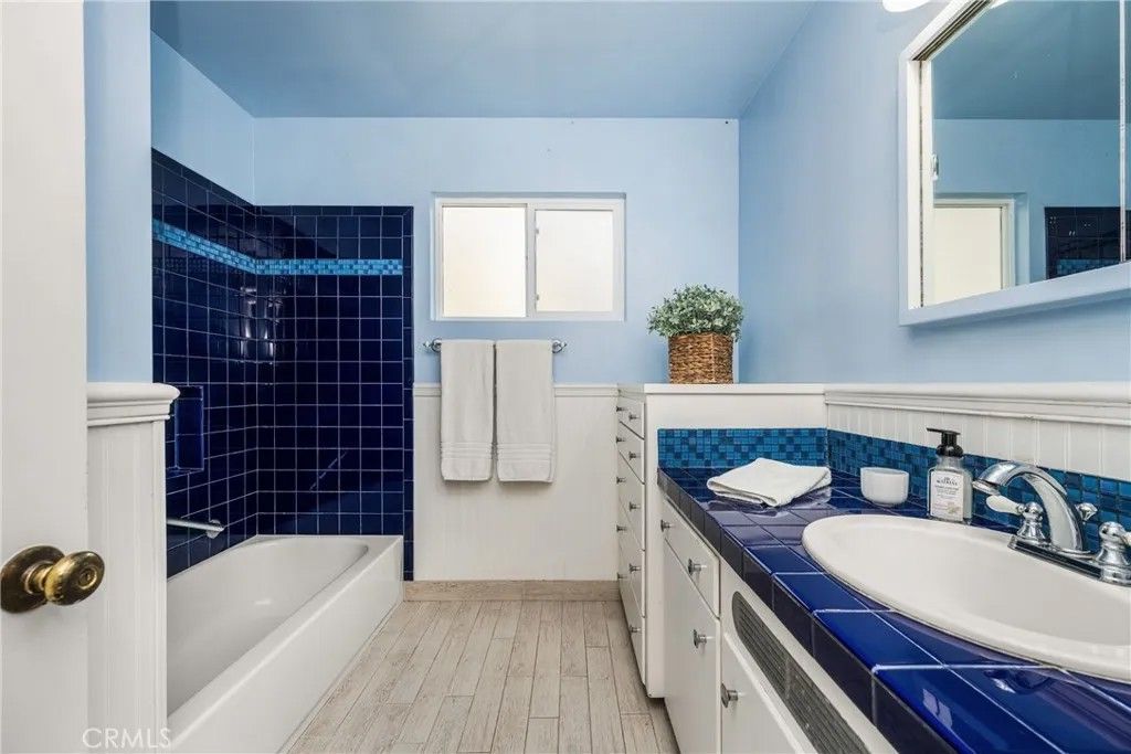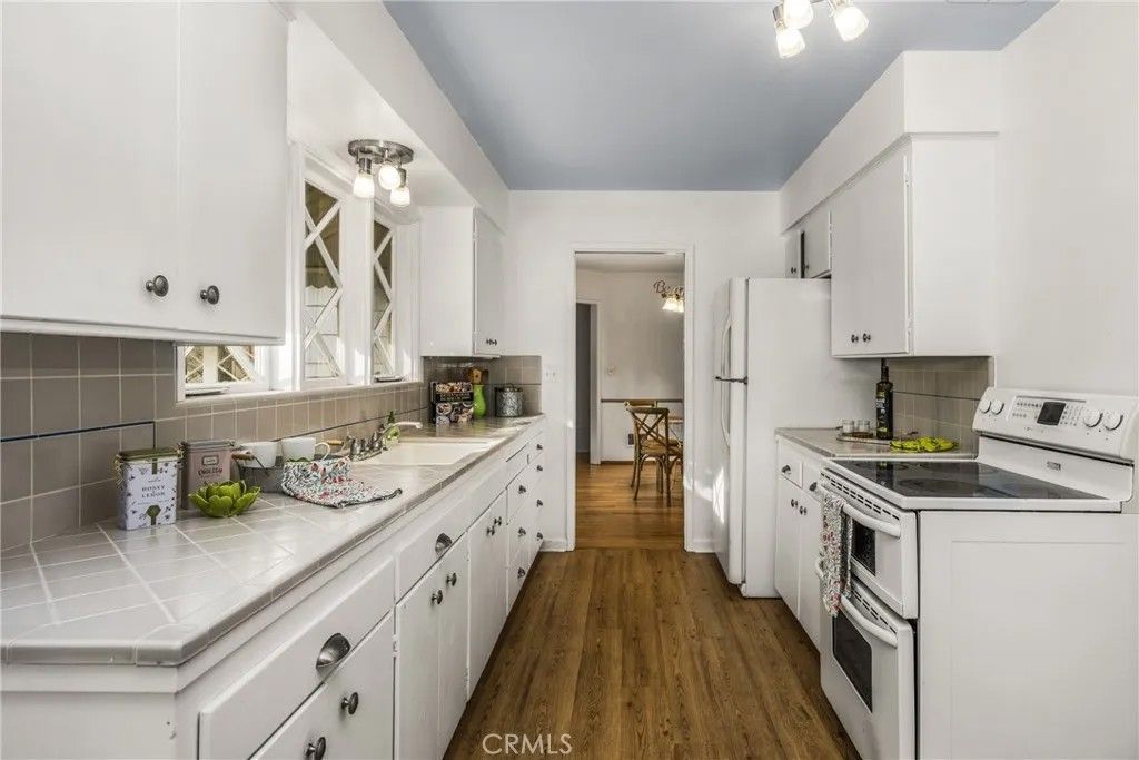 This charming mid-century, single-story ranch home blends classic Cape Cod character with thoughtful functionality. Featuring three bedrooms and two baths, the home showcases wood-shingled siding and attractive water-wise landscaping that enhances its inviting curb appeal. Inside, the spacious living room is filled with natural light from a large front bay window accented with diamond grid panes and anchored by a brick fireplace with a custom mantelpiece. Gleaming hardwood floors flow throughout most of the home, adding warmth and timeless appeal. A separate formal dining room is conveniently located off the kitchen, ideal for gatherings and special occasions. The kitchen retains its original tile countertops and offers a comfortable informal dining area. The guest bathroom is highlighted by custom tiled countertops, a tiled tub/shower surround, and built-in linen storage. The 3rd bedroom features a private entrance and an attached three-quarter bath, making it perfect for guests, extended family, or flexible living arrangements. An interior laundry room adds everyday convenience. Situated on an expansive lot of over 10,300 square feet, the property offers a long driveway leading to an attached two-car garage. The oversized covered rear patio provides an exceptional space for leisure, entertaining, or relaxing year-round. Additional features include central air conditioning and heating. Ideally located on a quiet double cul-de-sac street, this home is close to shopping, dining, and everyday amenitiesoffering privacy, charm, and comfort in a highly desirable setting. This home has great bones and is waiting for the right buyer to put their own touches and upgrades on and make it truly shine!