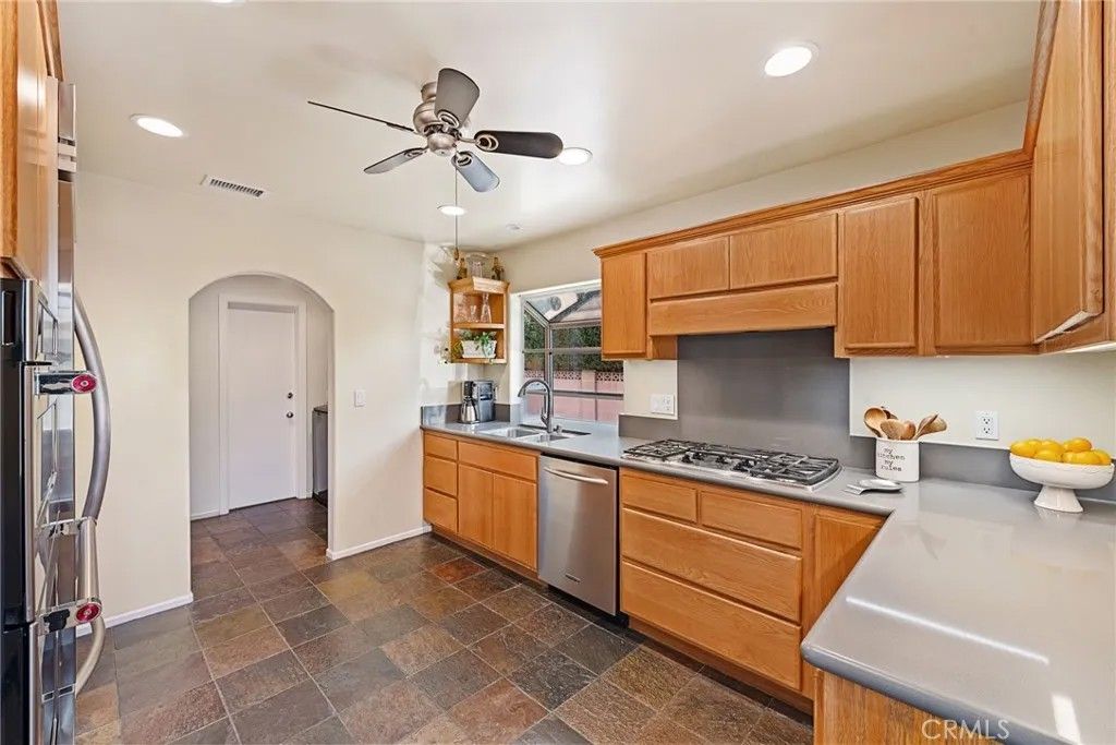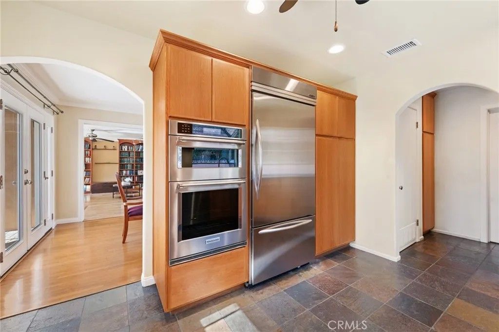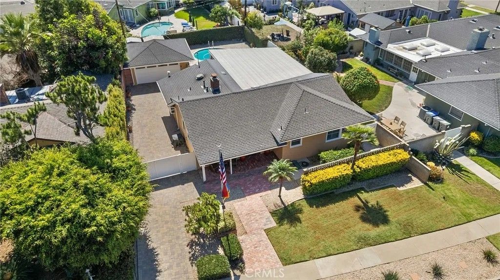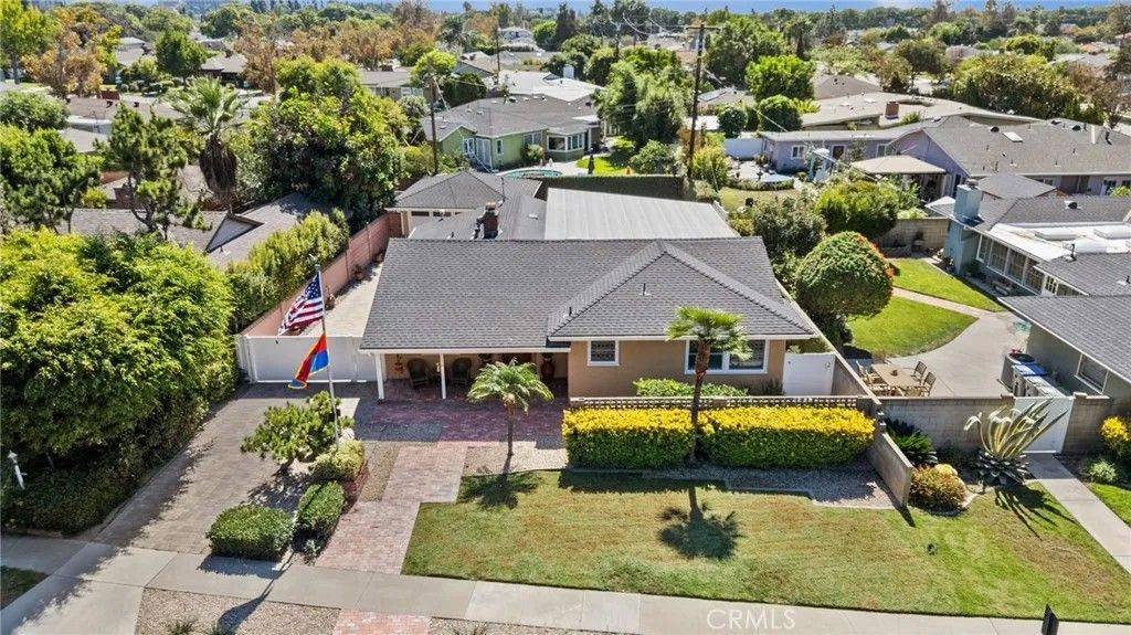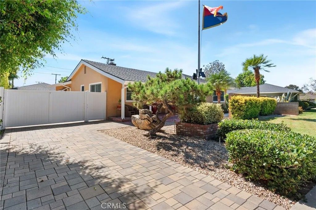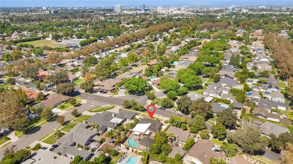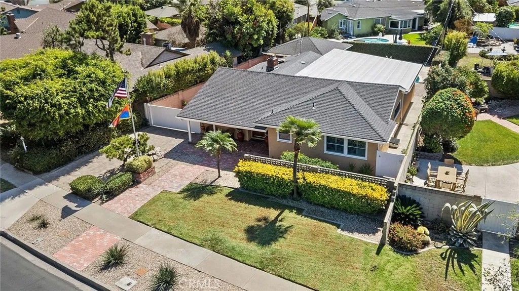 Welcome to this stunning single-story residence located in the highly sought-after West Floral Park neighborhood of Santa Ana. This beautifully maintained home blends timeless charm with modern convenience, featuring hardwood floors, a spacious open floor plan, and fresh interior paint throughout. The inviting living and dining areas are enhanced by a skylight that fills the space with natural light, along with a cozy fireplace. The family room provides an ideal setting for gatherings and includes custom built-in bookcases for both style and functionality. The kitchen is thoughtfully designed with elegant Caesarstone countertops, stainless steel appliances, slate flooring, and plenty of wood cabinetry. The home offers a comfortable and private layout with well-appointed bedrooms featuring window shutters, a bathroom with a walk-in shower, and a second full bathroom with a bathtub. A convenient indoor laundry area adds everyday practicality. Additional highlights include central air conditioning with brand-new air ducts, providing efficient heating and cooling year-round. Step outside to enjoy Southern California living at its best with a low-maintenance backyard featuring pavers and a sparkling swimming poolperfect for relaxation or entertaining. The long driveway provides ample parking and leads to a detached two-car garage. Situated in the heart of West Floral Park, one of Santa Anas most beautiful and historic neighborhoods, this home is surrounded by tree-lined streets, classic architecture, and a strong sense of community. Enjoy nearby parks, and neighborhood events that make this area one of the most desirable places to call home.