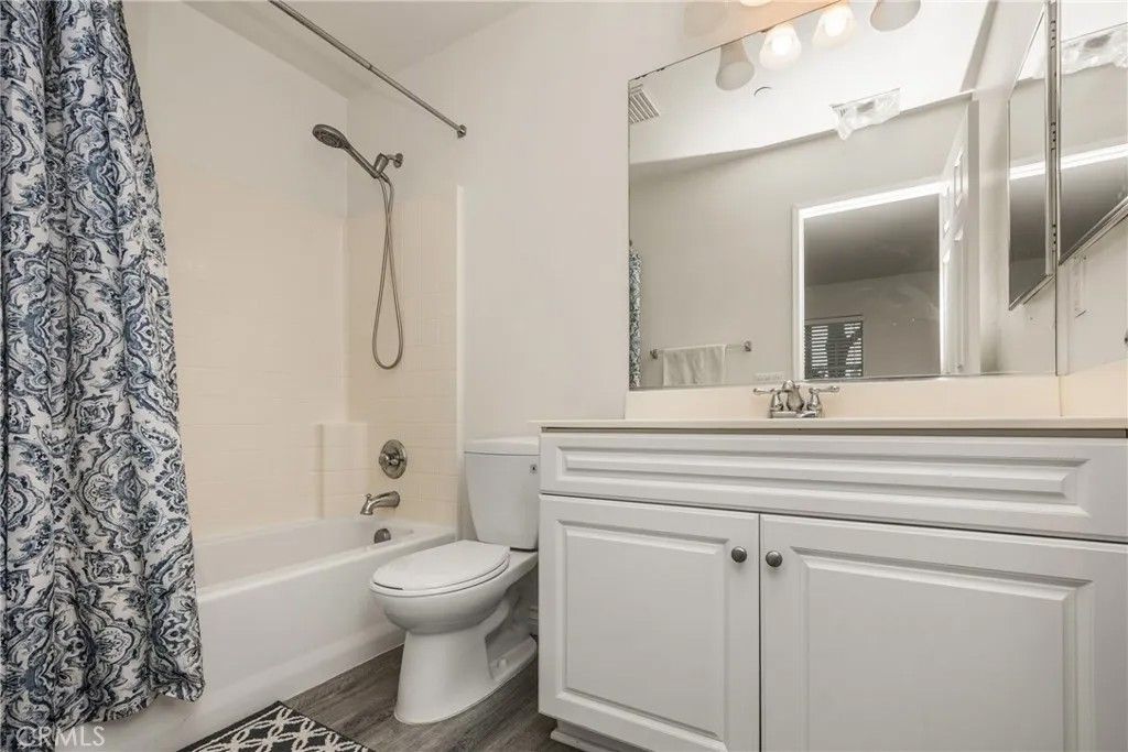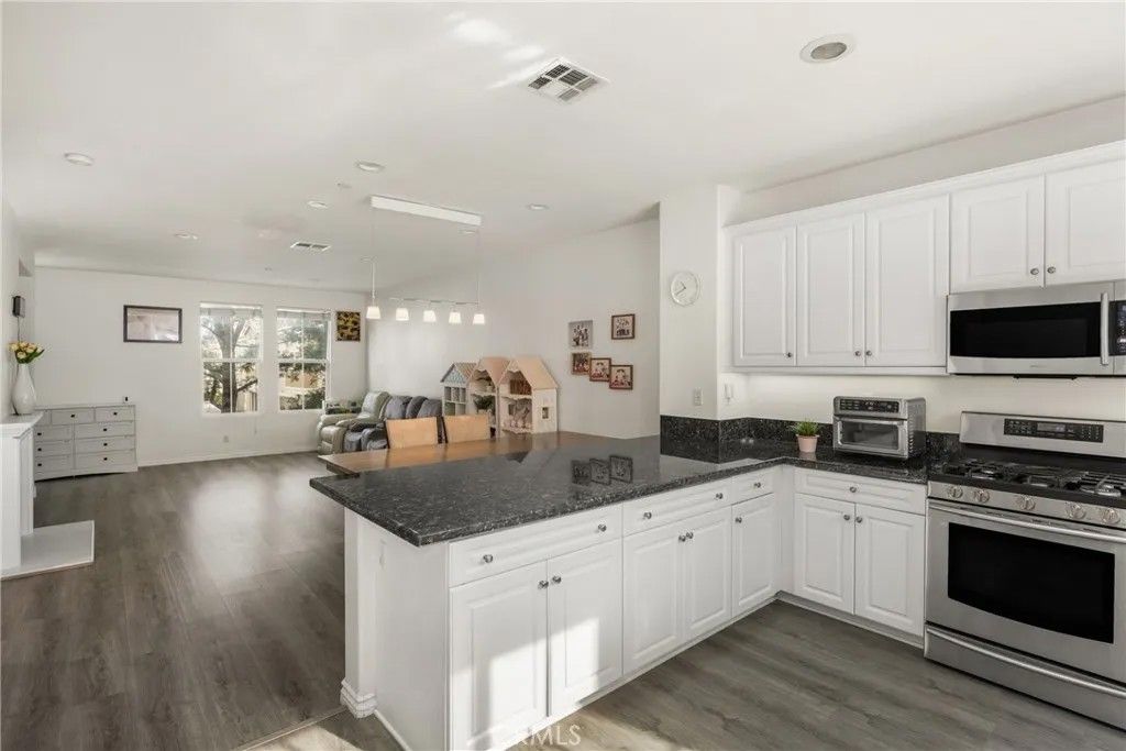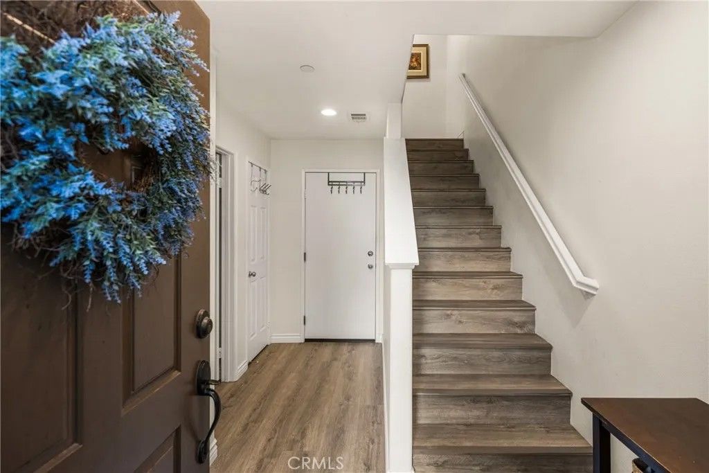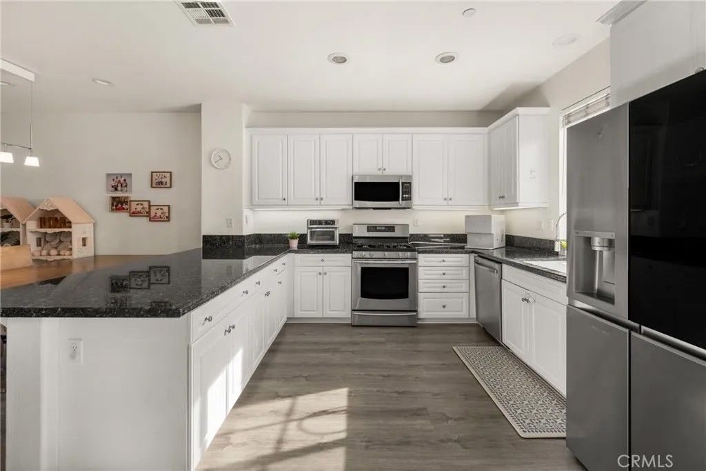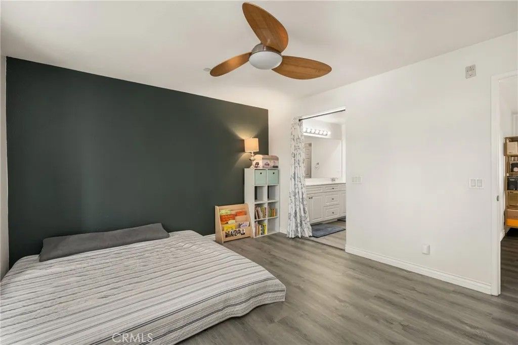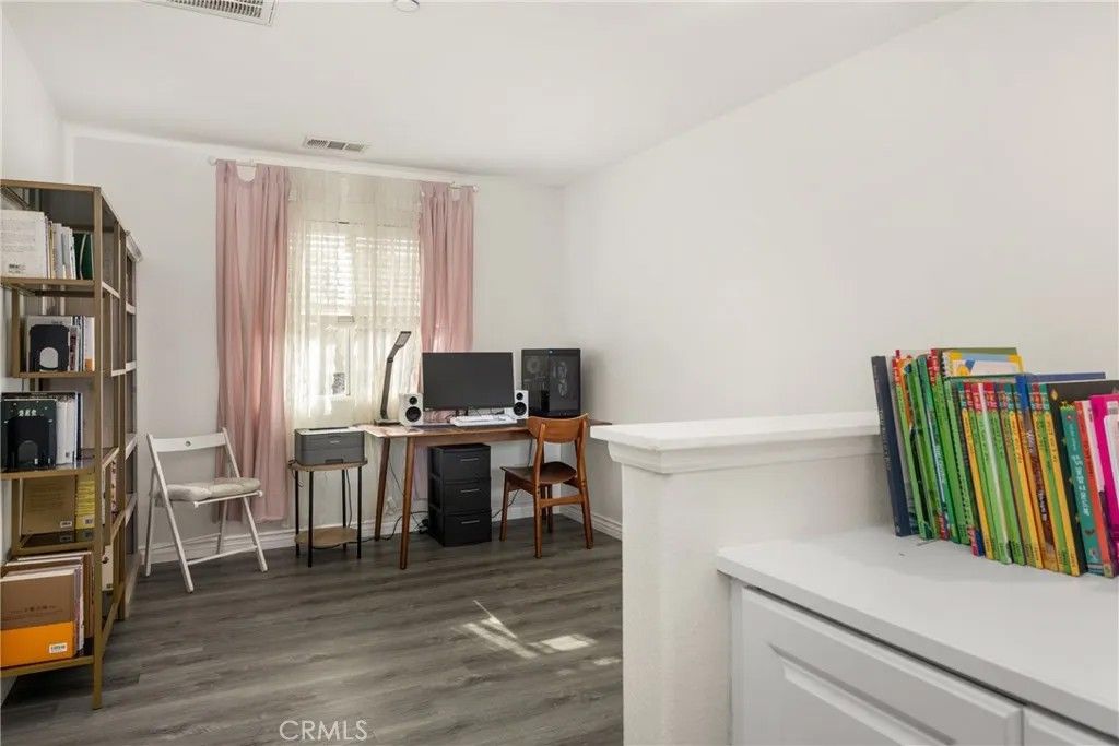 Welcome to this beautiful 2-bedroom, 2.5-bath condo in the highly desirable, gated Serafina community, situated in a quiet area away from the front gate. Offering approximately 1,550 square feet of thoughtfully designed living space, this home features handsome wood laminate flooring throughout and a versatile, multi-level layout ideal for todays lifestyle. The entry level includes a spacious bedroom with a full bathroom and direct access to the attached two-car garageperfect for guests, a home office, or an ideal mother-in-law suite. The main living level is an entertainers dream, showcasing a large open-concept design with a generous kitchen featuring granite countertops, white cabinetry, stainless steel appliances, an oversized breakfast bar, and abundant counter space. The kitchen flows seamlessly into the dining and living areas, where a cozy fireplace creates a warm and inviting atmosphere. A convenient half bath and laundry room complete this level. Upstairs, youll find a spacious primary bedroom with an en-suite bathroom featuring dual sinks and a walk-in closet. The third level also offers an open loft space, ideal for a home office, nursery, or even the potential for a third bedroom. Residents of Serafina enjoy resort-style amenities including 24-hour security, a pool and spa, basketball court, BBQ areas, and playgrounds. The HOA also covers water, trash, and landscaping, making for easy, low-maintenance living. Conveniently located near shopping, dining, and major freeways, this is a wonderful place to call home.