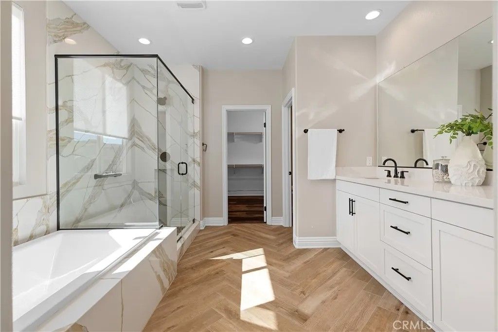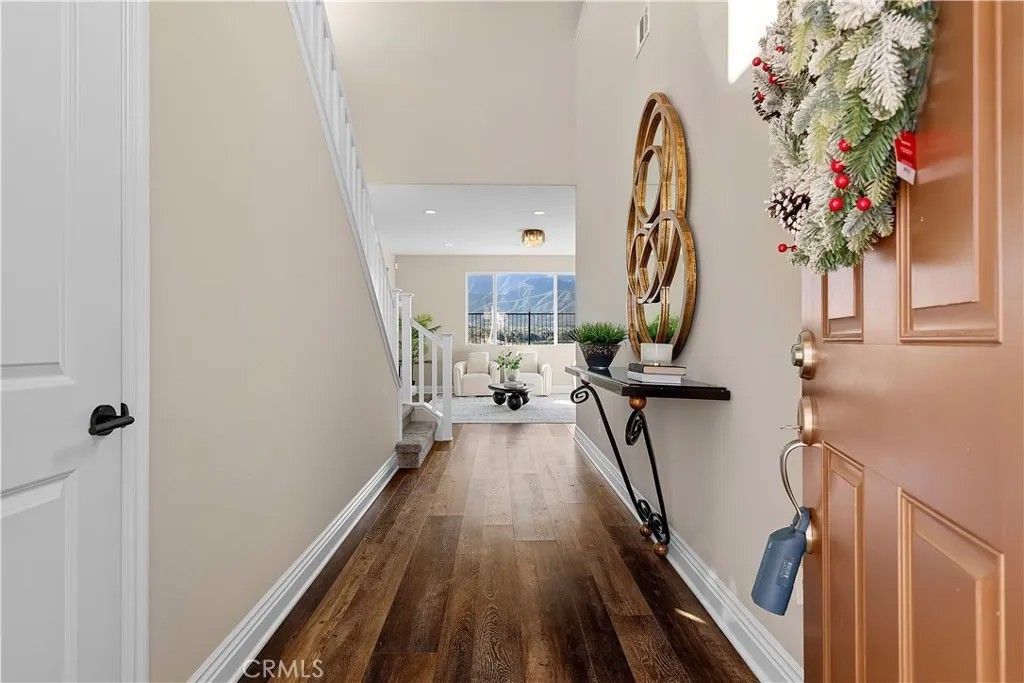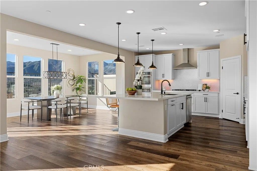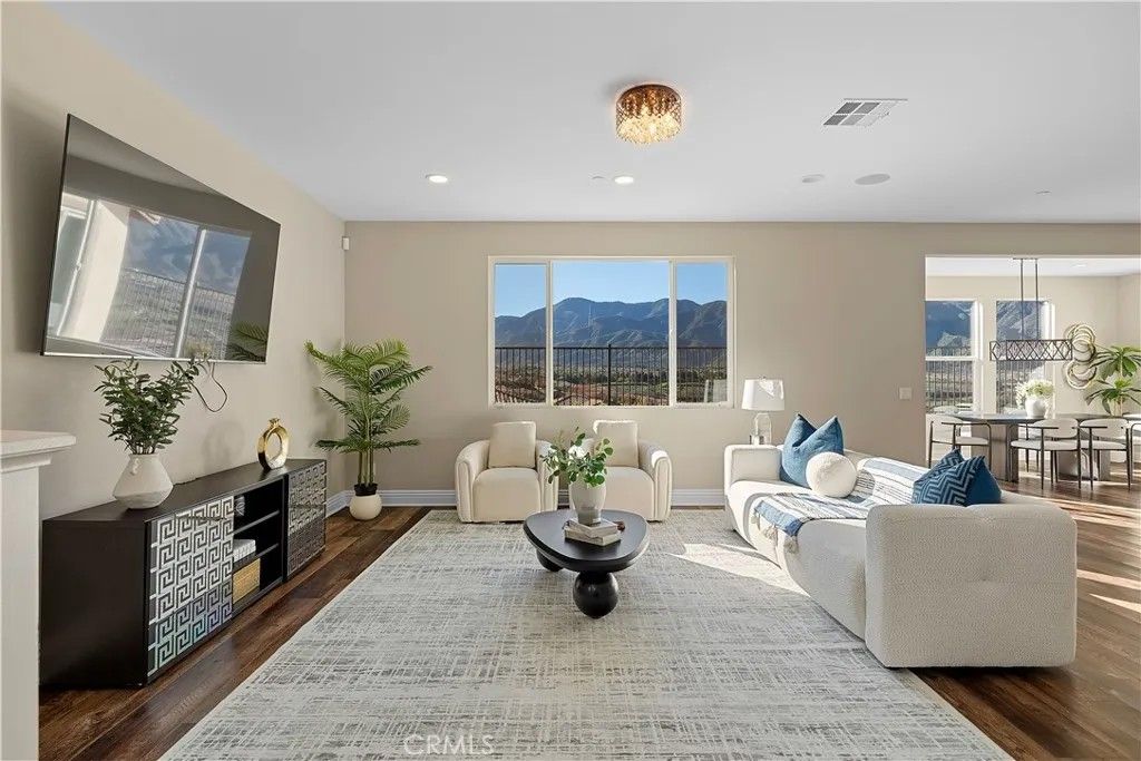 Million-Dollar Views Without a Million-Dollar Price Tag. Experience luxury living in the exclusive, gated community of Terramor. This stunning home offers breathtaking sunrise-to-sunset views of the Cleveland National Forest from the living room, morning/dining area, and upstairs bedrooms. Thoughtfully upgraded throughout, it features custom, low-maintenance landscaping in both front and back yardsan advantage over new builds. The chefs kitchen is a true centerpiece, complete with quartz countertops, a double wall oven, 5-burner gas cooktop with custom exhaust hood, self-closing cabinets with roll-out shelves, and two spacious walk-in pantries. The main level showcases luxury vinyl plank flooring, 8" baseboards, and built-in speakers in the living spaces, loft, and even the garage. A home office/den doubles as a potential fifth bedroom, and a nearby storage room can easily be converted into a full bathroom. Upstairs, you'll find a generous loft, a convenient laundry room with cabinets, four spacious bedrooms including the primary suite, and a second full bathroom. All closets are oversized, and upgraded bronze hardware adds a stylish finishing touch throughout the home. Enjoy nearby shopping and dining at The Shoppes at Sycamore Creek, Toms Farms, Dos Lagos, and The Crossings, and benefit from highly-rated schools in the Corona-Norco School District. Terramor offers resort-style amenities including a clubhouse, pool, spa, parks, scenic hiking trails, dog parks, and more. This move-in ready resale home combines luxury, convenience, and lifestylewithout the wait or cost of a new build.