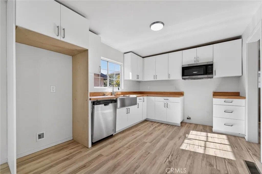 Recently remodeled and full of character, this 1912 City Terrace home offers flexible living options on a gated 3,618 sq ft lot in Los Angeles. The main residence features approximately 915 sq ft with 3 bedrooms and 2 updated bathrooms, showcasing modern finishes while retaining classic charm. Inside, LVT flooring runs throughout the home, complementing the refreshed kitchen with butcher block countertops and stainless steel appliances. The bathrooms have been tastefully updated, creating a clean and contemporary feel. Attached at the rear is an approximately 500 sq ft 1-bedroom, 1-bath unpermitted ADU, providing additional space ideal for extended family, guests, or creative use. The gated property offers off-street parking and added privacy. Conveniently located in the City Terrace neighborhood, this property presents a unique opportunity to enjoy a remodeled home with bonus living space and versatile functionality close to Downtown Los Angeles and major freeways.