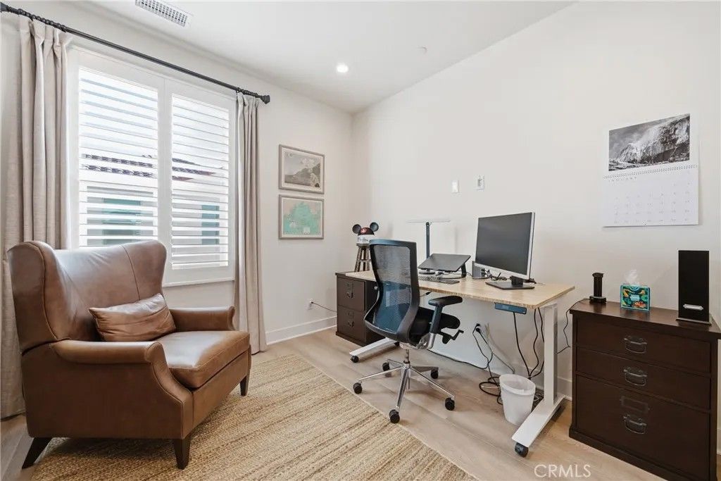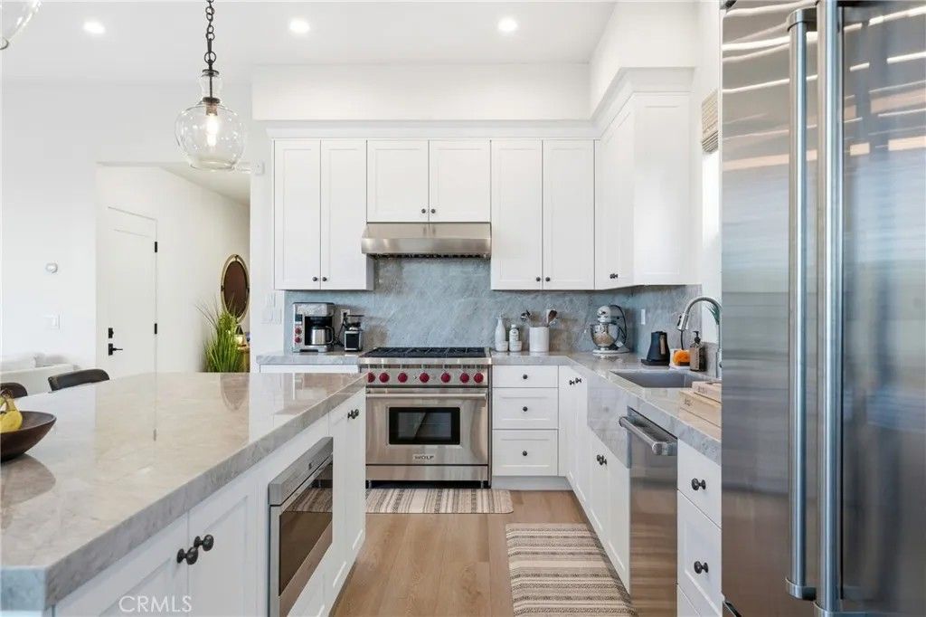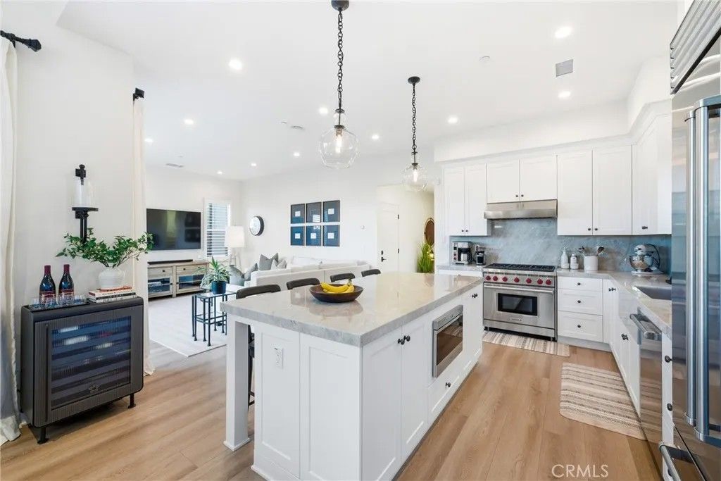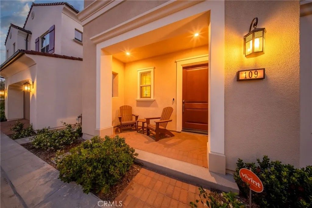 Welcome to 109 Fairgreen, Irvinewhere elevated design and effortless California living come together in one of the citys most peaceful and sought-after neighborhoods. Located within the award-winning Irvine Unified School District and just moments from parks, resort-style pools, and scenic trails, this exceptionally quiet community offers the perfect blend of luxury, comfort, and location. Inside, the home is highlighted by wide-plank laminate flooring, recessed lighting, plantation shutters, custom designer drapery, a custom stair runner that adds warmth and texture, and upgraded fixtures and hardware throughout. The gourmet kitchen is a true centerpiece, showcasing Taj Mahal quartzite countertops that seamlessly extend across the kitchen counters, backsplash, and into the bathrooms, paired with high-end Wolf appliances, a 36-inch Sub-Zero refrigerator, and refined cabinetry for a timeless, designer look. Upstairs, the spa-inspired primary suite features a newly tiled shower, designer-selected tile flooring, and elegant designer wallpaper, creating a serene retreat, while the secondary bathrooms mirror this elevated aesthetic with coordinating tile finishes and designer wallpaper for a cohesive, luxury feel. Expansive panoramic sliding doors invite seamless indoor-outdoor living and open to a private, professionally landscaped backyard with no neighbors to the north and sweeping mountain views overlooking Tomato Springs Park. Additional highlights include a finished garage with epoxy floors, Tesla charger, overhead storage, full interior insulation, a car charger outlet, and paid-off solar panels for energy efficiency. Thoughtfully upgraded and beautifully positioned, 109 Fairgreen is a rare opportunity you wont want to miss.