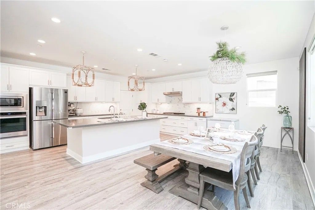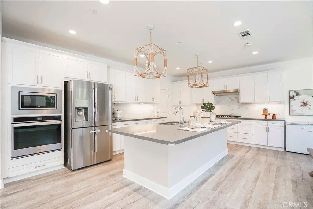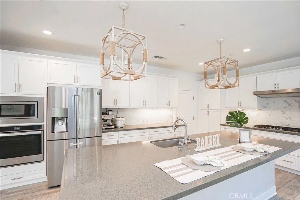 Welcome to 4128 Pompia Way, a beautifully upgraded 2019-built home located in the gated Bedford community of South Corona. This spacious residence offers approximately 2,941 sq ft of living space on an approximately 5,000 sq ft lot, featuring 4 bedrooms, 4 bathrooms, and a 3-car garage, perfectly designed for modern living. The first floor showcases hardwood flooring throughout, creating a warm and elegant atmosphere. The living room is highlighted by a custom stone veneer accent wall and a ceiling fan, providing both visual appeal and comfortideal for Coronas warm climate. The gourmet kitchen is the centerpiece of the home, featuring a large center island, quartz countertops, and designer pendant lighting above the island, creating a soft and inviting ambiance. The adjacent dining area is enhanced by a beautiful decorative ceiling light, setting the tone for cozy dinners and memorable gatherings. Upstairs, the conveniently located laundry room features upgraded tile flooring, adding both functionality and a refined touch. The home is also equipped with a water softener system, providing improved water quality and added comfort throughout the entire home. The thoughtfully designed floor plan offers excellent flow, privacy, and flexibility for family living, entertaining, or working from home. One of the homes standout features is its exceptional locationthe community is adjacent to a nearby shopping plaza with Amazon Fresh, EOS Fitness, Starbucks, and urgent care, offering unmatched everyday convenience. In addition, the home is just minutes from major shopping centers featuring Best Buy, Barnes & Noble, Chick-fil-A, Target, HomeGoods, Kohls, and more. Residents of the gated Bedford community enjoy access to resort-style amenities, parks, pools, clubhouse, and scenic trails, along with proximity to top-rated schools, shopping, dining, and easy access to the 15 Freeway. This move-in-ready home offers the perfect combination of style, comfort, security, and conveniencedont miss this exceptional opportunity in South Corona.