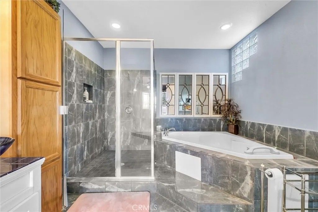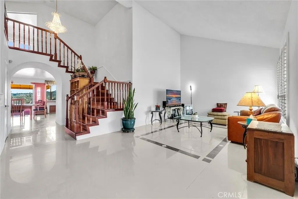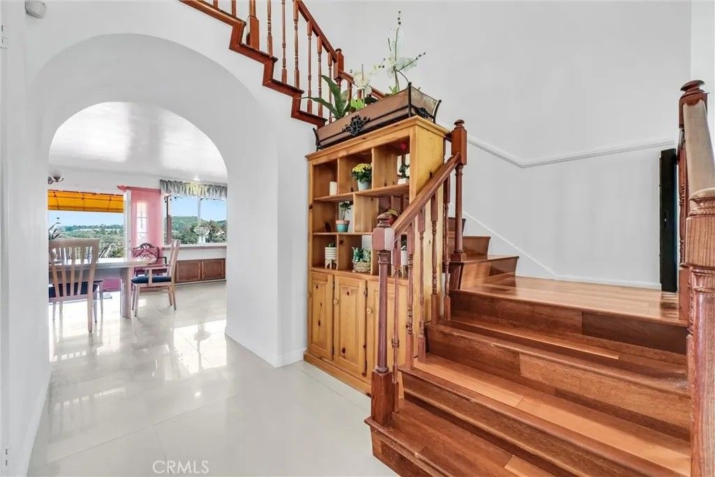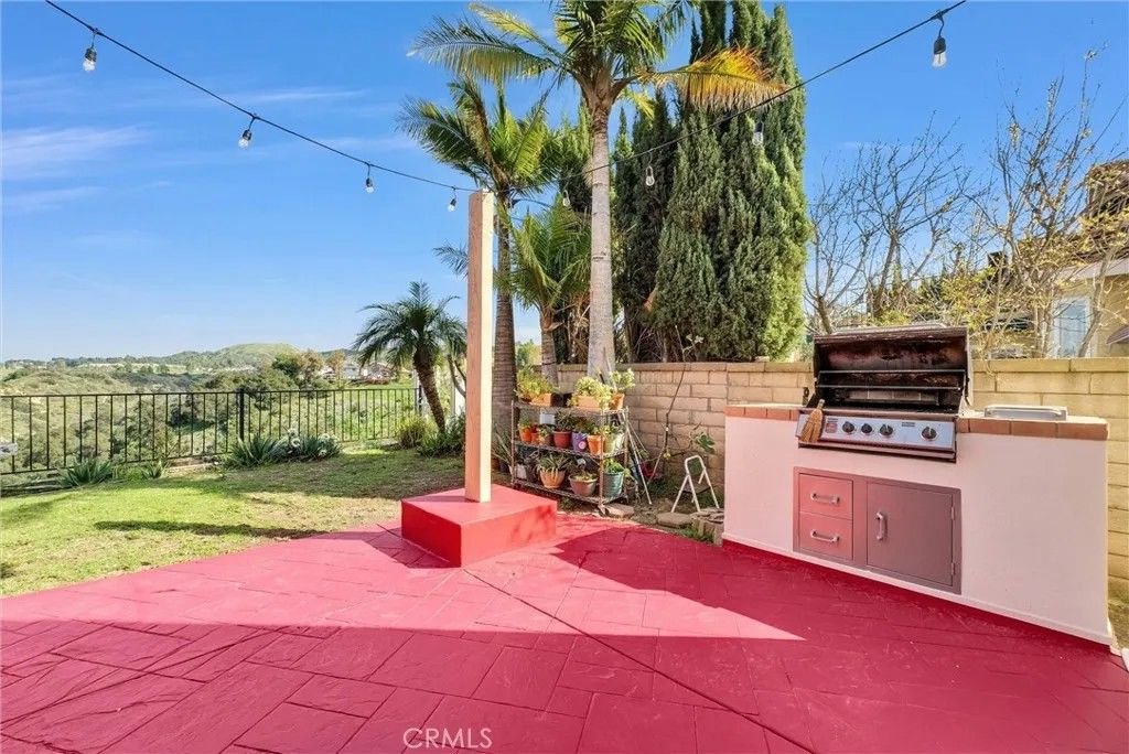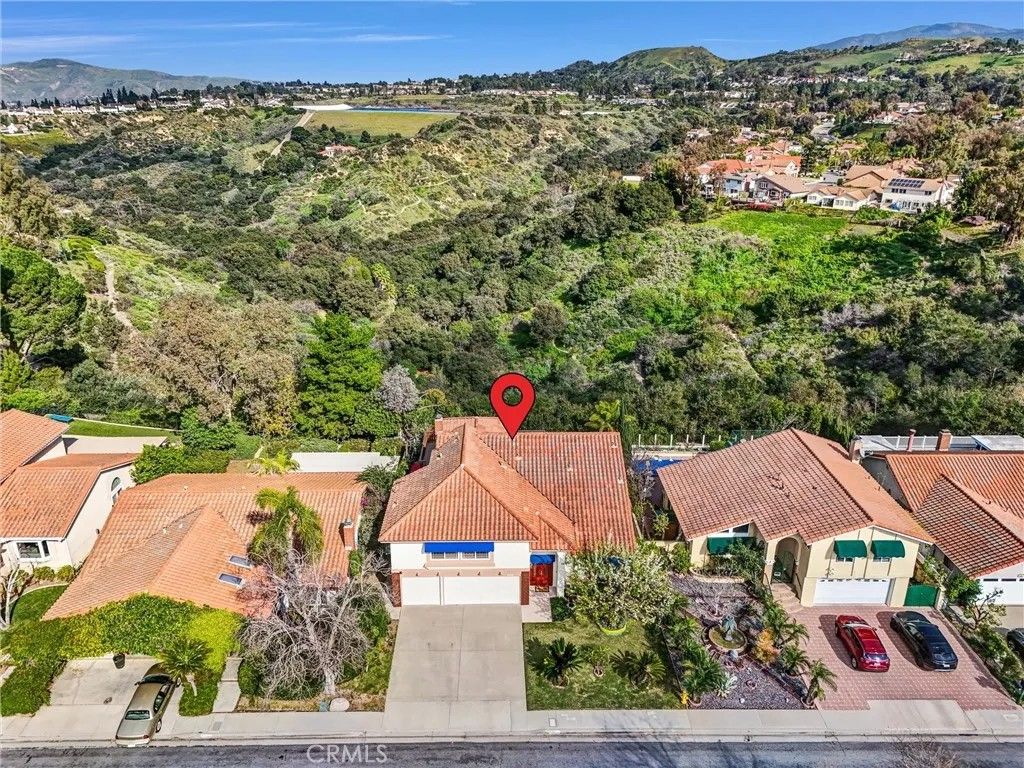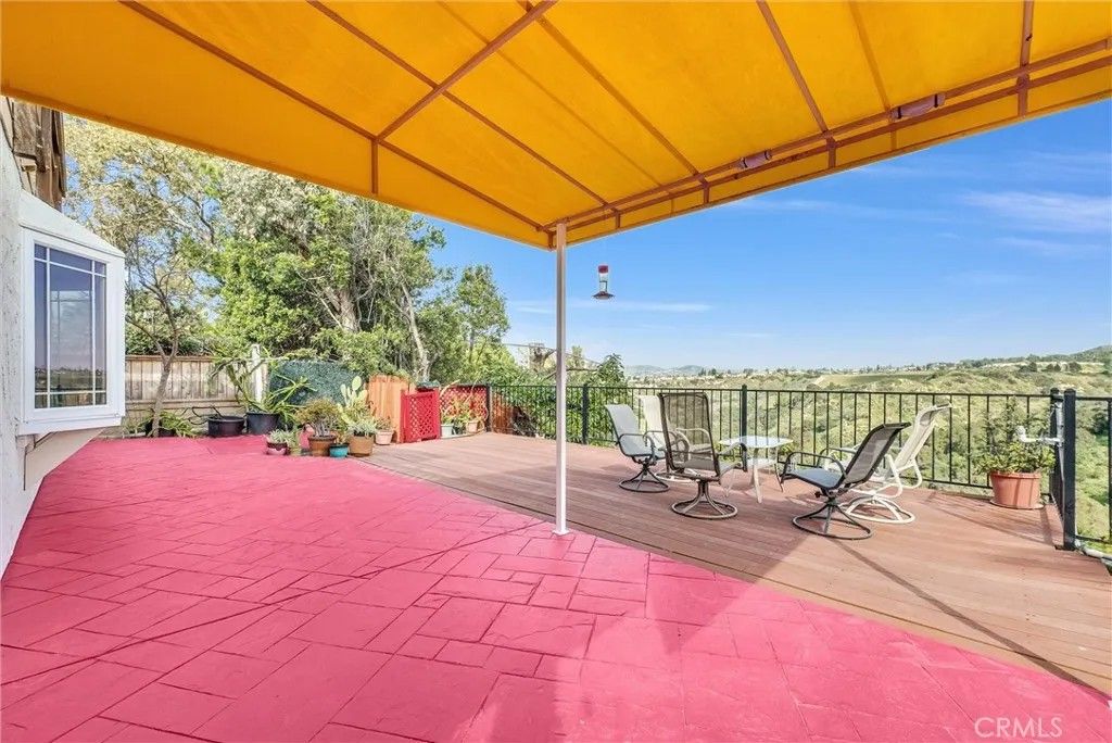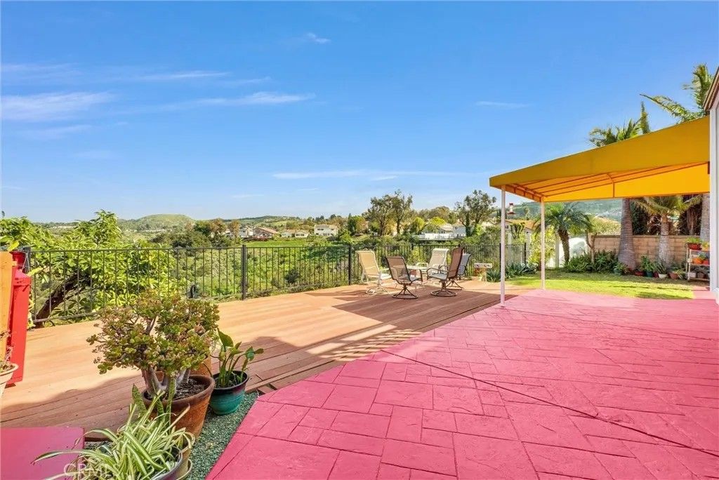 This expansive Anaheim Hills residence offers 45 bedrooms and 4 bathrooms, set in a quiet no-HOA enclave with no rear neighbors and breathtaking panoramic views of the canyon, mountains, and nature reserve. Enjoy peaceful sunrises, exceptional privacy, and a highly desirable hillside setting. Designed for entertaining and everyday comfort, the home features a large great room ideal for a home theater, two wet bars, seamless indoor-outdoor living, a wrap-around view deck, multiple patios, indoor and outdoor BBQ areas, and a private spa retreat. The flexible layout includes a permitted downstairs primary suite with beautiful views, a second primary bedroom upstairs, and two office spacesperfect for multi-generational living or working from home. Bright living areas capture natural light and scenic outlooks throughout. Additional highlights include low-maintenance landscaping, automatic attic ventilation, extra storage shed, built-in garage cabinetry, newer roof, updated HVAC and water heater, water softener and filtration system, and direct access toward canyon trails. Layout note: Tax records reflect 4 bedrooms and 3 bathrooms; the home now offers 4 bathrooms by permit, with a potential 5th bedroom conversion without permits. Buyer to verify. A rare opportunity to own a private view home offering space, flexibility, and tranquil Anaheim Hills living.