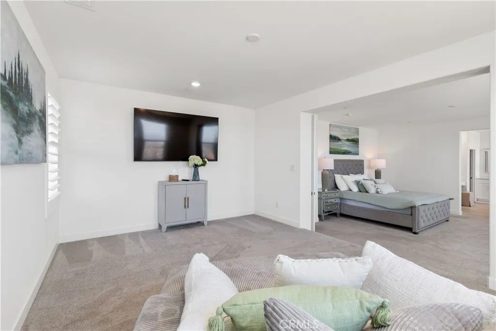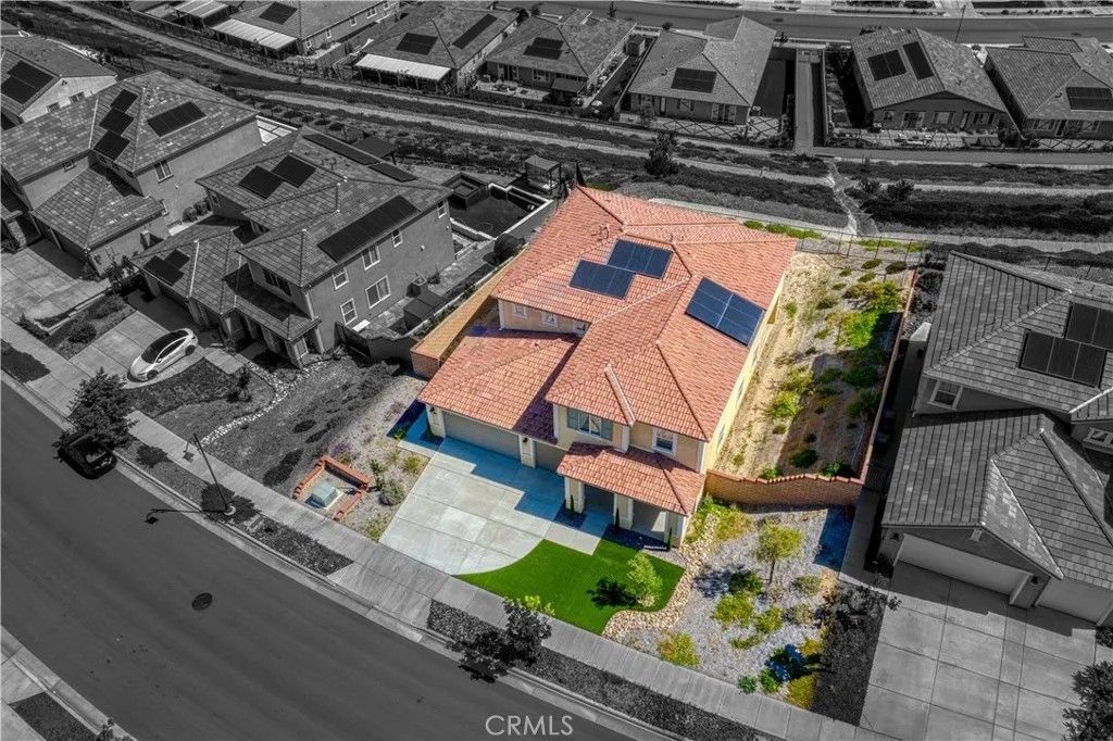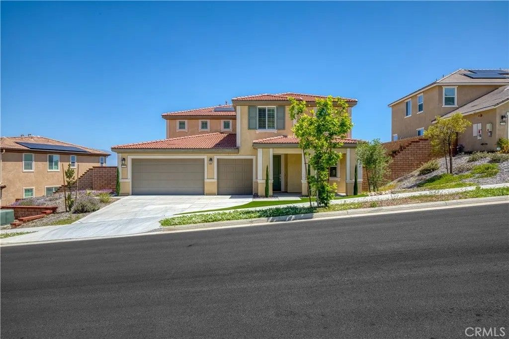 Welcome to your new haven in the prestigious Sierra Bella Community! This breathtaking residence overlooks the picturesque Inland Empire, offers the ultimate blend of luxury, comfort, and convenience. With five generous bedrooms (1 down, addl flex room down, 4 up) and three elegant bathrooms, this stunning 3,912 sq. ft. of thoughtfully designed for both relaxation and modern living. The owner's suite is a tranquil escape, featuring a cozy sitting area where you can unwind in peace. The gourmet kitchen is a chef's paradise, outfitted with stainless steel appliances and an expansive pantry to inspire your culinary adventures. A spacious, well-equipped laundry room adds ease to your daily routine, while a versatile flex room can serve as a home office, gym, playroom, or even a sixth bedroom, perfectly adapting to your lifestyle. The open-concept living area, drenched in natural light, creates an inviting space perfect for cherished family moments and lively entertaining, where laughter and warmth fill the air. Breathtaking mountain and city views grace every corner of the home, bringing the beauty of nature inside. Equipped with smart home technology, including smart appliances, a thermostat, USB outlets throughout, blending convenience with security. The three-car garage offers ample space for your vehicles topping it off with EV charging station. Energy efficiency is at the forefront, with a fully paid off solar system, promoting a sustainable lifestyle. With a lot size of 8,712 square feet, there's plenty of room to add a pool and spa. The backyard is a canvas for your imagination, ready to transform to become your personal sanctuary. Conveniently situated near major freeways with easy access at Green River and Serfas Club, this home is just minutes from Orange County. The community features two parks and nearby hiking trails, offering a perfect blend of adventure and tranquility thoughtfully crafted for your lifestyle. From breathtaking views and spacious living areas in a gated community, this is more than just a houseit's a place where cherished memories will unfold. Dont miss the opportunity to make it yours and embrace the lifestyle youve always dreamed of!
