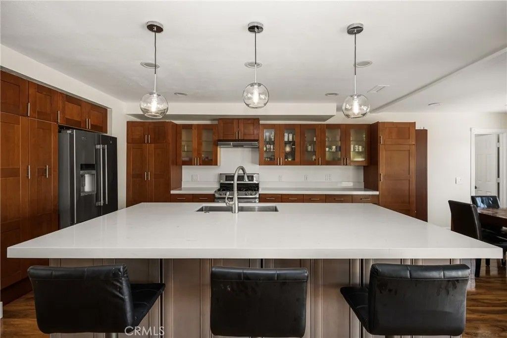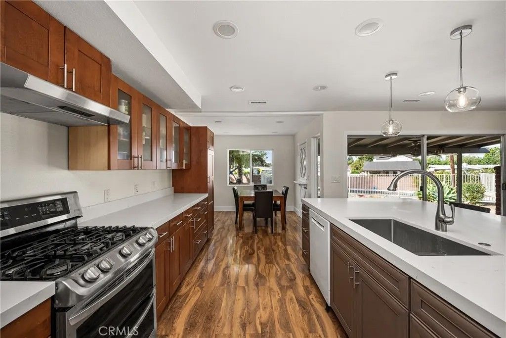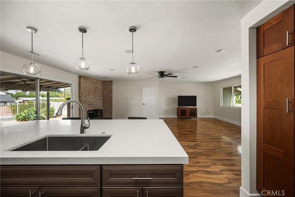 Welcome to 1532 Rainbow Drive, ideally situated in one of the most sought-after neighborhoods in North Tustin. Tucked away on a quiet cul-de-sac, this exceptional property offers privacy, space, and incredible potential on one of the largest parcels in the community boasting the second biggest lot in the entire neighborhood at an expansive 15,380 square feet. This 3-bedroom, 2-bathroom home features a spacious open floor plan designed for comfortable living and effortless entertaining. The kitchen flows seamlessly into the living room, creating a bright and inviting gathering space centered around a charming whitewashed brick fireplace. A large island with brand-new quartz countertops anchors the kitchen, offering both style and functionality. Freshly updated with brand-new interior and exterior paint, the home feels crisp, modern, and move-in ready. An added bonus is the rear addition, which includes an additional bedroom and bathroom not included in the square footage ideal for guests, extended family, or a private office space. The primary suite is a peaceful retreat, highlighted by elegant French doors that open directly to the backyard. Step outside to your own private oasis featuring a sparkling pool, perfect for relaxing afternoons or entertaining family and friends. With its expansive lot size, cul-de-sac location, and desirable setting, this property offers a rare opportunity to own one of the premier homes in the neighborhood. Located near Award Winning Tustin Unified Schools.