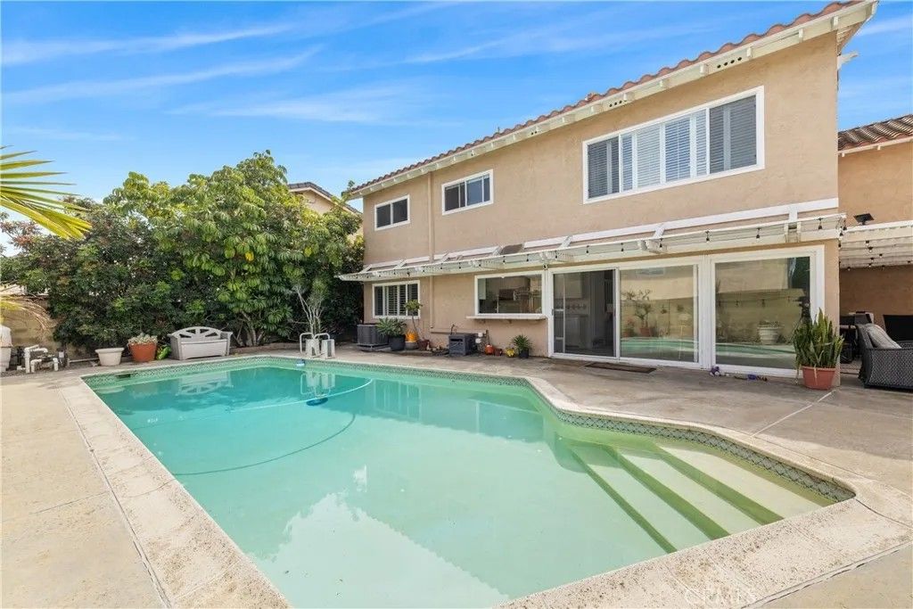 Ideally located on a quiet Cul-de-sac, this move-in ready 5-bedroom, 2.5-bath Larwin home offers approximately 2,600 sq ft of updated living space in a highly sought-after neighborhood, featuring top-rated schools including Landell Elementary, Lexington Jr. High, and Oxford Academy.The home's charming curb appeal will immediately catch your eye. From the drought friendly landscaping, to the inviting front porch. Thoughtful upgrades include smooth, retextured ceilings with recessed lighting, new vinyl flooring upstairs, ceiling fans, new A/C pump, electrical panel, and solar panels (leased). Wall-mounted outlets create a clean, modern look throughout. The expansive bonus room above the garage is fully renovated, offering flexibility as a 5th bedroom, media room, or office. All the bedrooms are sizable. The Primary bedroom is a true Primary Suite. Offering an extra large bedroom, walk-in closet, and an ensuite bathroom. Enjoy seamless indoor-outdoor living with sliders to a pergola-covered patio and private backyard with a large Pool, perfect for entertaining. Additional highlights include Spanish tile roof, Dual-pane windows, Copper Plumbing, and a 3-car garage. Walking distance to Landell Elementary, ability to test to the nationally ranked Oxford Academy, close to amazing restaurants, shops like Trader Joe's, Costco, Mistuwa to name a few. A rare opportunity to enjoy the best of Cypress living - An exceptional location and a beautiful home come together in a truly special neighborhood. Welcome to 4395 Avenida Carmel and Welcome Home!