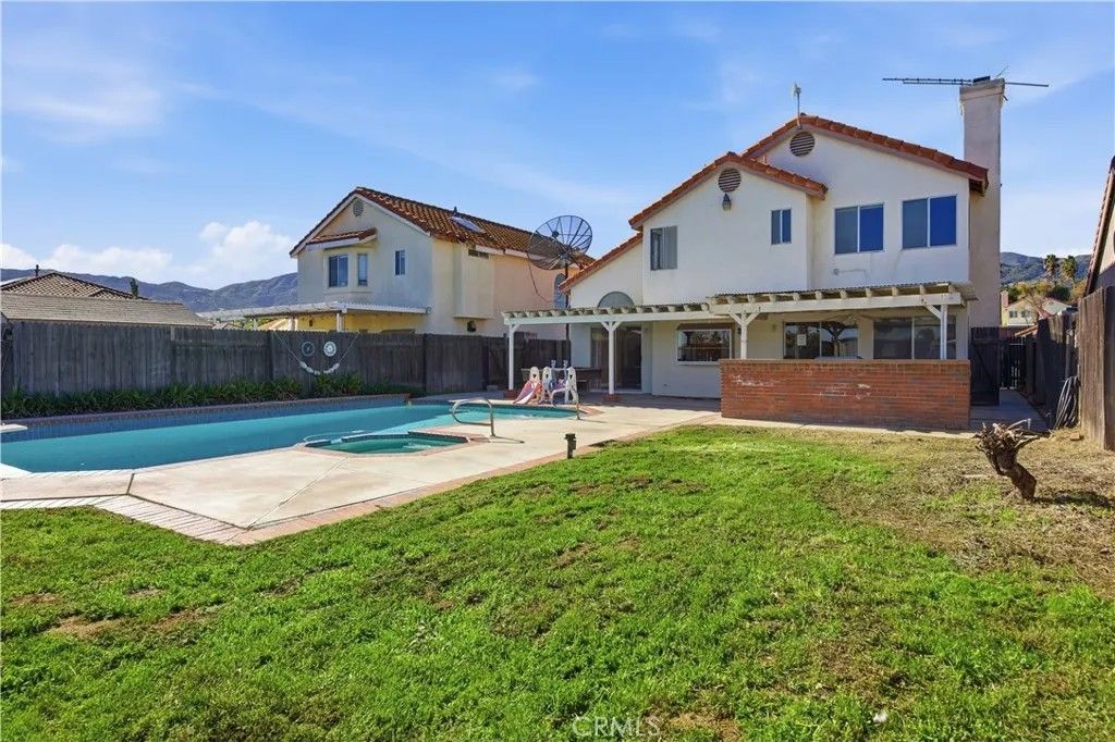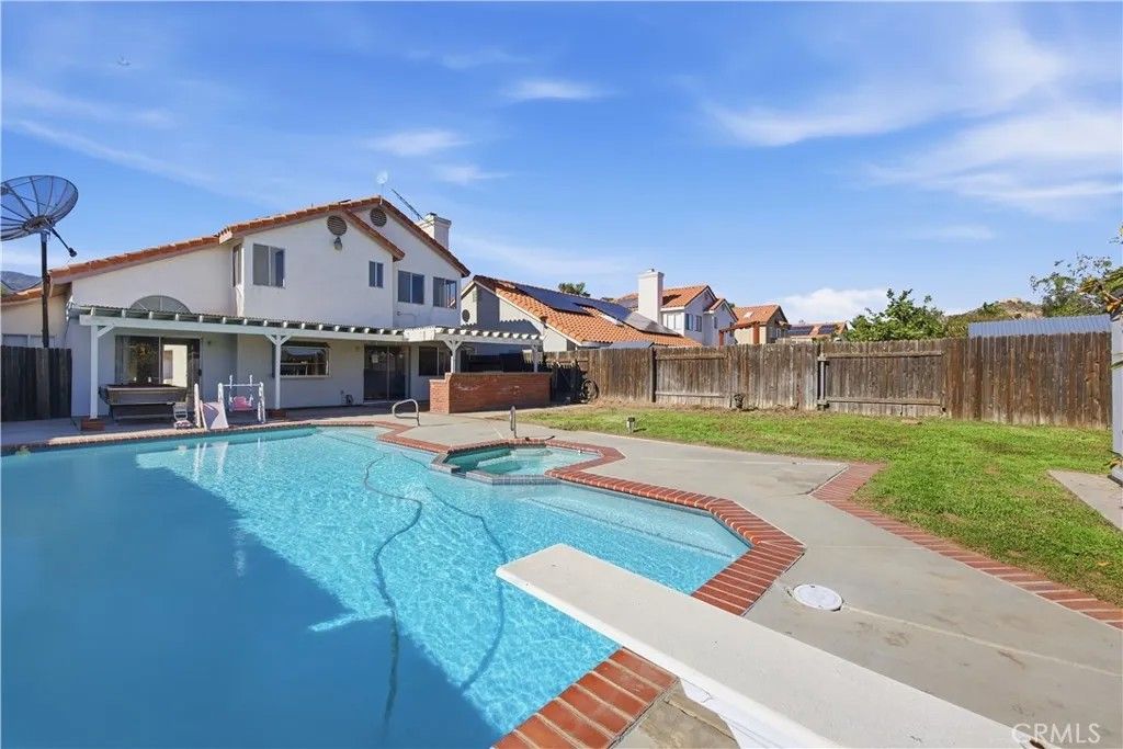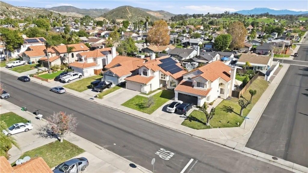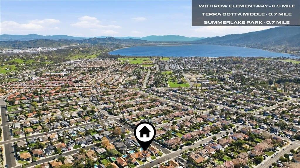 Welcome to this charming spacious 4-Bedrooms, 3 Full bath with Olympic Size POOL & PAID-OFF SOLAR Home nestled in the highly sought-after City of Lake Elsinore, known for its Top-Rated Schools and Safe, Family-Friendly neighborhoods, making it perfect for families of all sizes. All New Central HVAC System, Energy saver variable speed Pool Pump, Electric Water Heater, Fresh Interior & Exterior Paint, Mix of Carpet, Tile & Laminate floor throughout. This home also has A whole house fan, Ceiling fans in rooms- an added Bonus on top of the Central Cooling & Heating System! Attached double car garage has 240v Fast Charging option, EV Plug-in-Ready Outlet to charge all current Electric Vehicles on the market. Excellent choice for Current & Future Electric Vehicle Owners Strategically designed 1 bedroom & 1 full bathroom with double doors on the first floor, perfect for guests or a home office. The ample sized primary suite provides views of the lush backyard- Private Pool & Mountain view! The open floor plan boasts vaulted ceilings throughout the living and dining area. The spacious family room, complete with fireplace, flows seamlessly into a generously sized area, ideal for family gatherings. Walk through the sliding glass door from the family room, you are greeted by a very large sized covered patio structure with ceiling fan, a sparkling pool, BBQ area with sink to entertain large crowd on the weekends and to enjoy pool party on summer days with outdoor misting system to cool the entire patio area. Enjoy breathtaking view of the Mountain from the Front and Back of the home. Some Fruit Trees are in the backyard and front yard of the Home. Low Property Tax, NO MELLO ROOS & NO HOA! 28 Panels SOLAR that is PAID OFF! NO LEASE to Deal with!! A wonderful opportunity for first-time buyers. Dont miss the opportunity to make this charming residence your forever home!