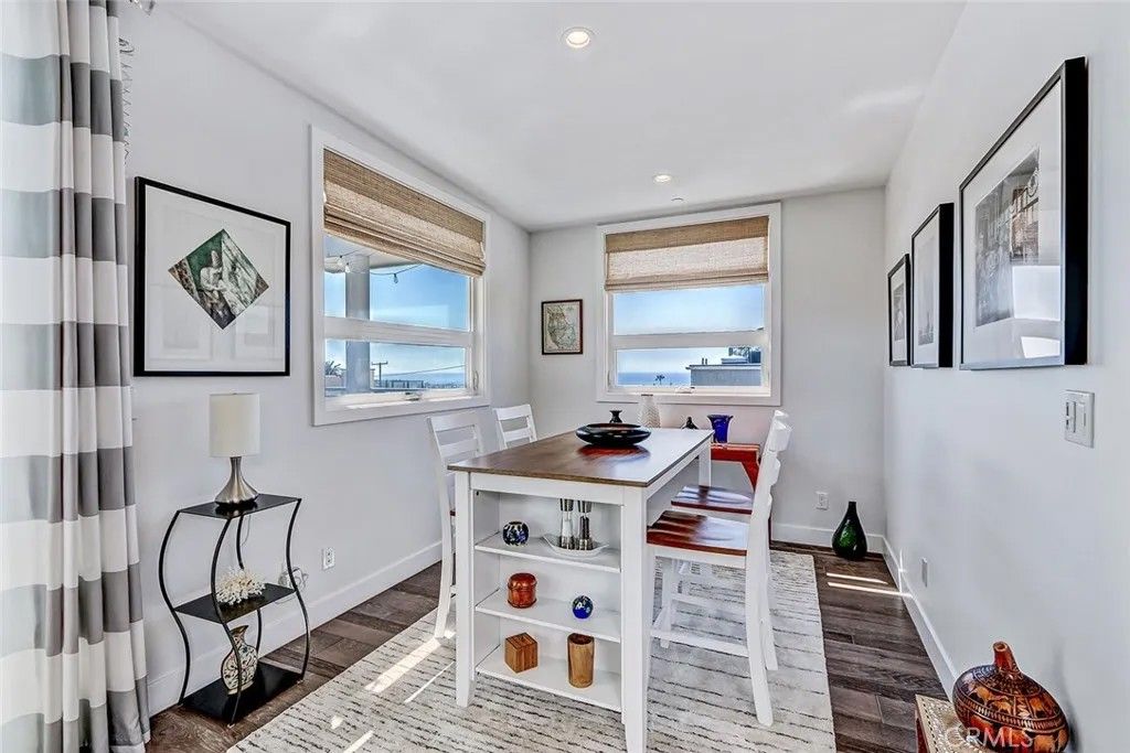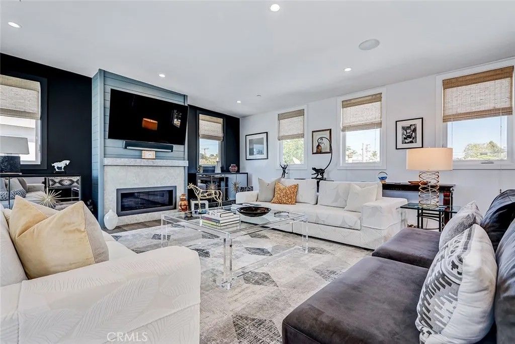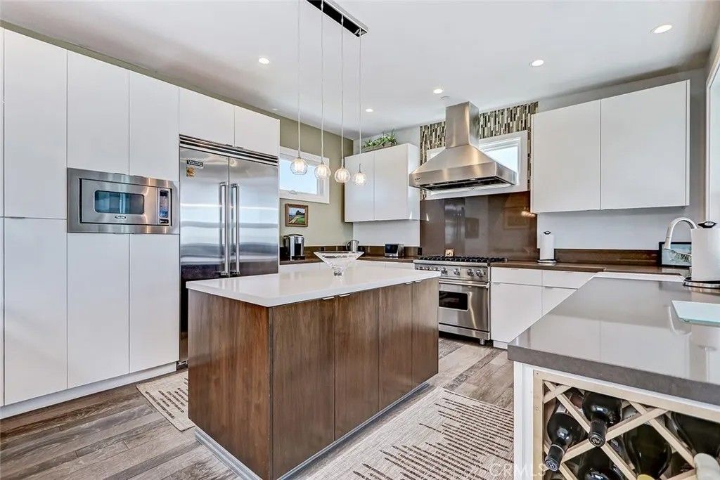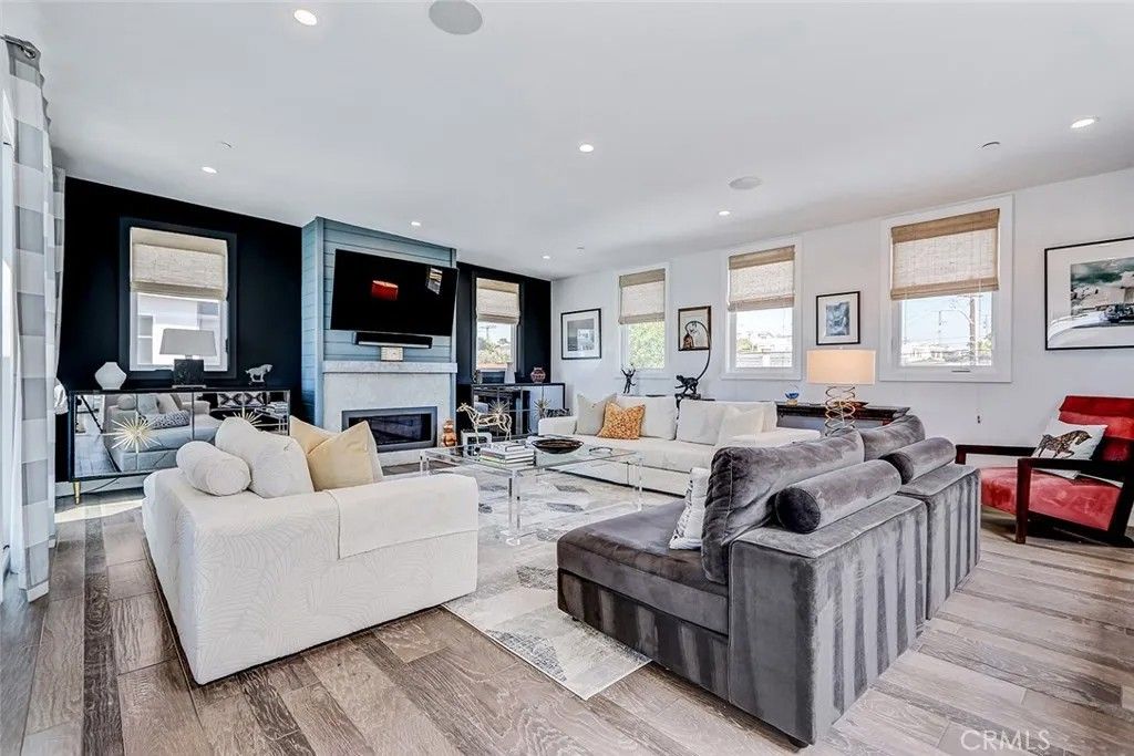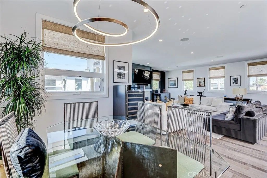 Set within a highly desired coastal setting in Hermosa Beach, this fully customized rear townhome delivers refined beach living with space, style, and sweeping ocean views from the interior. Thoughtfully designed to live like a single-family home, the property offers 4 bedrooms, 3.5 bathrooms, and approximately 3,200 square feet of well-planned interiors that balance comfort with architectural sophistication. Sunlight pours through oversized windows, highlighting wide-plank hardwood floors and curated designer finishes that create a calm, inviting atmosphere throughout. The main living level is positioned to capture ocean breezes and elevated views, seamlessly connecting to multiple outdoor decksideal for open-air dining, relaxing afternoons, and evening sunsets. At the center of the home, the chefs kitchen is both striking and functional, featuring premium Viking appliances, quartz countertops, and intelligently integrated storage that supports both everyday living and effortless entertaining. The flexible floor plan places major living spaces upstairs for maximum light and outlooks, with mid-level bedrooms complemented by a media lounge and newly updated flooring. A private primary suite is enhanced by upgraded sound insulation, offering a serene retreat. The lower level includes a full guest suite and additional living area, providing versatility for work-from-home use, visitors, or extended stays. Notable upgrades include custom closets and custom wall finishes, a whole house filtration system, a function built-in cabinets in the two-car garage. Architectural quality, indooroutdoor flow, and coastal comfort come together in a home that is both stylish and exceptionally well maintained, offering a rare blend of design, functionality, views, and location near the shoreline.
