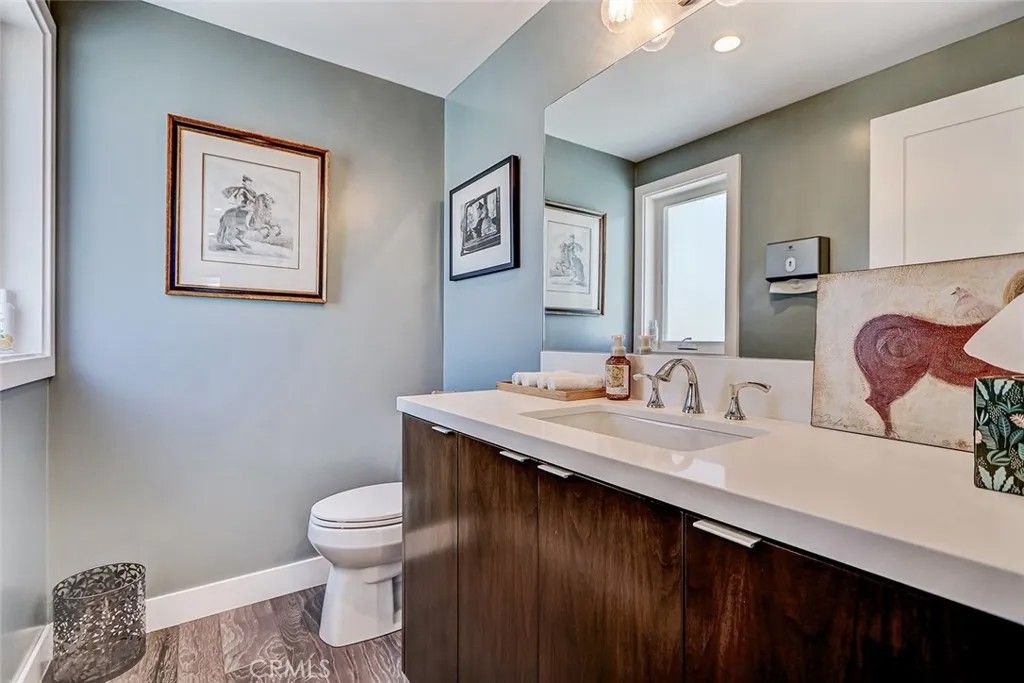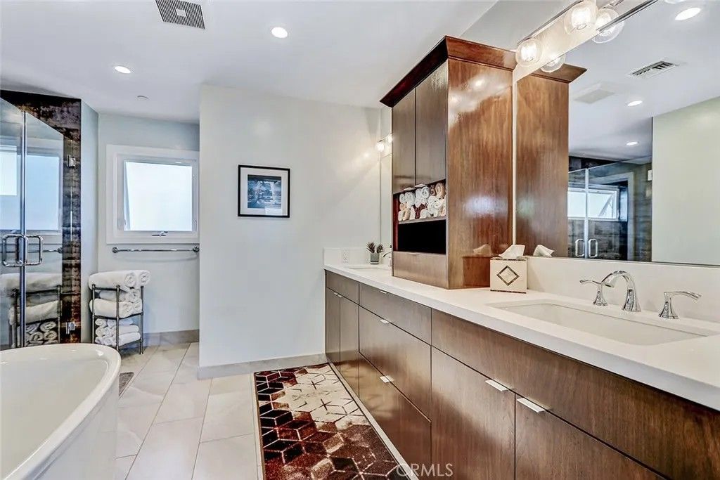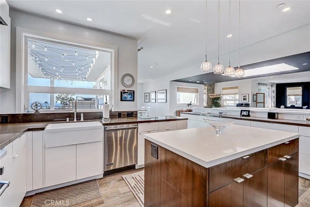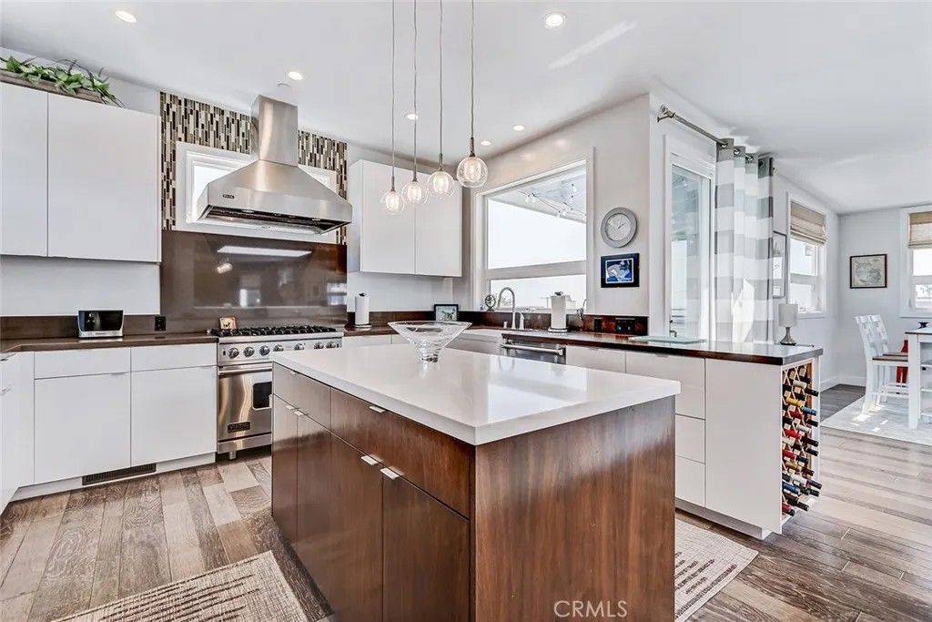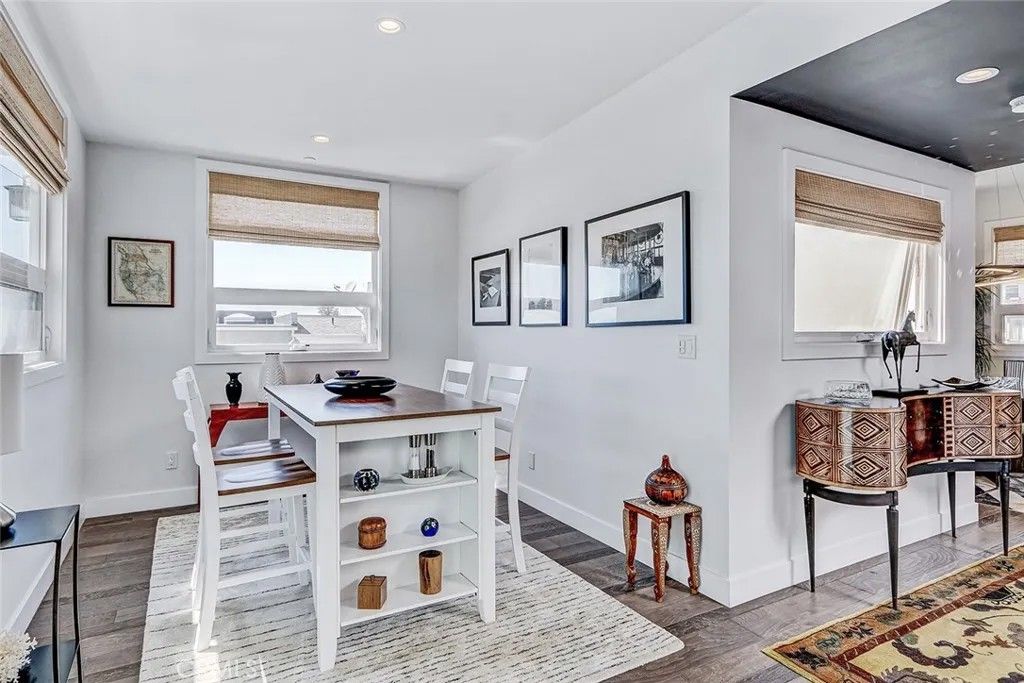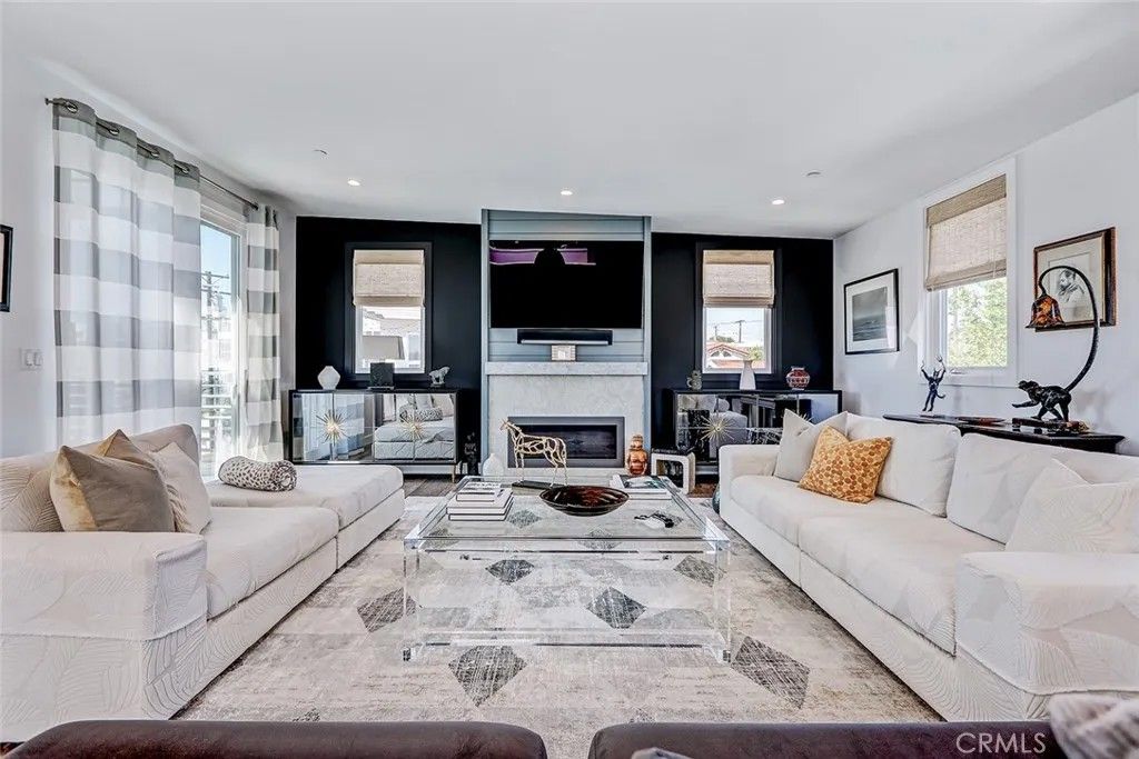 Set within a highly desired coastal setting in Hermosa Beach, this fully customized rear townhome delivers refined beach living with space, style, and sweeping ocean views from the interior. Thoughtfully designed to live like a single-family home, the property offers 4 bedrooms, 3.5 bathrooms, and approximately 3,200 square feet of well-planned interiors that balance comfort with architectural sophistication. Sunlight pours through oversized windows, highlighting wide-plank hardwood floors and curated designer finishes that create a calm, inviting atmosphere throughout. The main living level is positioned to capture ocean breezes and elevated views, seamlessly connecting to multiple outdoor decksideal for open-air dining, relaxing afternoons, and evening sunsets. At the center of the home, the chefs kitchen is both striking and functional, featuring premium Viking appliances, quartz countertops, and intelligently integrated storage that supports both everyday living and effortless entertaining. The flexible floor plan places major living spaces upstairs for maximum light and outlooks, with mid-level bedrooms complemented by a media lounge and newly updated flooring. A private primary suite is enhanced by upgraded sound insulation, offering a serene retreat. The lower level includes a full guest suite and additional living area, providing versatility for work-from-home use, visitors, or extended stays. Notable upgrades include custom closets and custom wall finishes, a whole house filtration system, a function built-in cabinets in the two-car garage. Architectural quality, indooroutdoor flow, and coastal comfort come together in a home that is both stylish and exceptionally well maintained, offering a rare blend of design, functionality, views, and location near the shoreline.
