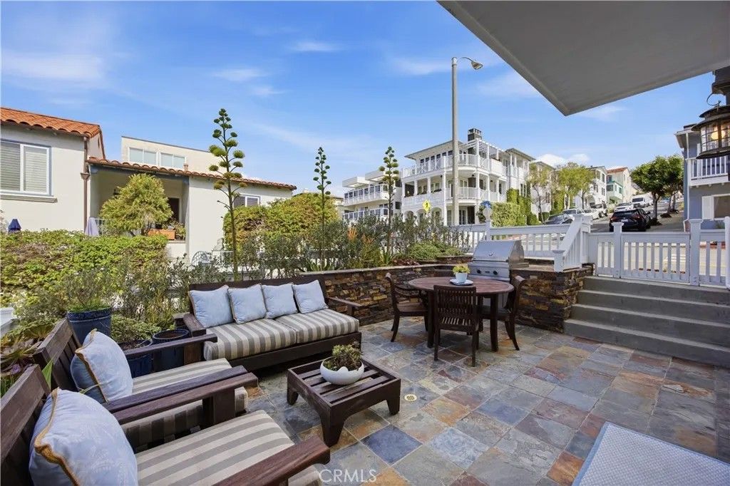 Rare Detached Townhome | Corner Walk Street | Ocean Views from Every Level Listen to the waves and take in white-water views from this rarely available detached 3-bedroom, 3.5-bath Sand Section townhome, ideally located on a corner walk street in the coveted first 100 block of Manhattan Beach. Built in 2008, this Coastal Cape Codinspired residence offers 1,720 sq ft of living space on a 2,697 sq ft lot with no common walls, delivering the privacy and feel of a single-family home steps from the sand. Designed to embrace its beachside setting, the home captures ocean views from every level, including the main living space, multiple balconies, and the primary suite. One balcony offers views of the Manhattan Beach Pier, creating the perfect backdrop for sunset gatherings and annual fireworks views. Inside, timeless coastal design meets quality craftsmanship. Hardwood floors throughout, vaulted and beamed ceilings in the bedrooms, and an inviting living room fireplace. The open-concept living level flows seamlessly into a chefs kitchen outfitted with Sub-Zero and Wolf appliances, classic cabinetry, a farmhouse sink, and generous prep space, ideal for entertaining after a day at the beach. Radiant heating adds year-round comfort. Outdoor living is equally compelling. A walk street, lush patio with BBQ area, and ocean views offers a private setting for al fresco dining, lounging, or rinsing off after surf sessions. Two-car garage parking and a large attached storage area provide the practicality rarely found this close to the shoreline. Perfectly positioned on a quieter North End stretch, yet moments from local favorites. Grab breakfast at a Local Yolk, enjoy mexican food at Panchos, take a class at Sol Seek Yoga, or stroll into downtown Manhattan Beach. With the beach a short block away, this home delivers the ultimate blend of relaxation, walkability, and coastal culture. A rare opportunity to own a detached Sand Section residence with views, privacy, and an iconic walk street address.
