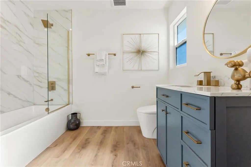 Welcome to 2110 253rd Place, a fully reimagined single-story home in the heart of Lomita, offering modern design, high-end finishes, and a seamless indoor-outdoor lifestyle. This 4-bedroom, 2-bath residence spans approximately 2,510 square feet of living space and has been extensively renovated with a clean, contemporary aesthetic throughout. The home opens into a bright, open concept living space featuring wide plank flooring, recessed lighting, and vaulted ceilings that create an airy, expansive feel. The spacious living, dining, and kitchen areas come together in one grand, light-filled space, that is ideal for both everyday living and entertaining. Large windows and bay windows flood the home with natural sunlight, while wide hallways enhance the open flow. At the center of the home is a designer kitchen featuring sleek cabinetry, premium quartz countertops, a large center island, a striking gold farmhouse sink and fixtures throughout. A full suite of Samsung Bespoke appliances completes the space, blending style and functionality. The primary suite serves as a true sanctuary, offering generous space, ample closet storage, and a beautifully designed en-suite bathroom with an expansive walk-in shower and elegant finishes. Additional bedrooms are well-sized and thoughtfully positioned and overlook the charming brick-lined side patio, perfect for outdoor lounging, dining, or creating a private garden retreat. This home has undergone a comprehensive gut remodel with nearly everything rebuilt, featuring brand-new electrical, plumbing, HVAC system, all-electric water heater, roof, structural shear walls, and portions of new foundation. Additionally, the property includes all-new sewer and water line connections both into and throughout the home, providing long-term reliability and peace of mind. While select original framing was retained, the home lives and feels like new construction throughout. A separate laundry closet adds convenience, and the attached 2-car garage includes an EV charger. Outside, enjoy ample yard space surrounding the home, enhanced by brand-new vinyl fencing along the property lines for added privacy and a clean, modern look. The outdoor areas offer flexibility for entertaining or relaxing. Located on a quiet residential street near Torrance Crossroads shopping center, coffee shops, dining, and major thoroughfares, this turnkey property delivers modern design, quality construction, and an exceptional South Bay lifestyle.