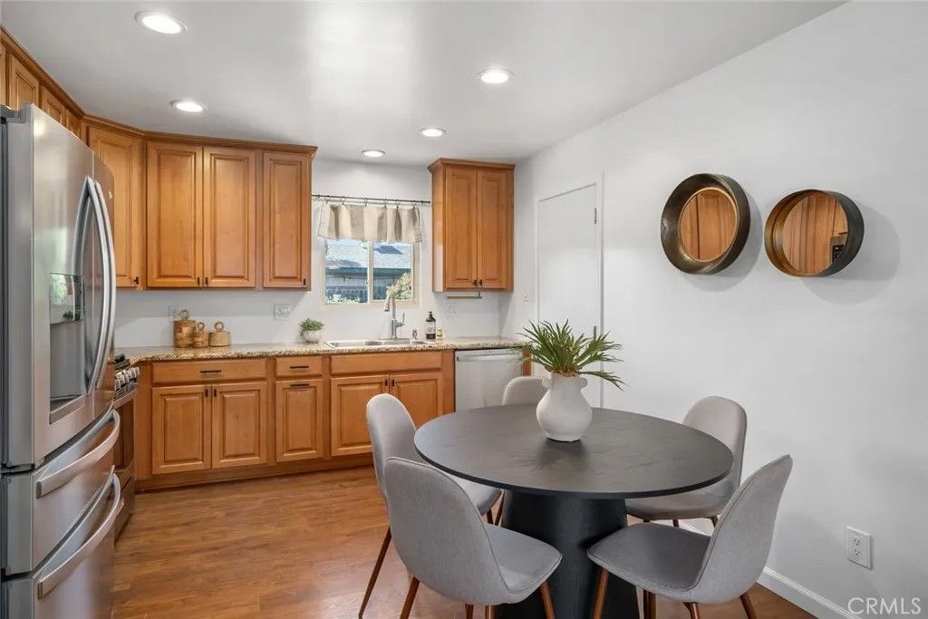 Move-in ready and full of charm, this 3-bedroom home offers stylish comfort and a functional single-level layout. Fresh interior paint, brand new carpet, and dual-paned windows throughout make this home both inviting and efficient. The kitchen features newer stainless steel appliances and opens seamlessly to the living area. A separate laundry room and an attached single-car garage add everyday convenience. The thoughtfully designed bathroom includes a unique split-access layout, giving the primary bedroom private access to its own vanity and toilet. This connects to a shared tub/shower, which then leads to a separate guest vanity and toilet with access from the hallway. Step outside to enjoy the spacious and beautifully landscaped backyard, complete with a concrete patio for outdoor dining, a lush lawn, mature plants, raised planter bed and a large shed. The front yard features a modern wood fence, drought-tolerant landscaping, and standout curb appeal. Located close to beaches and the charming Village of Arroyo Grande, this home offers a desirable Central Coast lifestyle. Whether you're a first-time buyer, downsizing, or searching for an investment property, this cute and comfortable home is a must-see.