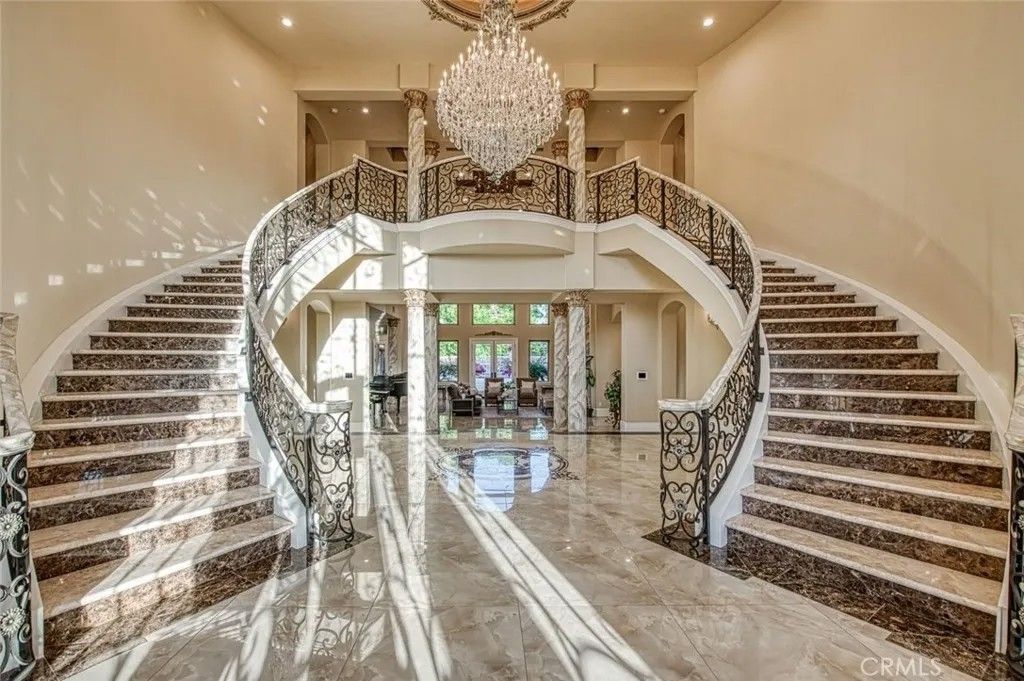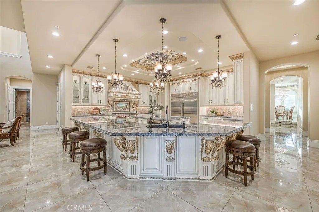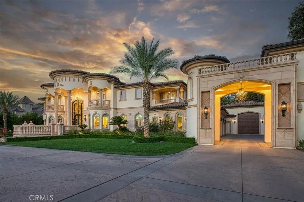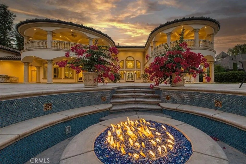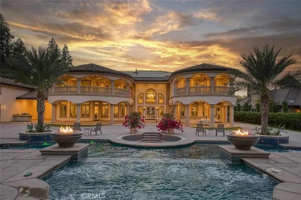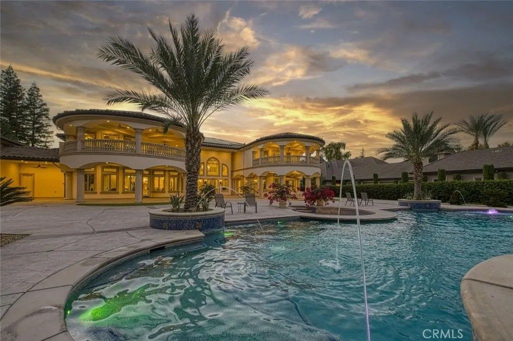 Welcome to one of Fresno's most extraordinary estates, a 10,000+ square-foot residence that epitomizes luxury living along the iconic Van Ness Boulevard. Upon entering through the grand double doors, you are greeted by a stunning 10-foot custom medallion of laser-cut flooring, setting the tone for the home's exquisite craftsmanship and timeless elegance. Designed for both grand entertaining and intimate living, this estate boasts five en-suite bedrooms and eight bathrooms, each meticulously appointed. The formal dining room captivates with crown molding, arched windows, and a breathtaking chandelier. The chef's kitchen is a culinary masterpiece, featuring a Wolf range, double ovens, dual dishwashers, a Sub-Zero refrigerator and freezer, a food warmer, and rare Blue Bahia granite imported from Brazil.The residence offers both a formal living room and a great room, a stately library with custom crown molding and gallery lighting, and a home theater and game room with a circular bar and built-in ice maker. This Smart Home is equipped with 12 integrated iPads controlling lighting, sound, and security throughout. Artistry abounds with hand-troweled walls, custom ceilings, an elevator, and marble stairs accented by Emperador risers and a bespoke wrought-iron railing. The primary suite is a private sanctuary, featuring a balcony, fireplace, jetted tub, glass vessel sinks, and a custom walk-in closet with built-ins. Each additional bedroom includes its own private balcony.Outdoors, a resort-style oasis awaits, featuring a sparkling pool with water features and a light show, a 15-person spa, a step-down firepit, and an outdoor kitchen with rough-edge granite counters. Over 7,000 square feet of stamped concrete, artificial turf, mature trees with drip irrigation, and meticulously curated landscaping complete this remarkable space.Additional amenities include an owned solar system with 80 panels, an electronic chandelier-lowering system, five fireplaces, a butler's pantry, a wine cellar, a mudroom, a storage room, and a four-car finished garage with five doors and dedicated RV parking (accommodating up to eight vehicles). Every inch of this property exudes luxury, artistry, and comfort, crafted for those who demand the finest in design and living.