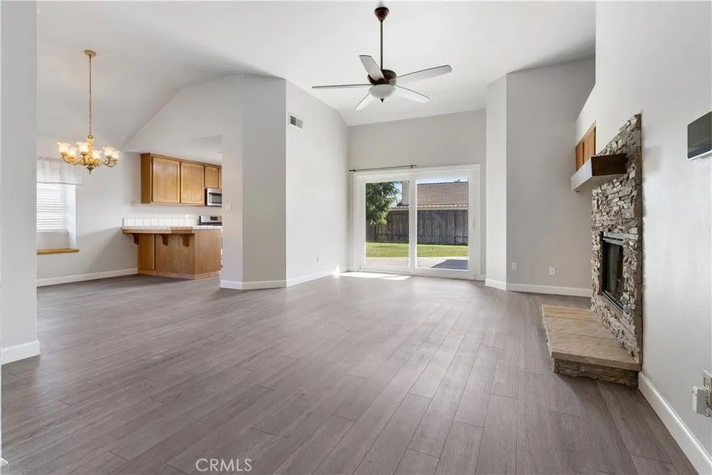 Welcome to this beautifully maintained 3-bedroom, 2-bath home featuring a highly desirable great room floor plan designed for comfortable living and effortless entertaining. The open-concept layout creates a seamless flow between the living, dining, and kitchen areas, all highlighted by updated plank flooring that adds warmth and modern appeal throughout. The spacious kitchen offers abundant cabinetry and storage, making it both functional and inviting perfect for gathering with family and friends. This home has been thoughtfully upgraded with new windows, fresh interior and exterior paint, and a newer HVAC unit, providing comfort and energy efficiency year-round. Even better the home includes leased solar, helping keep utility costs down and adding long-term value. The primary suite offers a relaxing retreat, complete with a unique cedar-lined master closet, adding both charm and practicality. Two additional bedrooms provide flexibility for guests, family, or a home office.