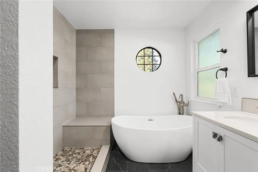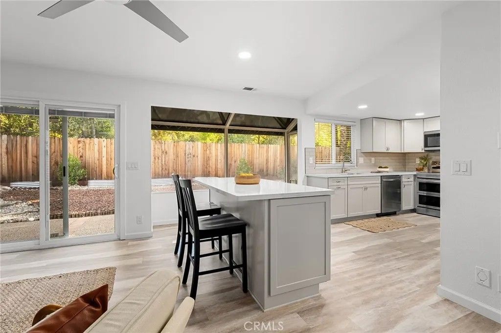 Stunning Remodeled 4 Bedroom, 2.5 Bath Home with OWNED Solar and BONUS Room! Step inside this beautifully remodeled home and experience a bright, open entryway with vaulted ceilings that make a stunning first impression. This spacious property features 4 bedrooms, 2.5 bathrooms, and a versatile bonus room off the garage that can be used as a home gym, office, or playroom. The layout offers both a living room and a family room, providing plenty of space to relax and entertain. The family room features a cozy brick fireplace, while the separate dining room is ideal for gatherings and celebrations. The fully remodeled kitchen is a showstopper with newer cabinetry, updated lighting, newer appliances, a double sink, and a stylish backsplash, making it perfect for cooking and entertaining. The home also features newer LVP flooring, fresh paint, and ceiling fans throughout, creating a warm and inviting atmosphere. Both bathrooms have been tastefully renovated, including luxurious wetroom-style showers. The primary suite is a true retreat with a soaking tub, dual sink vanities, and a walk-in shower. Generous storage is found throughout the home for added convenience. Energy efficiency is a highlight with owned solar panels, newer windows, a new HVAC system, and a new water heater. Step outside to enjoy the beautifully landscaped front and back yards, a newer redwood fence for privacy, and full gutter protection. Additional upgrades include newer sliding glass doors, updated electrical in the bathrooms, and a spacious two car garage. Every detail has been thoughtfully designed to create a turnkey home that blends modern style with everyday comfort. With its quality updates and inviting spaces, this home is ready for you to move in and enjoy. Don't miss out!
