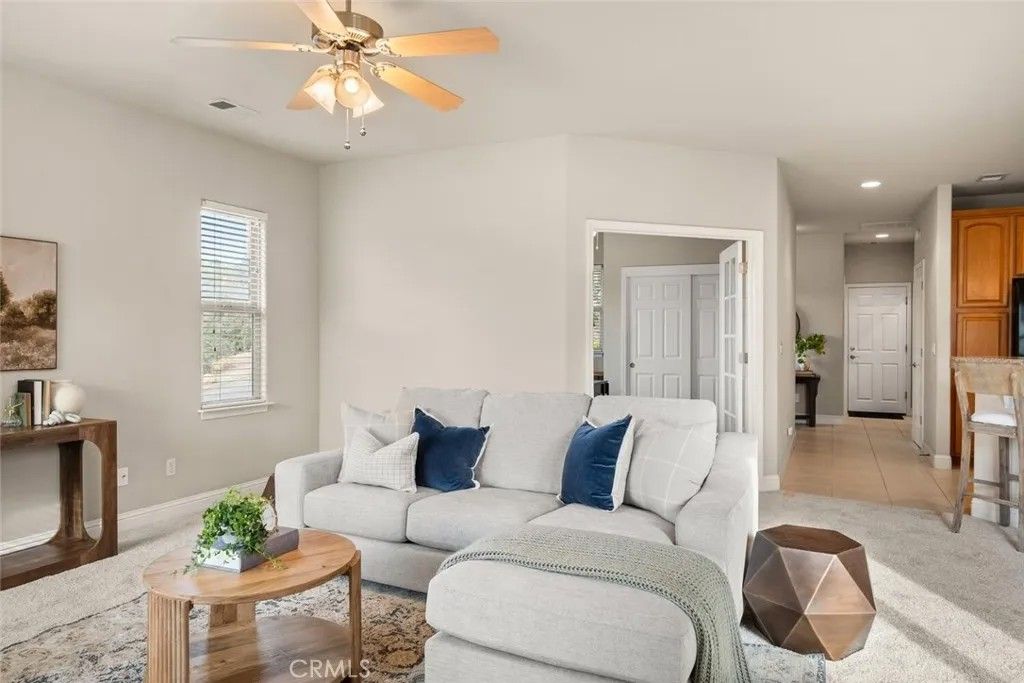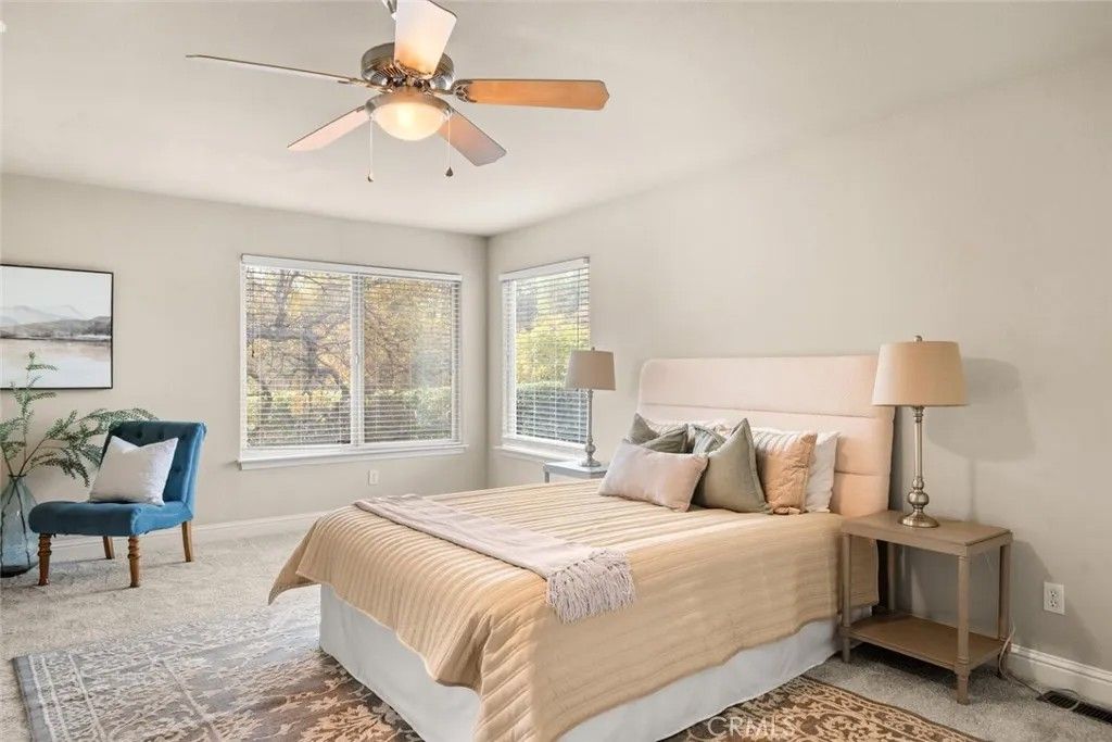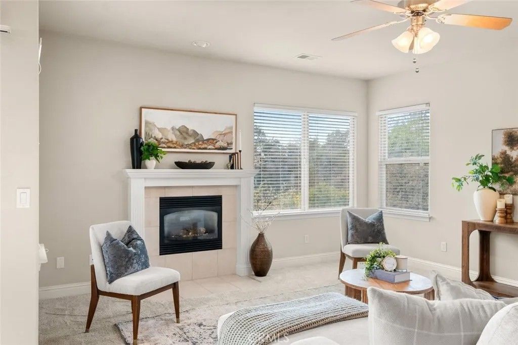Canyon Oaks! Nestled within the highly desirable gated community of Canyon Oaks, this charming 3-bedroom home offers the perfect blend of comfort, style, and modern elegance. Step inside to discover light, neutral tones, abundant natural light from numerous windows showcasing the park-like surroundings, and an inviting open floor plan. The cozy living room with its fireplace sets the stage for relaxing evenings on those cool winter nights. Any home chef will love the beautifully designed kitchen, featuring rich wood cabinetry, granite countertops, updated appliances, a gas range, double oven, and a spacious breakfast bar ideal for casual meals or quick snacks. When its time to unwind, the primary suite provides a true retreat with ample space, a private balcony overlooking the canyon, and a luxurious en suite bathroom complete with dual sinks, a tiled walk-in shower, and a generous walk-in closet. Additional highlights include two guest bedrooms, an indoor laundry room, ceiling fans throughout, new carpet, a second balcony off the dining area perfect for morning coffee by the seasonal creek, a tankless water heater, an owned whole-house water softener, and an attached two-car garage with abundant storage. With its exceptional location, serene views, and long list of upgrades, this Canyon Oaks home offers a lifestyle you wont want to miss!