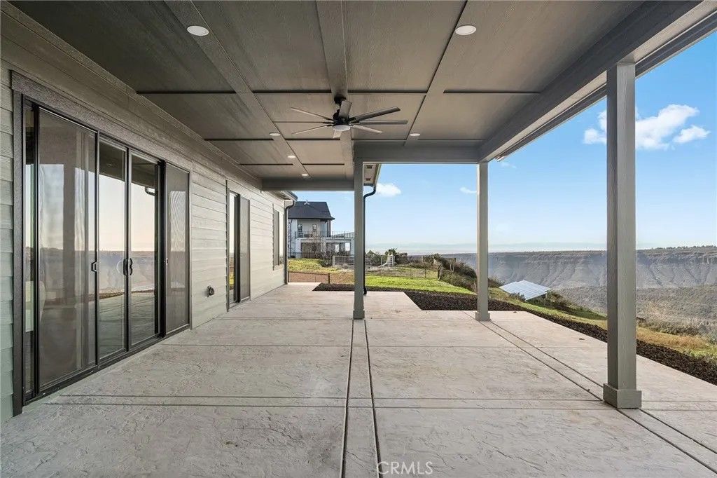 Imagine waking up every day to one of the most incredible canyon views in Paradisea view so rare that only 19 properties in town will ever have it. If youve been searching for a home with a true view, this is the one. Located in one of Paradises most desirable West-side neighborhoods, this home offers a peaceful, mountain-like setting where listings are rarely available. From the moment you arrive, the exterior sets the tone with earthy, natural finishes, a rich dark-green faade, black windows, and stone accents that blend beautifully with the landscape. The three-car garage with striking glass doors adds both style and function. Inside, 10-foot ceilings, abundant natural light, and a thoughtfully designed floorplan create an immediate sense of openness. A large sliding glass door draws your eye straight to the view, seamlessly connecting the main living space to the covered back patio for true indoor-outdoor living. The kitchen is the heart of the home, centered around a 14-foot waterfall islandperfect for gathering and entertaining. A 48 gas range, farmhouse sink overlooking the canyon, spacious pantry, and oversized laundry room with generous storage make everyday living both beautiful and functional. Just off the garage entry, a dedicated mudroom with cabinetry and hooks provides the ideal drop zone, keeping daily essentials organized and the rest of the home clutter-free. The living room is warm and inviting, anchored by a stunning floor-to-ceiling stone fireplace with hearth. This home offers three bedrooms plus a dedicated office, ideal for todays lifestyle. Each bedroom features its own walk-in closet and full en-suite bathroom, offering comfort and privacy. The primary suite is a private retreat with sliding glass doors to the covered patio, a spa-inspired bathroom with dual sinks and vanity area, a soaking tub beneath a large picture window, and a beautifully tiled walk-in shower with dual shower heads. The walk-in closet includes built-in drawers and ample storage. Outside, the covered patio extends the living spaceperfect for entertaining or relaxing while taking in the view. The backyard is thoughtfully terraced and landscaped with hillside plantings and a flat, hydroseeded area below. The front landscaping is natural and inviting. Additional features include RV parking and owned solar. Built by American Dream Construction, a trusted local builder known for quality craftsmanship, don't miss this rare opportunity!