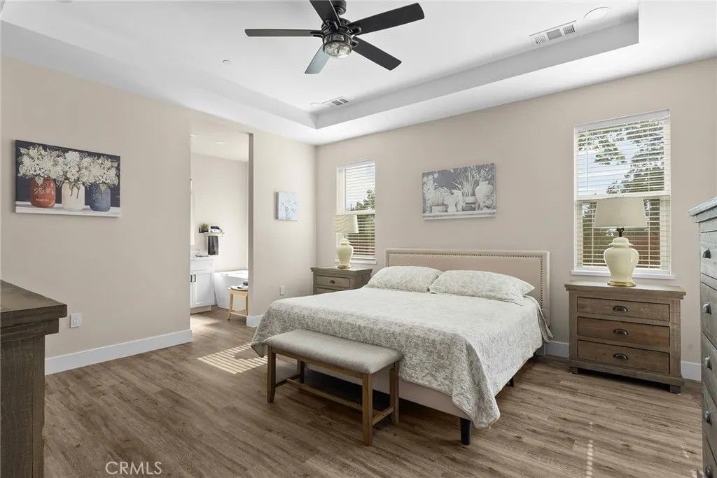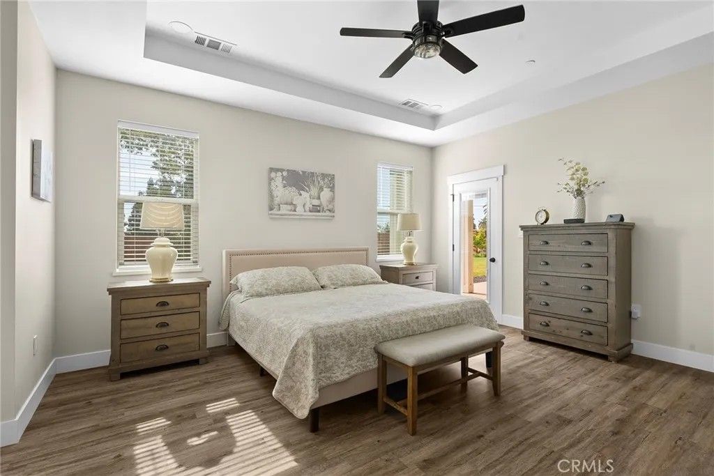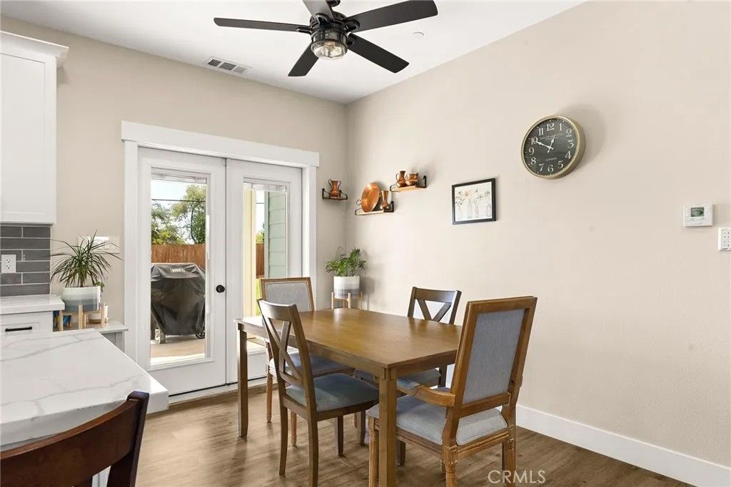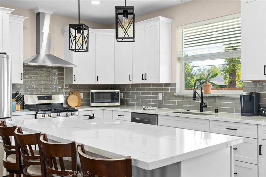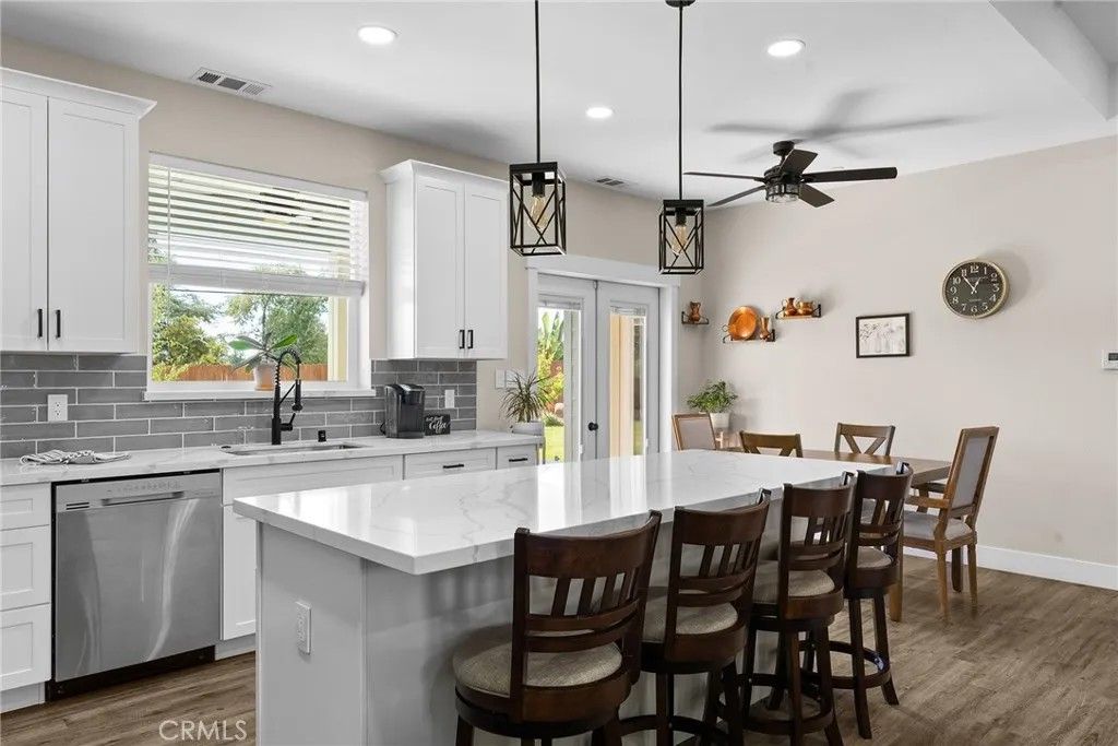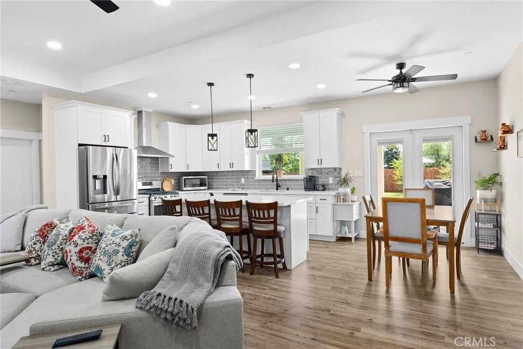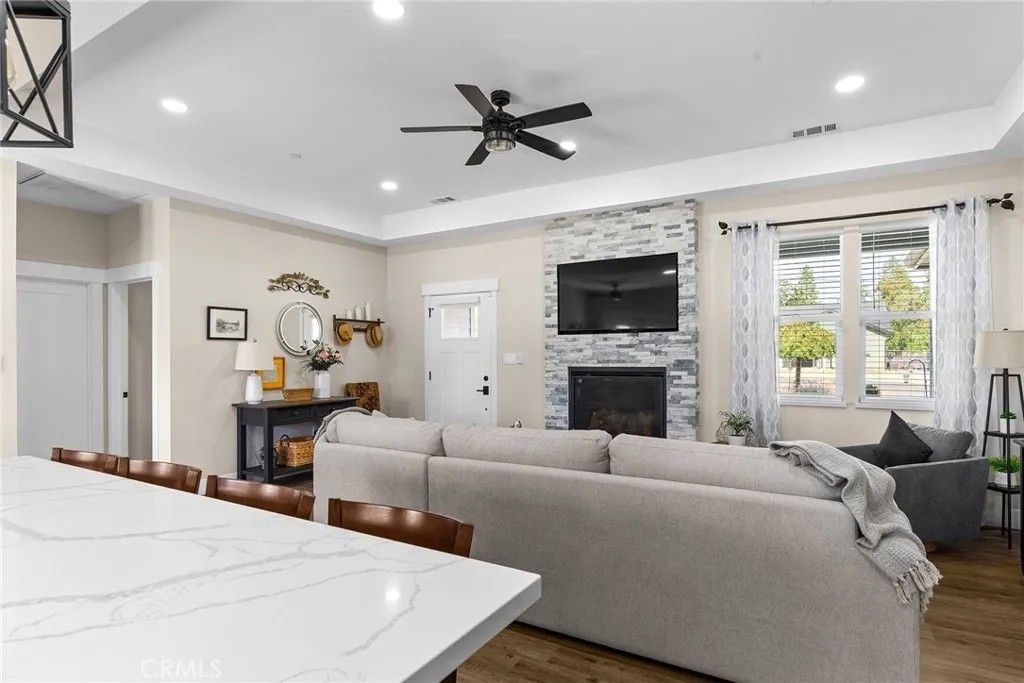 MOVE-IN READY never looked so good! Owned solar, fully landscaped front/back yard and RV parking are just a few of the thoughtful upgrades that make this home as efficient as it is comfortableperfect as you head into the beautiful summer months. Built in 2021 and truly better than new, this property offers completed front and backyard landscaping, including mature citrus trees with Meyer lemon and Mexican lime, full perimeter fencing, and generous gated RV parking. Step inside and immediately feel at home in the spacious open-concept layout. The inviting living area is anchored by a stunning floor-to-ceiling slate hearth fireplace, while the expansive kitchen island creates the perfect gathering space for entertaining and everyday living. The kitchen is beautifully finished with stainless steel appliances, quartz countertops, soft-close cabinetry, and a sink positioned to take in a picture-perfect view of the lush backyard. The dining area opens through French doors to a large, covered patio, creating a seamless indoor-outdoor flow thats ideal for year-round BBQs and relaxing evenings. Designed with a popular split-bedroom floor plan, the home offers both comfort and privacy. The spacious primary suite features a large walk-in closet with built-in storage, a luxurious soaking tub, a step-in tile shower, dual vanities and private access to the expansive covered back patio. Two additional bedrooms and a full bath provide flexibility for guests or family, each with oversized closets and abundant natural light, while the rear bedroom offers its own patio accessperfect for a potential second suite. Additional features include a well-appointed indoor laundry room with counter space and overhead cabinetry and a large walk-in pantry. Since purchasing new, the seller has made extensive improvements, including the addition of owned solar, a Generac backup power system with battery, expanded fencing and gates, a security system, custom window coverings, additional concrete for mow strips and walkways, and fully landscaped front and backyards. Located on a quaint street in desirable south Paradise, known for its prime elevation for gardening and surrounded by newer custom homes, this property offers a peaceful setting with easy commutes to Chico and Oroville. With energy efficiency and potential insurance savings, this home not only provides comfort but helps reduce monthly costs. All the work has been donenow its your turn to move in and enjoy.