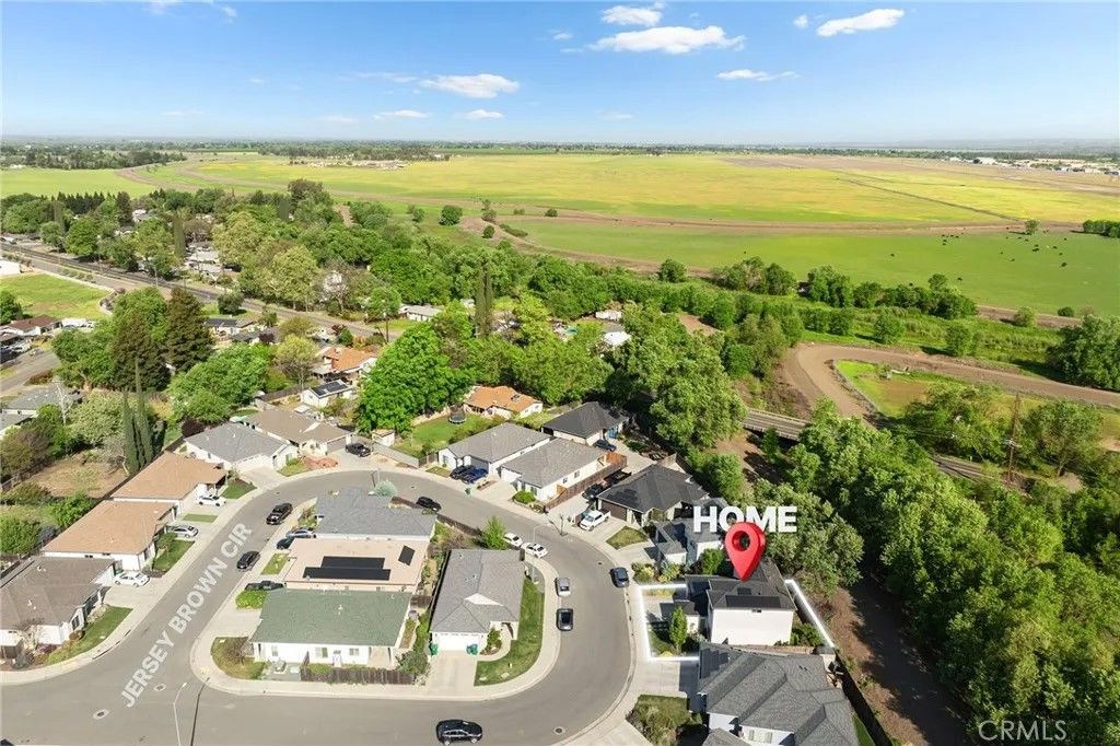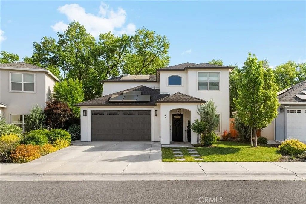Welcome to 47 Jersey Brown Circle, a home where thoughtful design, modern style, and everyday comfort come together in a way that simply feels right. Tucked away on a quiet street in North Chico, this newer-built home offers a refined blend of elevated finishes and effortless livability. From the moment you step inside, the flow immediately stands out. The main level is designed entirely for living and gathering, creating a natural separation from the private spaces upstairs. The dining area welcomes you in first, anchored by eye-catching designer lighting that sets the tone for the home. From there, the space opens seamlessly into a stunning kitchen that serves as the heart of the home. A large quartz island invites connection, while sleek KitchenAid appliances, a custom tile backsplash, and glass-front cabinetry create a space that is both functional and beautifully curated. The kitchen flows effortlessly into the living room, where plantation shutters throughout add both style and flexibility, including the sliding glass door that can be fully closed off for a more private setting. Upstairs, the layout continues to impress with a well-designed landing that separates the spaces. Two bedrooms and a full bathroom sit on one side, while the primary suite is privately positioned on the other. The primary bedroom offers a comfortable retreat with a walk-in closet and an en-suite bath featuring a dedicated vanity area and a separate shower and water closet. The experience continues outdoors, where the backyard offers a peaceful, private retreat. A covered patio with a ceiling fan creates a comfortable space to unwind, while a calming water feature adds tranquility. With no direct rear neighbors and mature trees beyond the levee providing shade, the setting feels both private and serene. A private gate offers direct access to the levee path, making morning walks or evening strolls an easy part of daily life. Additional highlights include owned solar, a whole house fan, tankless water heater, and upstairs laundry. Located just minutes from Degarmo Park, the dog park, and Chicos newest Beyond Golf destination, this home offers not only a beautiful place to live, but a lifestyle to enjoy. 47 Jersey Brown Circle is where modern design meets comfort, privacy, and thoughtful detail in one exceptional home.