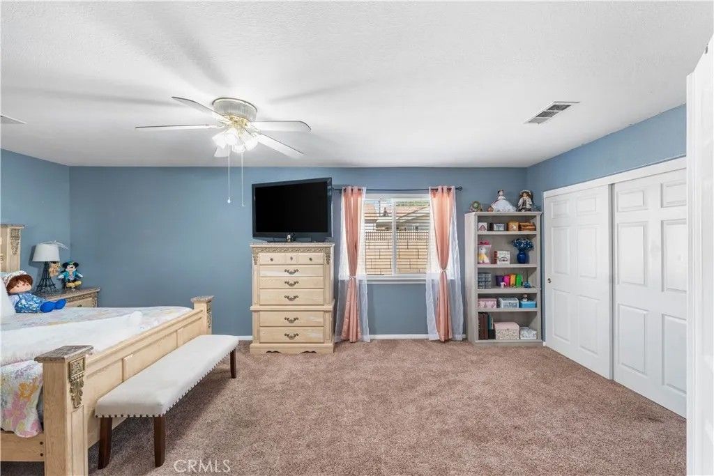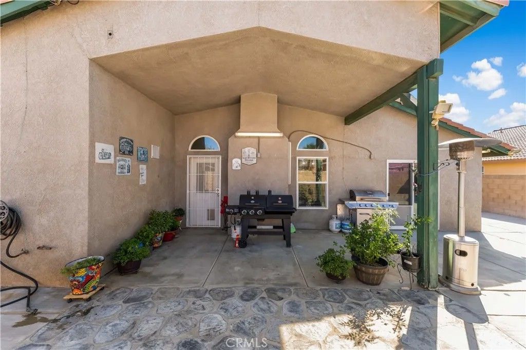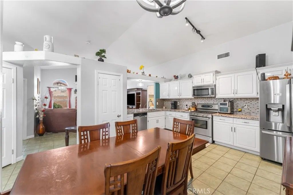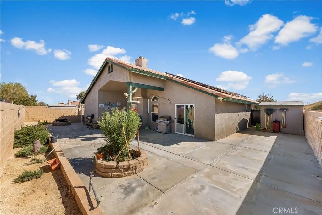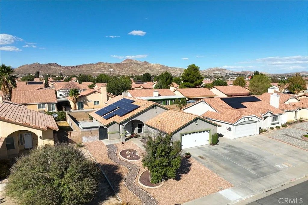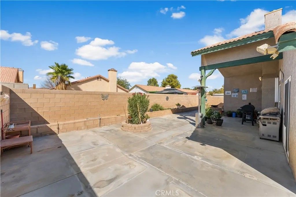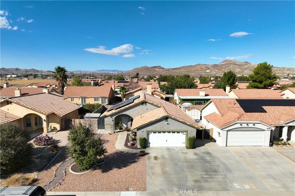 Welcome to this beautifully maintained single-story home in Rosamond, featuring three bedrooms and two full bathrooms within 1,589 square feet of thoughtfully designed living space. This residence offers a unique floor plan with both a primary suite and an exceptionally spacious third bedroom that rivals the primary suite in size, creating potential for dual primary suite functionality. Upon entering, you will immediately notice the meticulous care this home has received. The kitchen serves as the heart of the home, showcasing elegant granite countertops complemented by an eye-catching mosaic backsplash and modern stainless steel appliances that combine style with functionality. The backyard presents a contemporary zero-scape design with attractive cement throughout, offering low-maintenance outdoor living that is both practical and visually appealing. Environmental consciousness meets economic benefit with the home's solar panel system featuring 26 panels, designed to significantly reduce energy costs while supporting sustainable living. This property enjoys convenient access to quality education with Rosamond High School located nearby. Daily necessities are easily addressed with Grocery Outlet within walking distance, while recreational opportunities await at Jim Williford Community Park, perfect for family activities and outdoor enjoyment. The combination of thoughtful design, energy efficiency, and prime location makes this home an exceptional opportunity for discerning buyers. The attention to detail evident throughout the property, from the upgraded kitchen features to the practical outdoor spaces, demonstrates the pride of ownership that has been invested in maintaining this residence. This home is ready for new owners to create lasting memories.