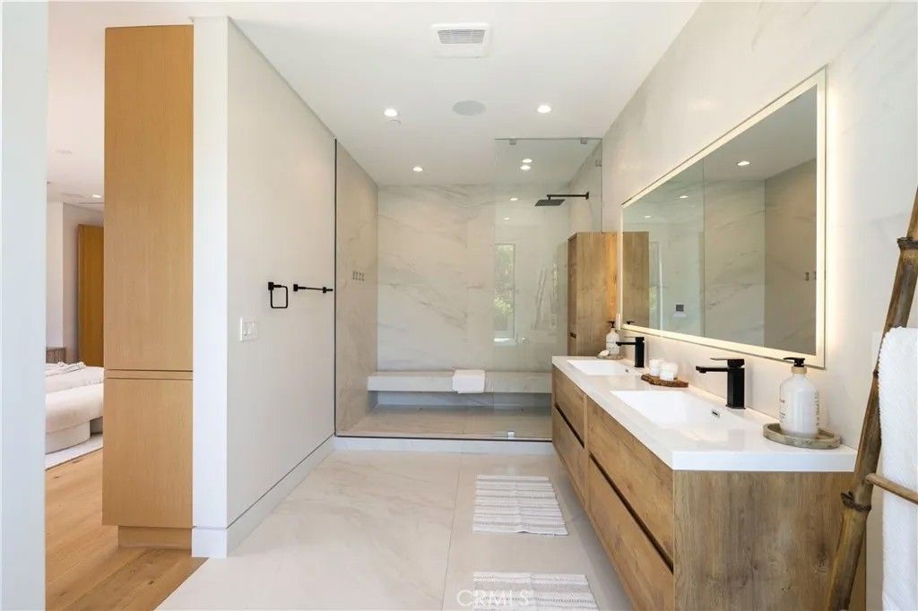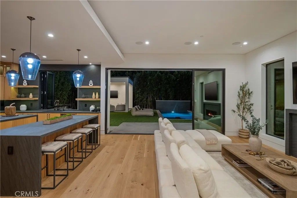 Welcome to 14822 Hesby St, where PRIVACY, vision, precision and elegance converge. A striking newer construction estate that blends modern design with luxury. This state-of-the-art smart home showcases a dramatic glass staircase, soaring high ceilings, and expansive glass pocket doors that open to a seamless indoor-outdoor experience. The chefs kitchen is a showpiece, featuring dual oversized islands, a sleek breakfast bar, and inspiring white oak floors throughout. Retreat to the primary suite with its spa inspired bath, spacious walk-in closet, and two private balconies with sitting area and fireplace. Outside, a resort-style pool, spa, and cabana create the ultimate setting for relaxation and entertaining. Built by MLR Development one of Los Angeless most reputable builders, this residence is a sanctuary of abundance designed for seamless living and timeless beauty.