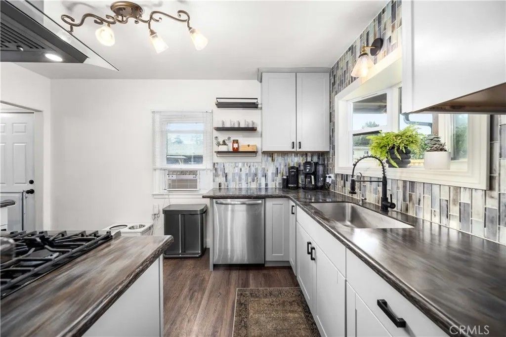 Updated cottage in the historic downtown area of Tehachapi. Full of charm and sophistication! Renovated interior and exterior! This home has a split wing floor plan with a spacious family room/dining room combination, laminate flooring throughout, newer windows and newer water heater. The kitchen has custom cabinets, farm house sink, stone counter tops, and newer stainless appliances. The primary bedroom has an electric fireplace and an adjoining bathroom with updated cabinets, stone counter and a large shower. The secondary bedrooms share an updated full bathroom. The exterior has beautiful new front fencing and was recently painted. The rear yard has a gazebo and a workshop and is fenced and cross fenced. Walking distance to downtown and an easy commute to the 58 freeway too! Don't wait too long to see this charming house that's conveniently located in the heart of downtown Tehachapi!